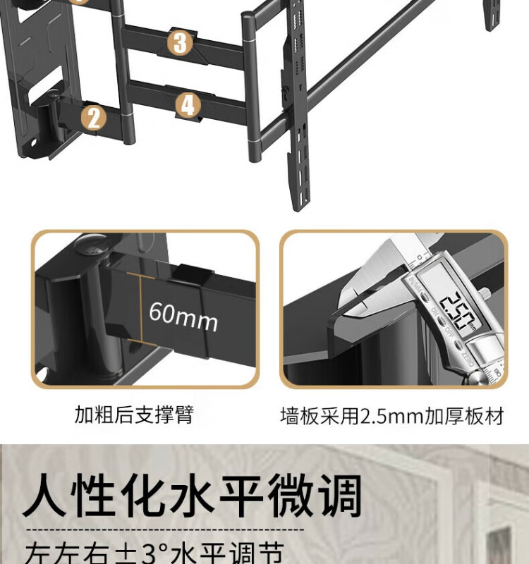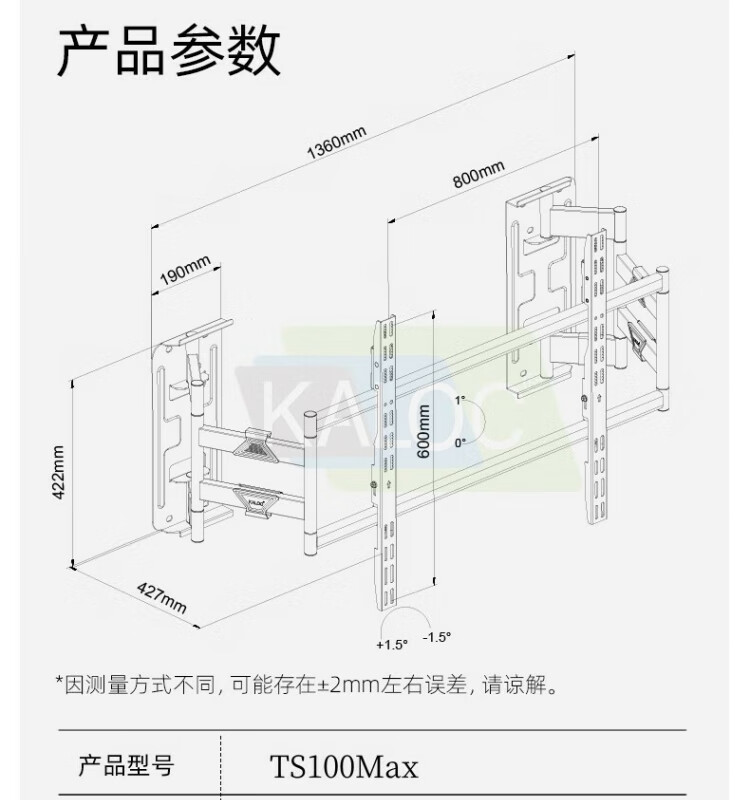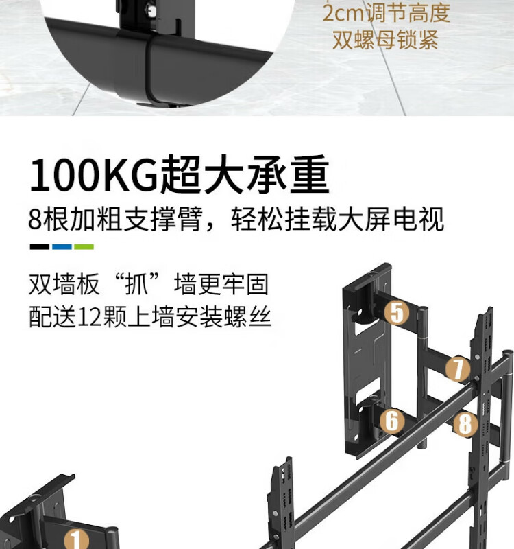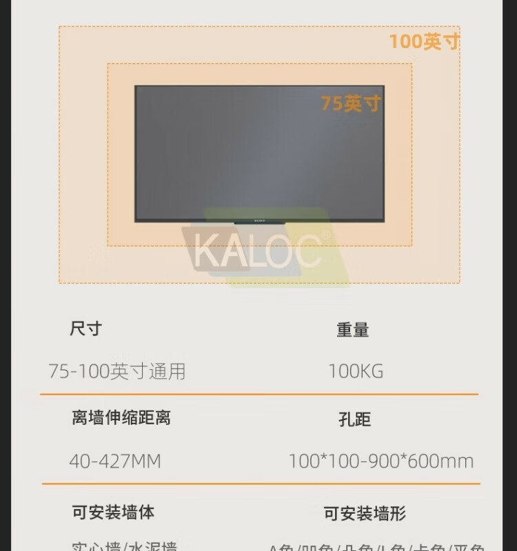 KALOCTS100Max电视挂架卡洛奇TS90伸缩电视架伸缩旋转电视支架适用壁挂内嵌适用TCL海信创维75-100通用 TS100Max支持75-100英寸电视