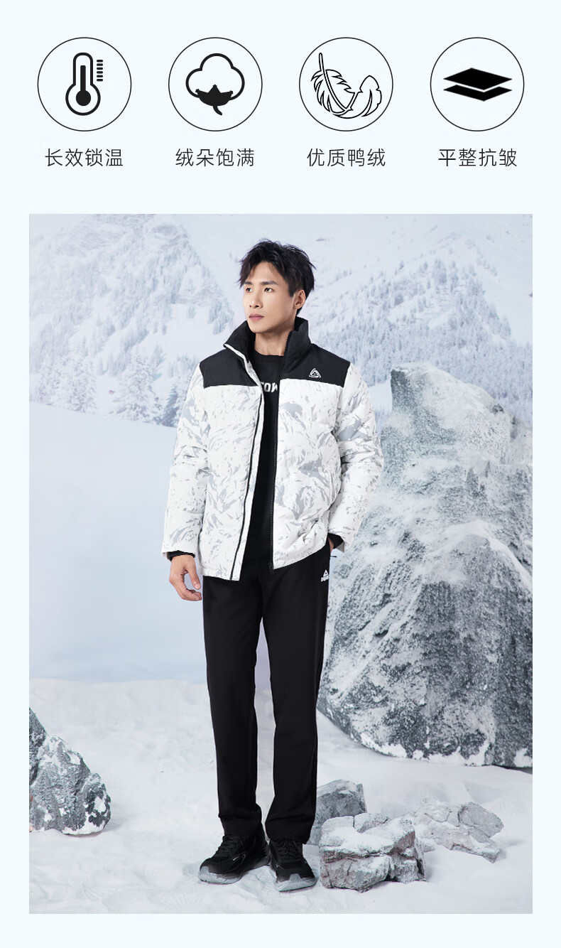 匹克羽绒服男2024秋冬新品简约立领羽绒服保暖时尚百搭短款外套 本白 L