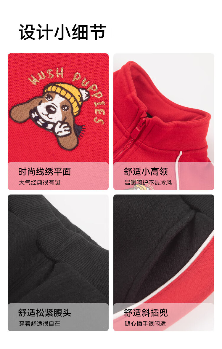 暇步士(Hush Puppies)童装男小童冬季新年红色拜年服保暖一体绒简约舒适休闲套装 复古蓝 130 cm