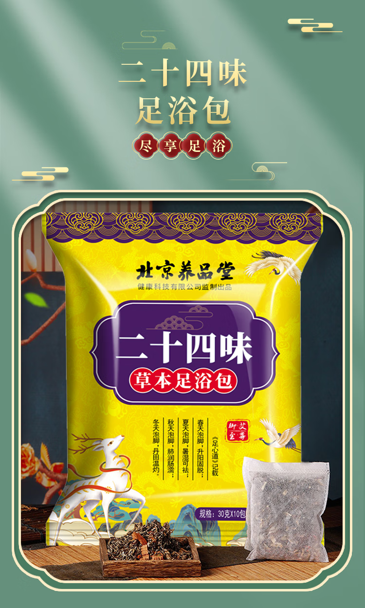 养品堂三伏泡脚包二十四味足浴包艾草益母草藏红花老姜药包儿童泡脚泡澡 二十四味真材实料泡脚泡澡包 1袋(10包)