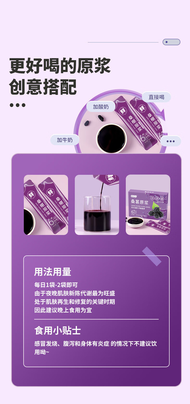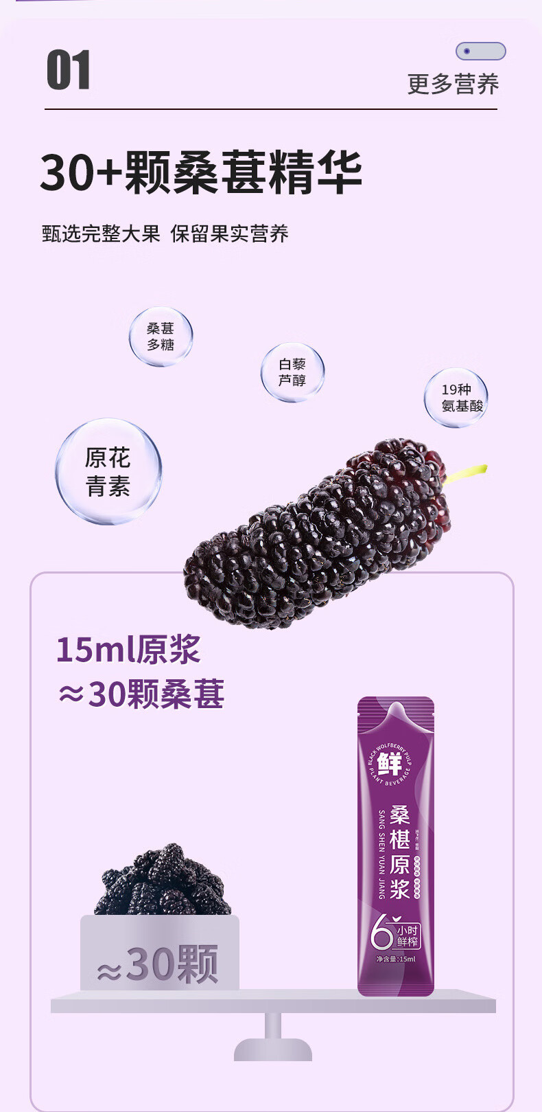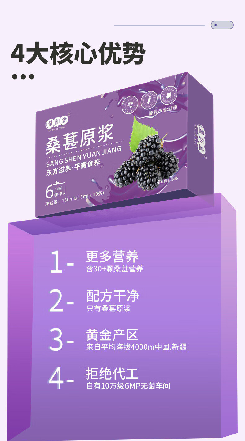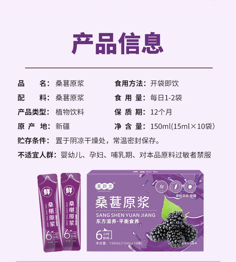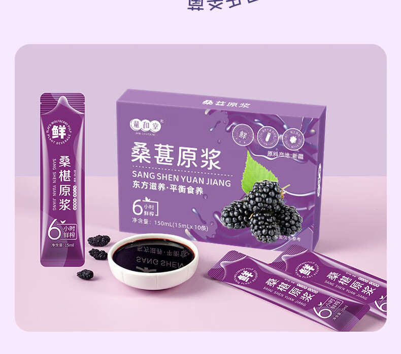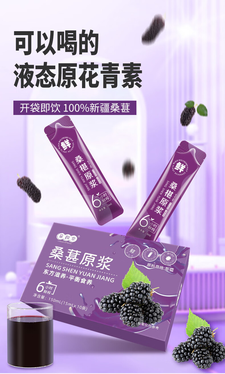 桑葚原浆鲜榨纯鲜果桑椹汁植物饮料果汁源头 桑葚原浆150ML(15ML条X10条)盒 三盒