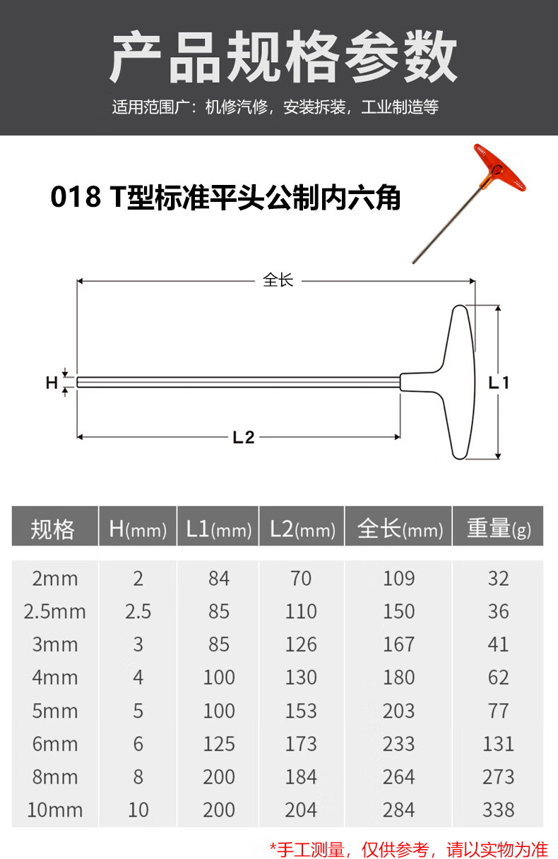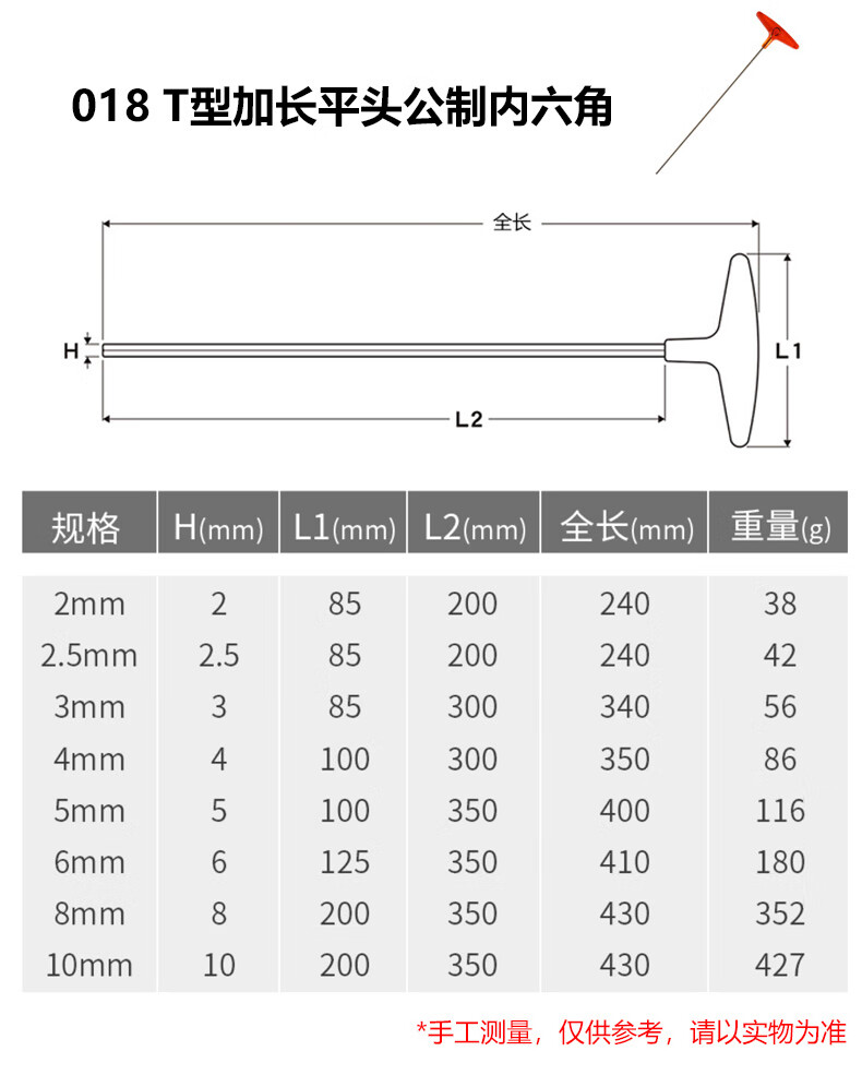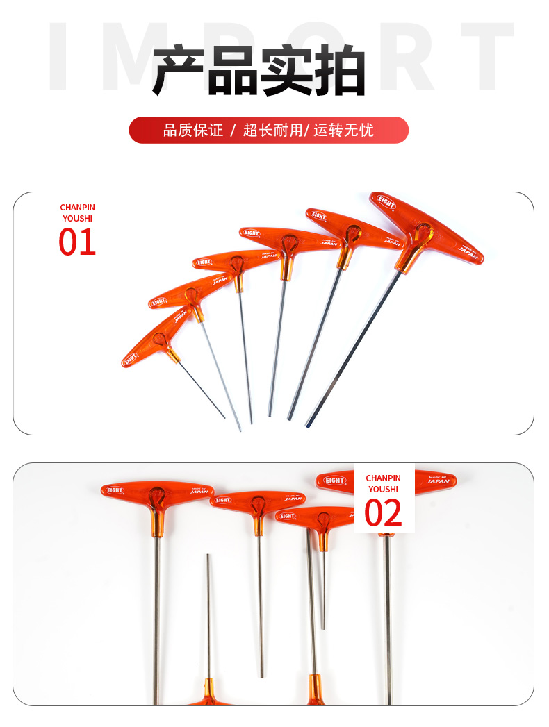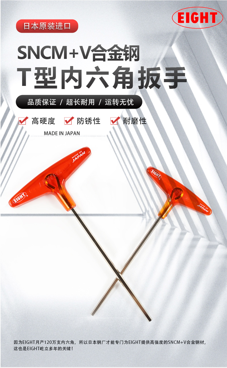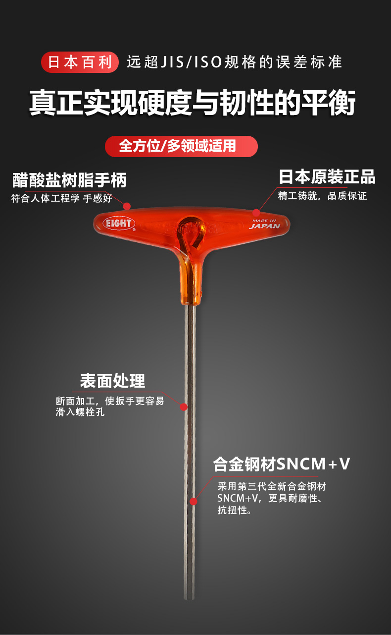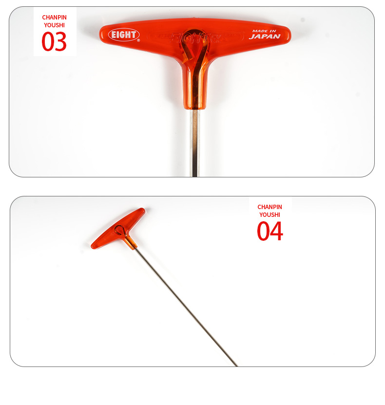 EIGHT日本进口百利内六角扳手公制T型内六角扳手 加长杆内六角螺丝刀 018-2 标准长平头2mm