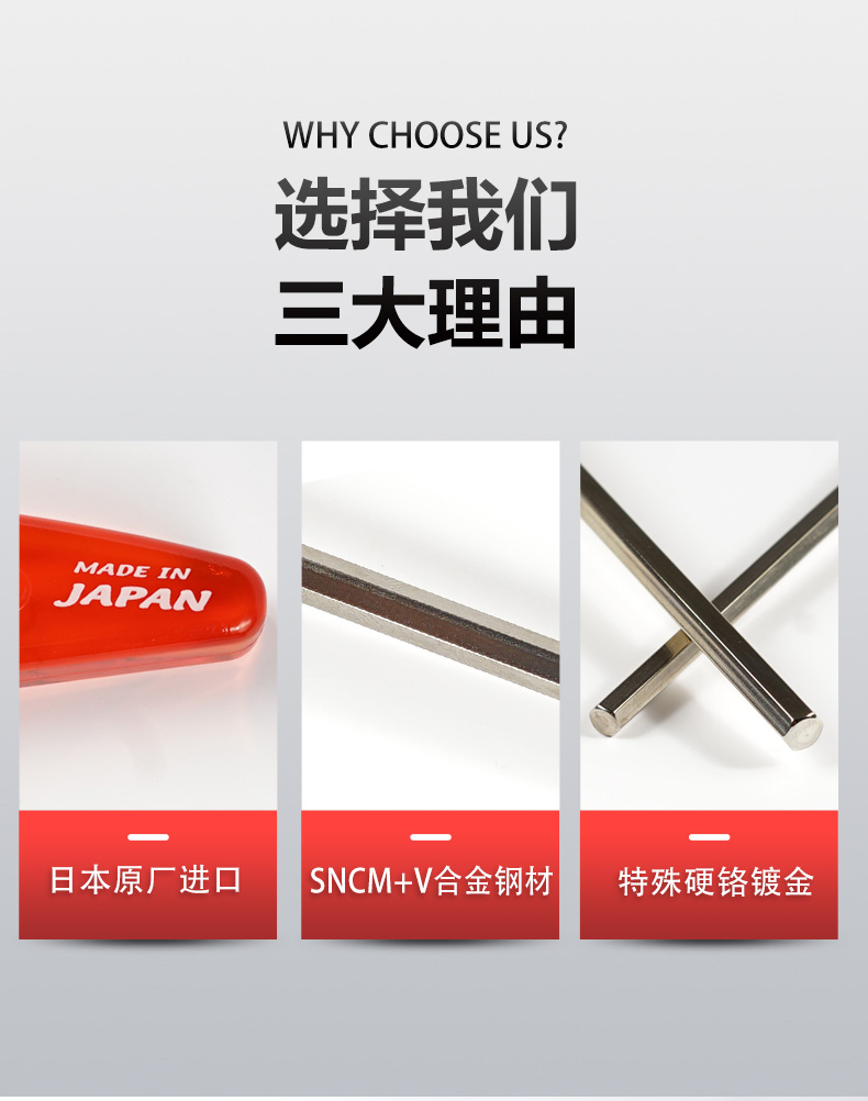 EIGHT日本百利内六角扳手套装进口加长钻石头平头球头内六角螺丝刀套组 公制特长钻石头TLS-9(1.5-10mm)