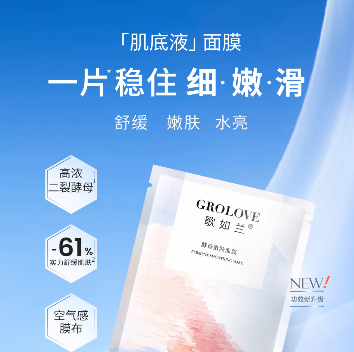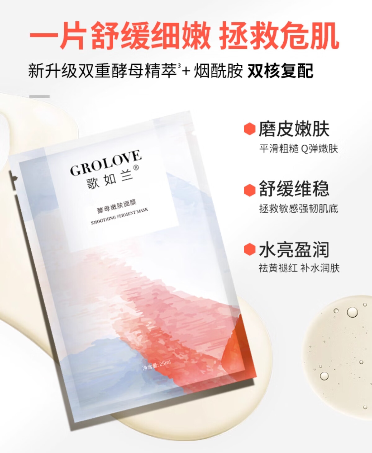 歌如兰酵母面膜深度补水面膜保湿无添加深层抗皱紧致面膜胶原蛋白 1盒10片+送2片【首页加入会员领券】