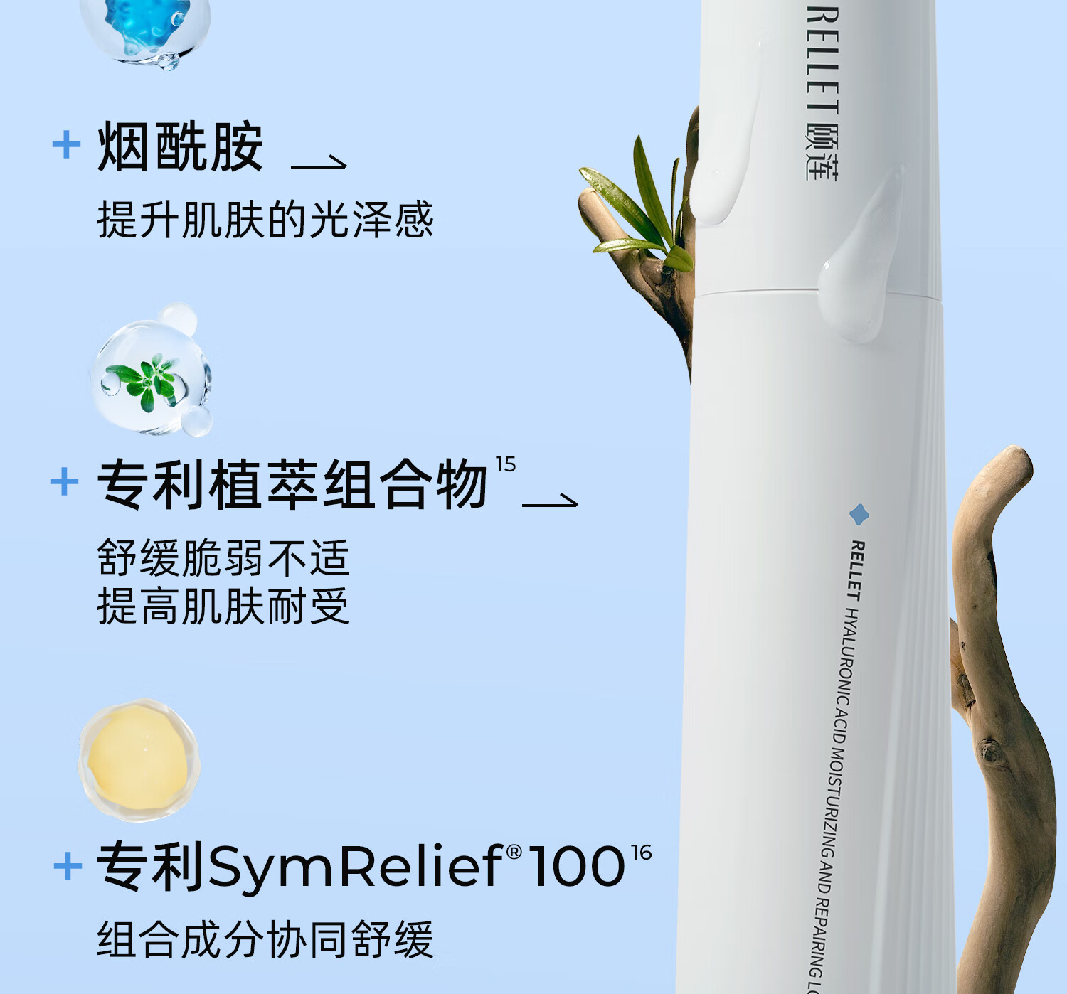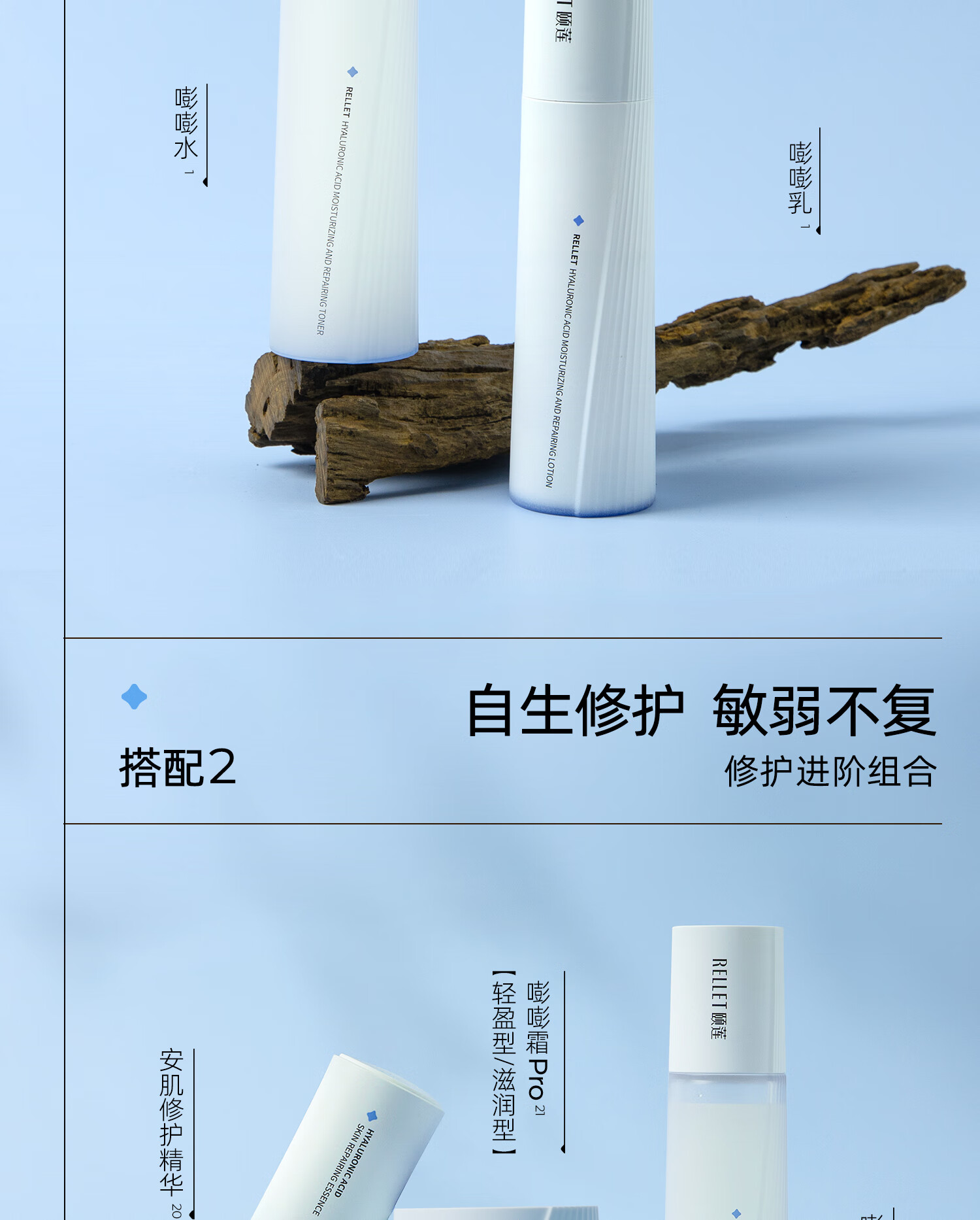 颐莲(RELLET)玻尿酸嘭润修护水乳 保湿补水舒缓水乳组合