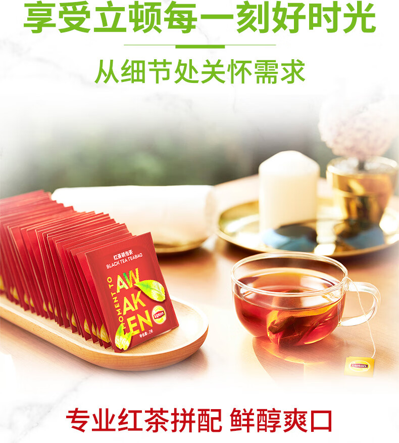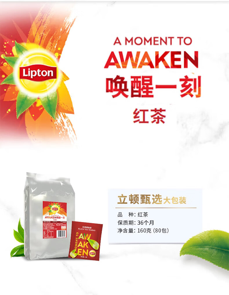 立顿红茶 黄牌精选经典安徽其他红茶2g*80袋泡装 茶叶办公室下午茶