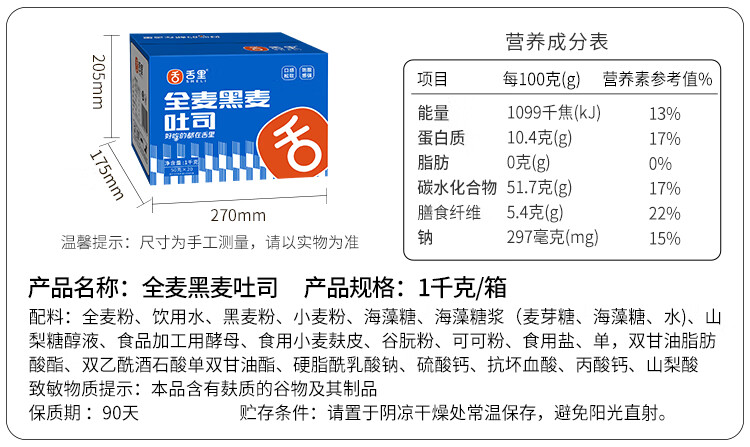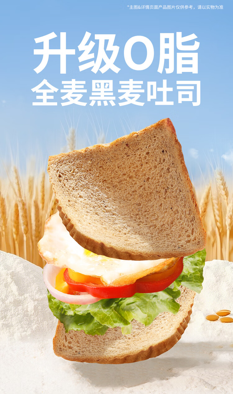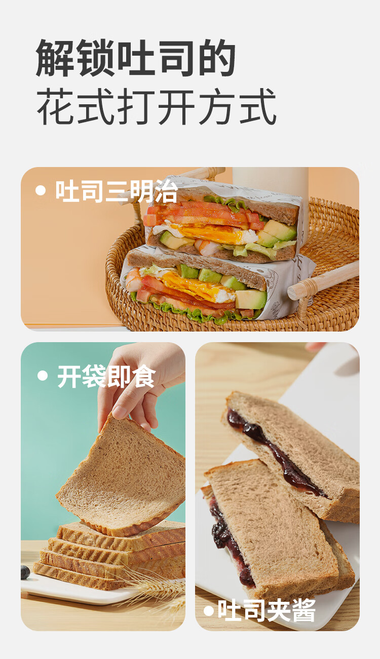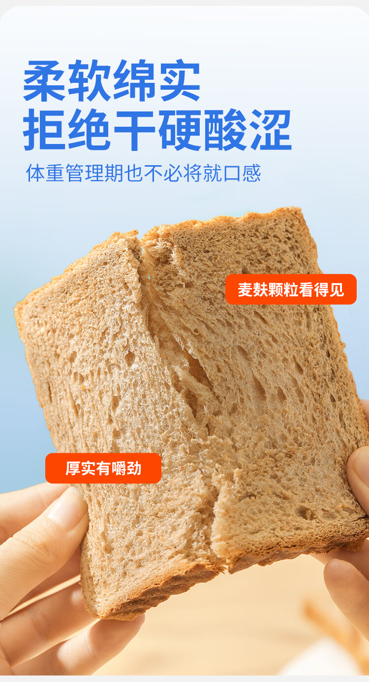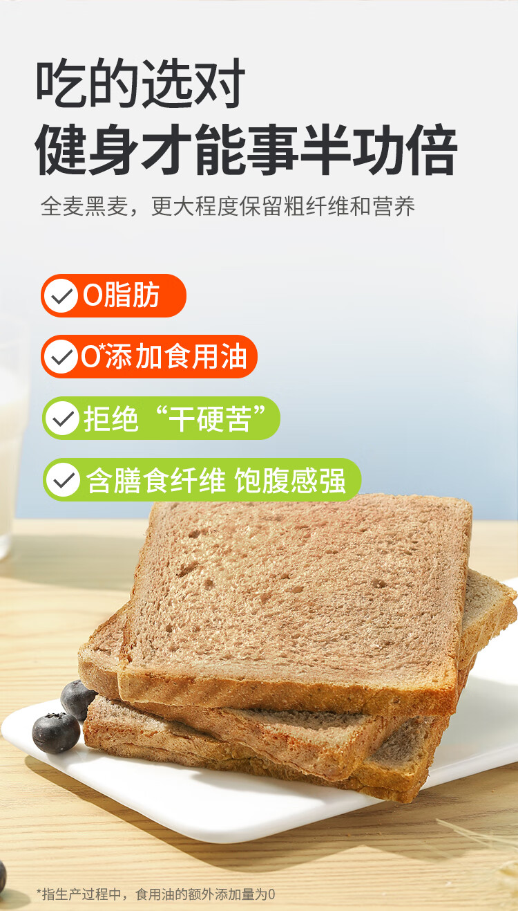 舌里 黑麦全麦面包1000g0脂手撕吐司粗粮早餐健身代餐休闲零食轻食