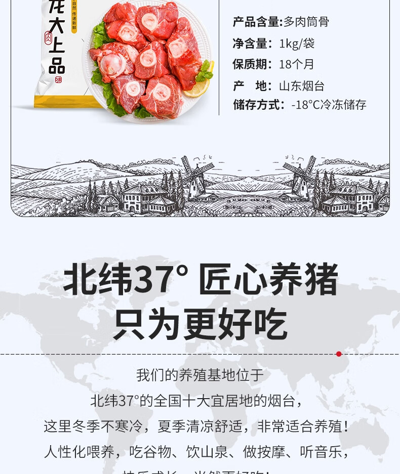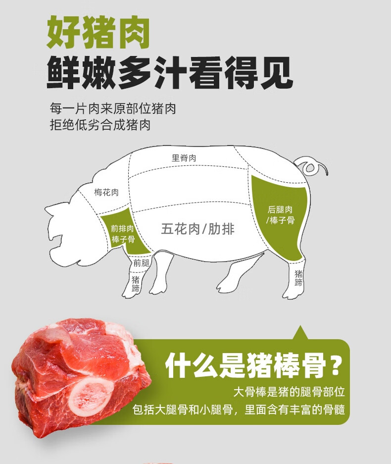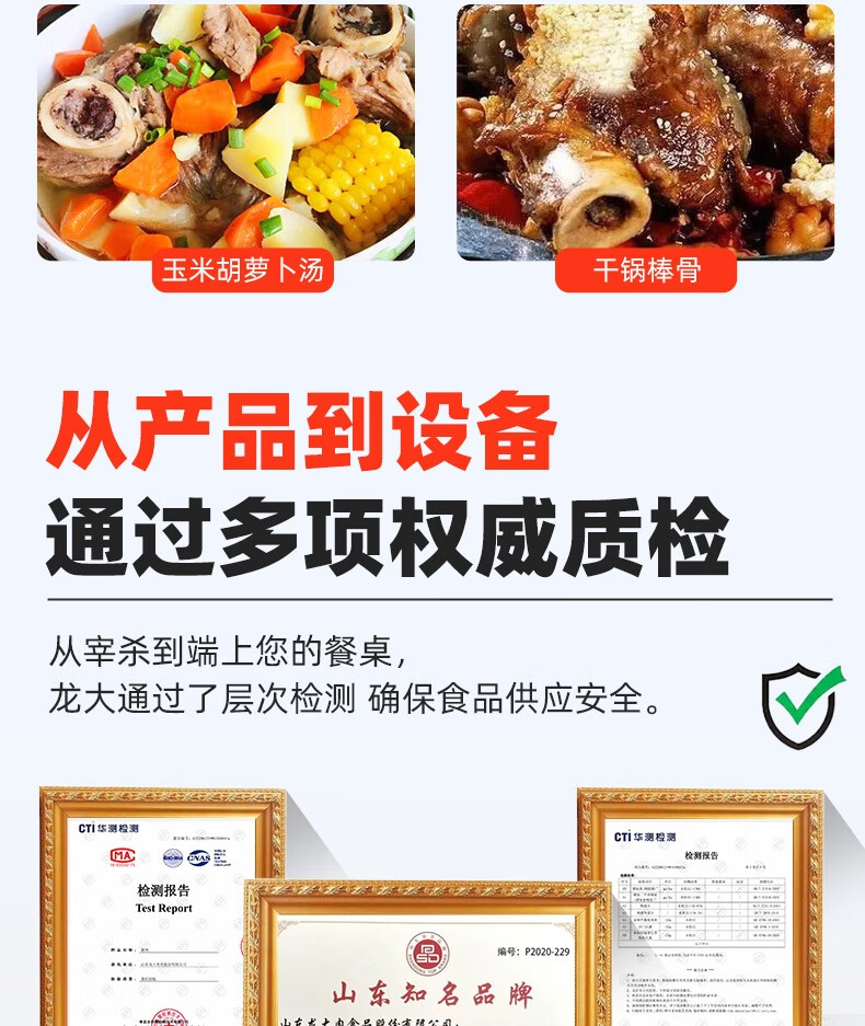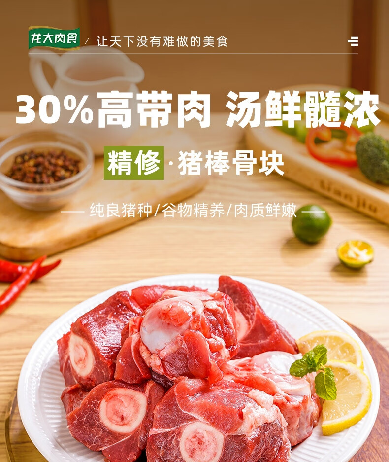 龙大肉食 猪棒骨块2斤 ≥30%带肉率 免洗免切猪筒骨 出口日本级大骨头