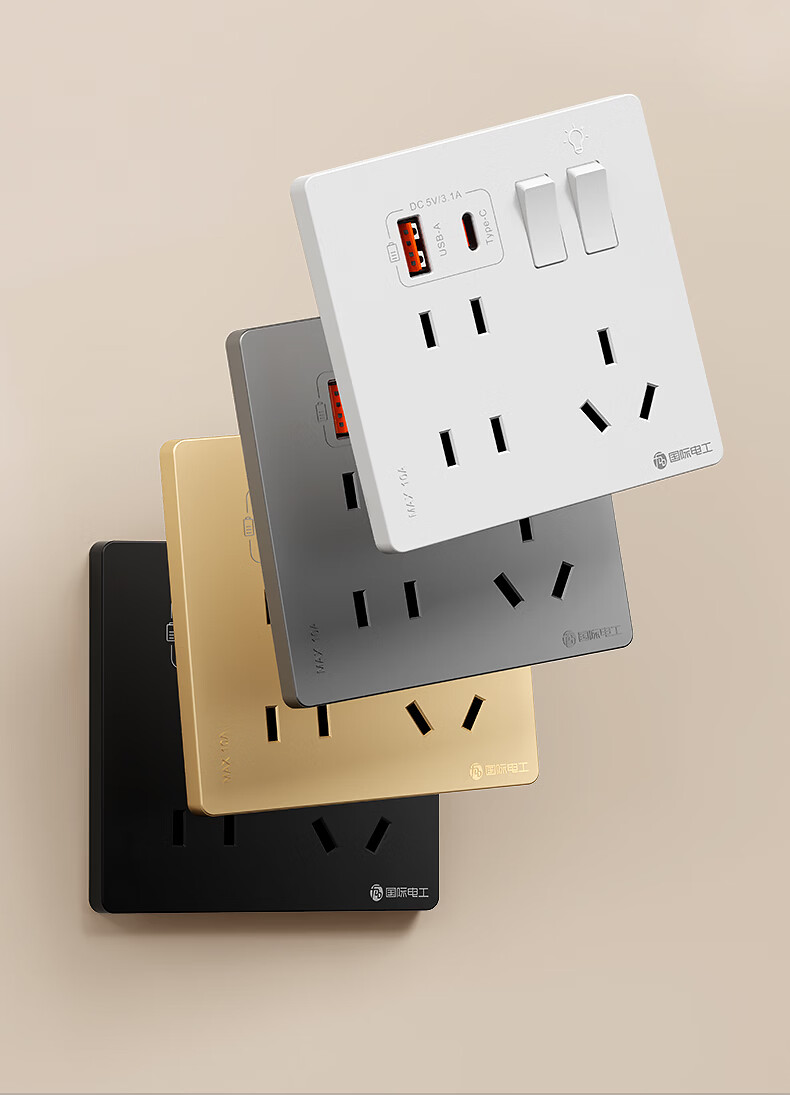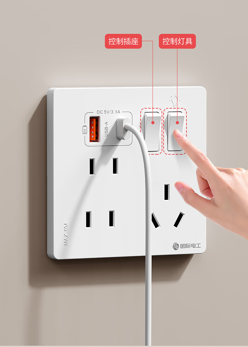 国际电工86型二开七孔USB快充插座开关面板家用墙壁手机快充Type-c插座 二开七孔USB插座【白色】