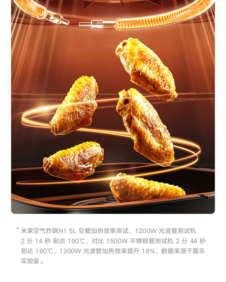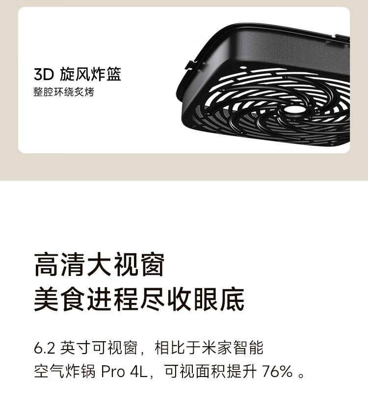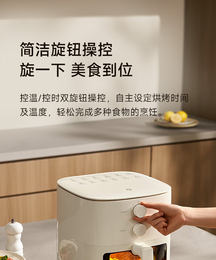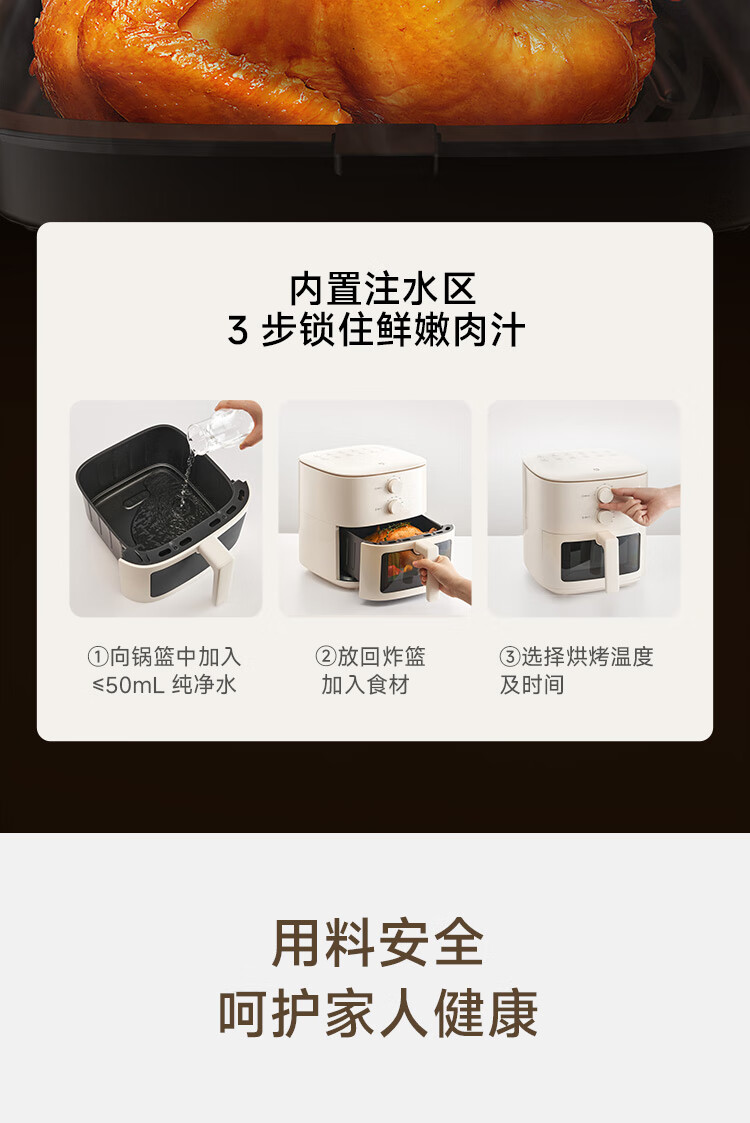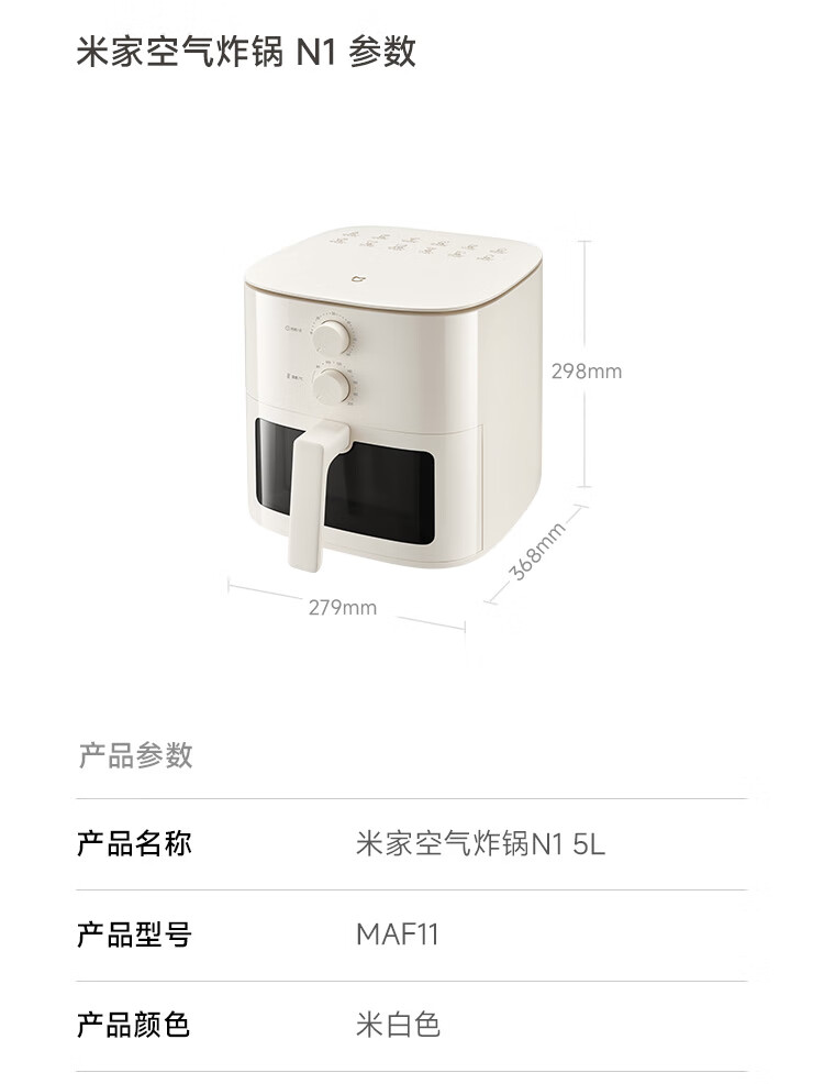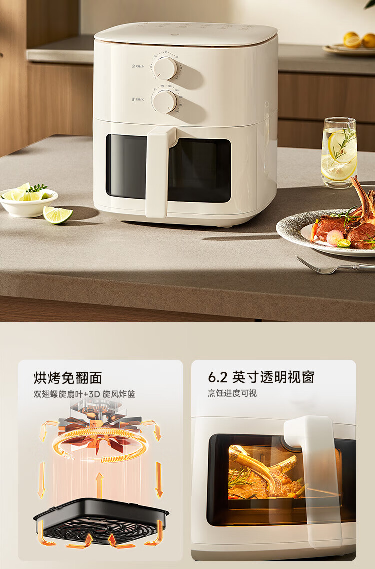 米家小米空气炸锅N1 家用多功能电炸锅 微蒸汽嫩烤 透明可视化免翻面 金属内腔不沾锅 大容量5升