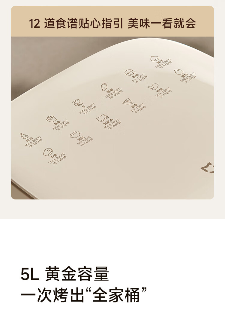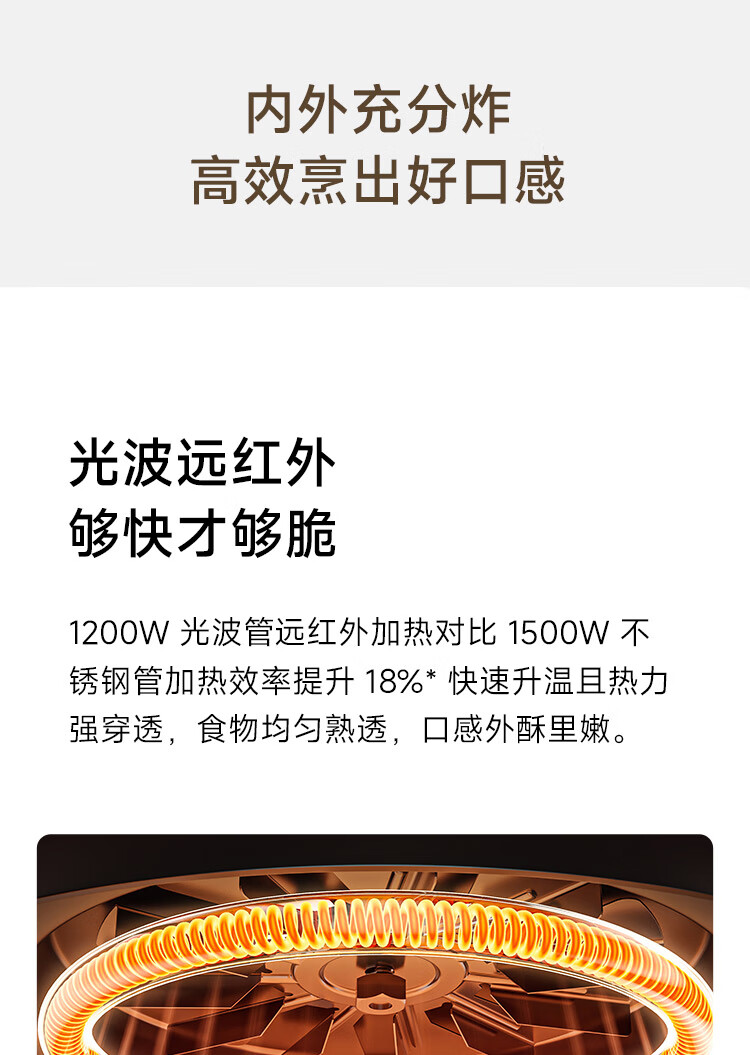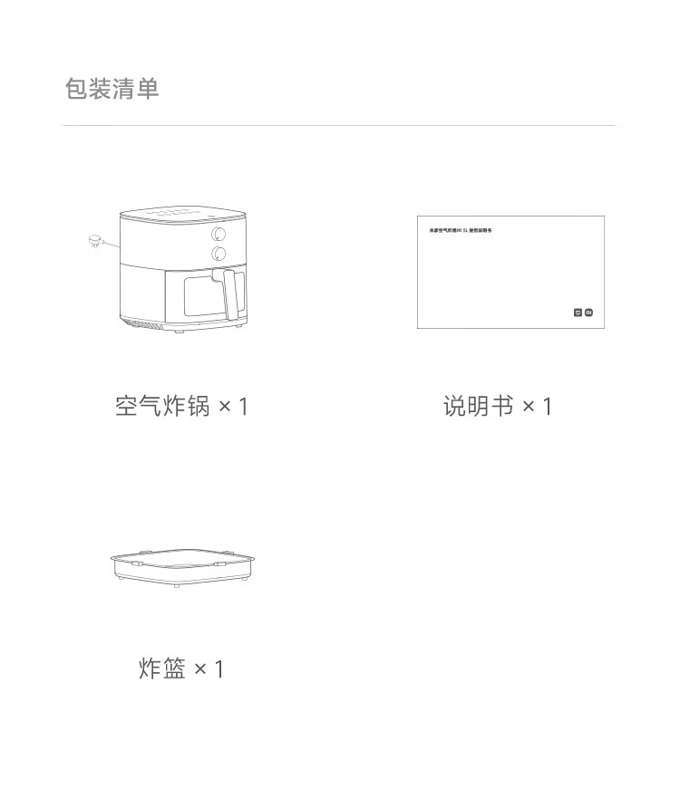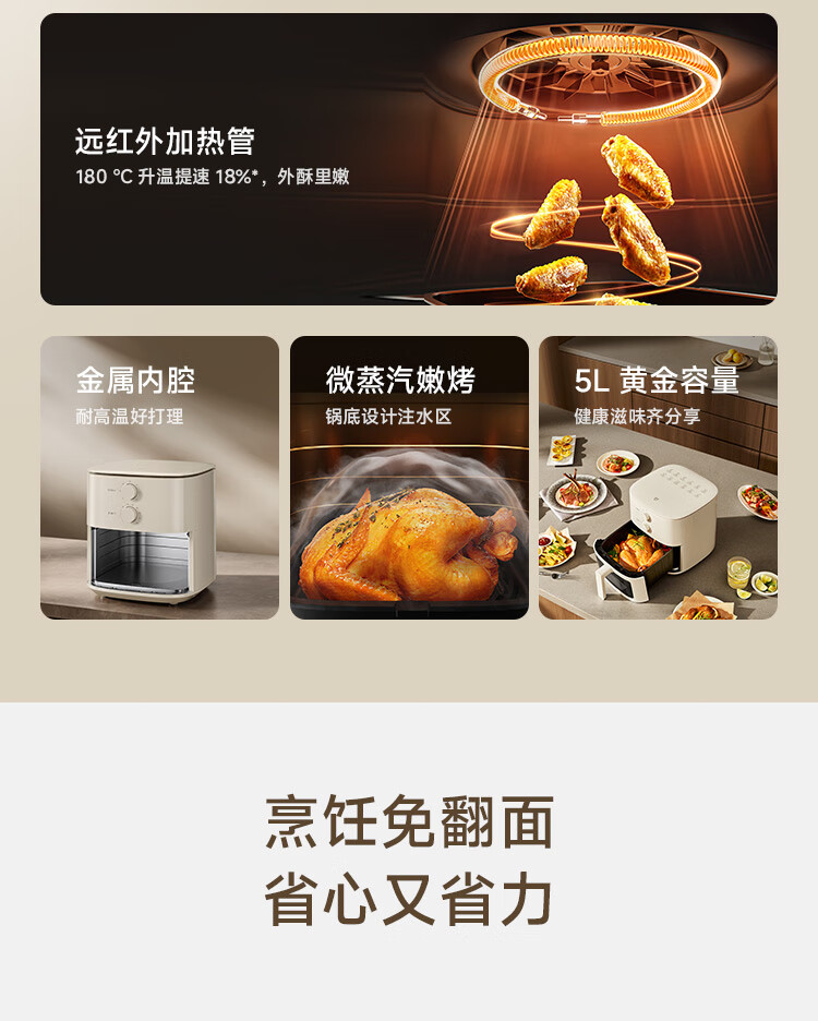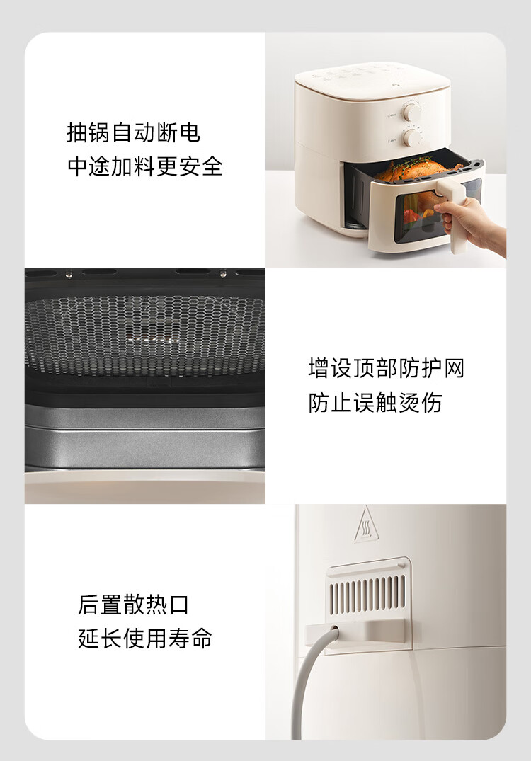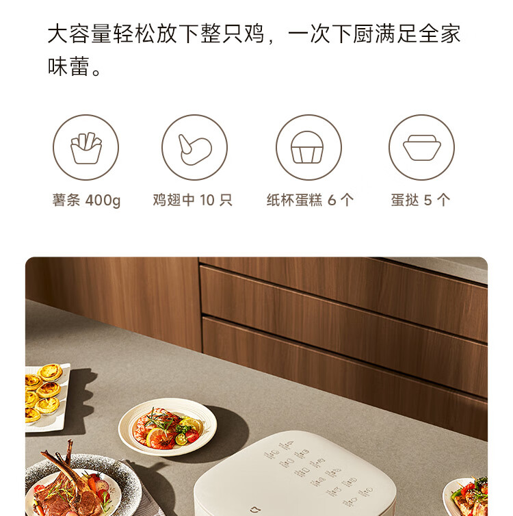米家小米空气炸锅N1 家用多功能电炸锅 微蒸汽嫩烤 透明可视化免翻面 金属内腔不沾锅 大容量5升