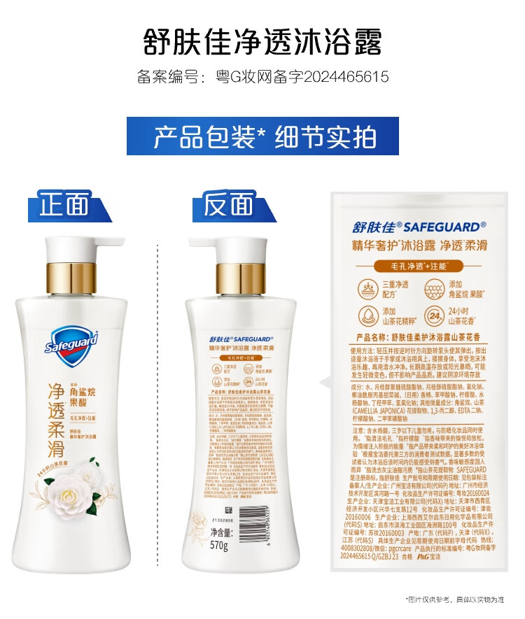 舒肤佳新升级净透沐浴露(红石榴+山茶花+乌木)570g*3留香【王楚钦同款】