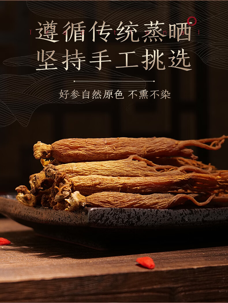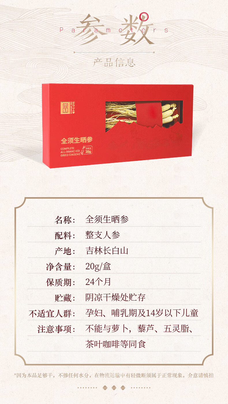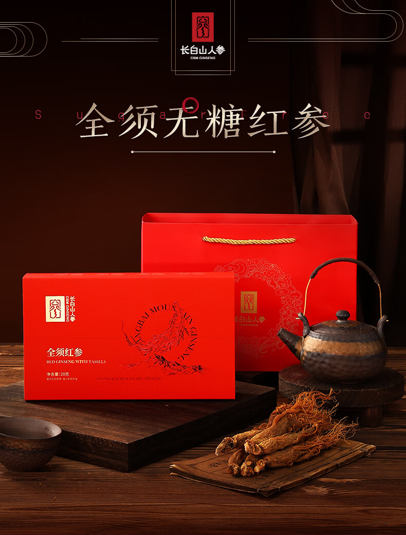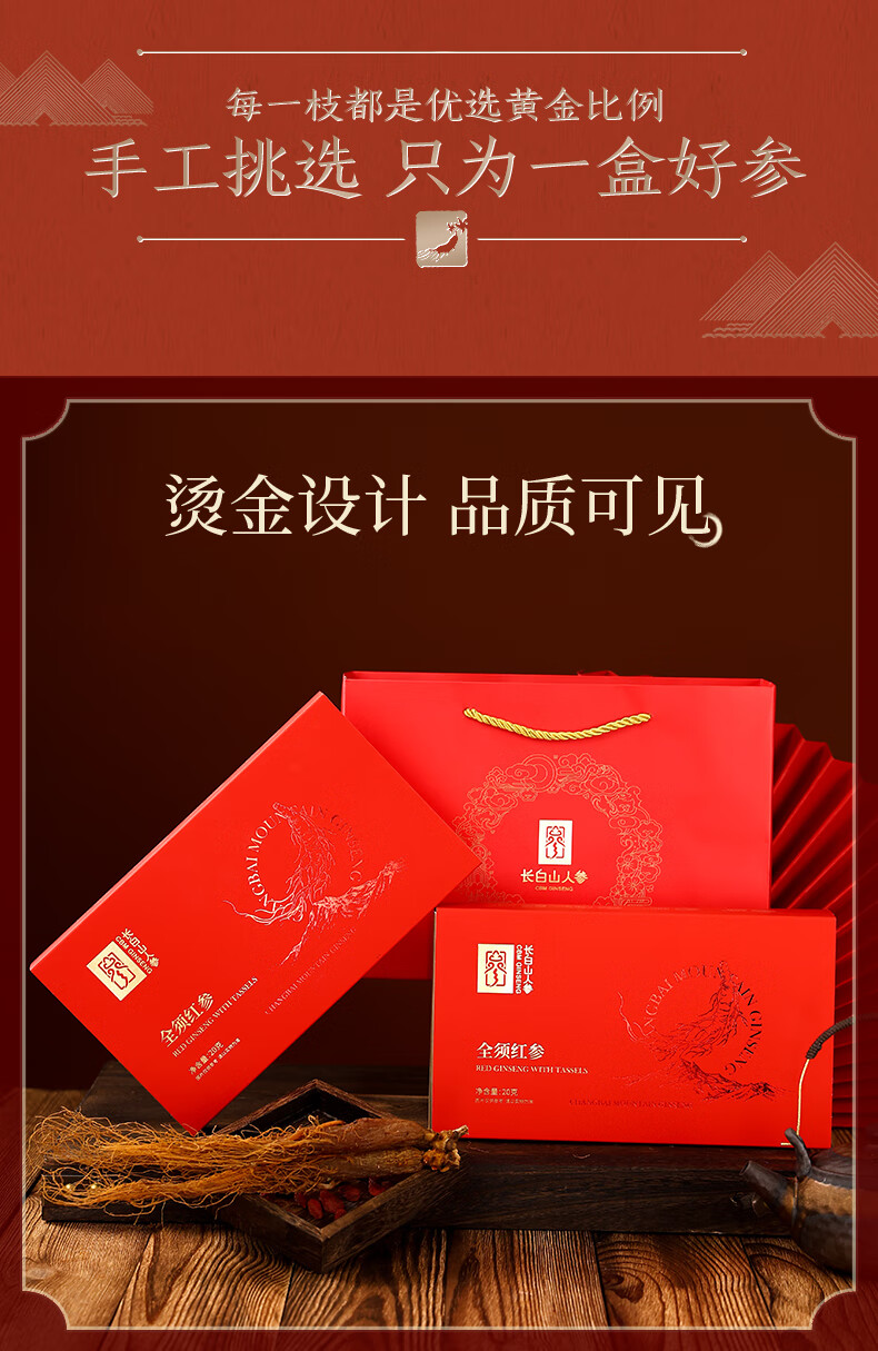 长白山人参全须生晒参 20g*4盒礼盒装 送礼袋 礼品煲汤伴手礼特产 全须生晒参20g*4盒【赠2礼袋】