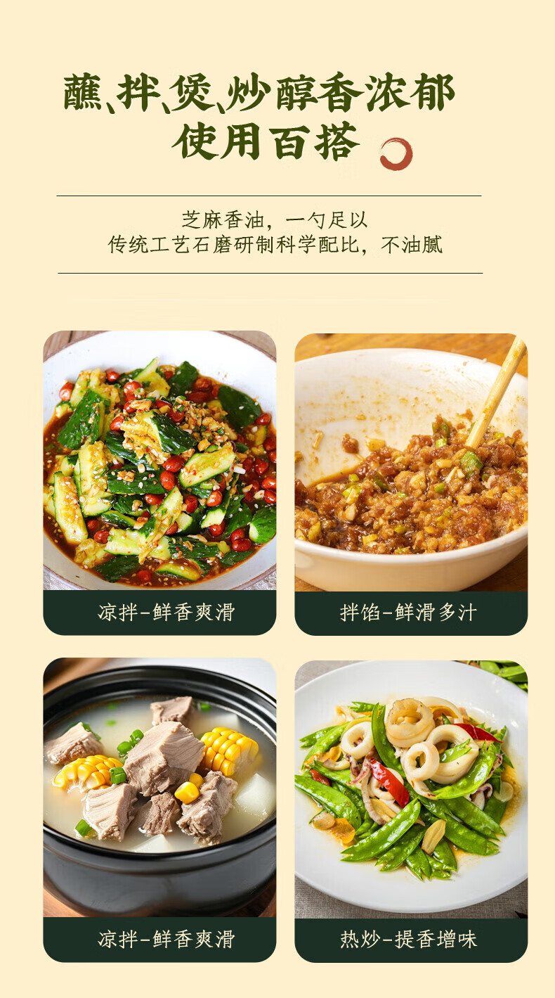 纯小磨香油黑芝麻油无添加凉拌菜火锅月子孕产妇专 芝麻油 2 瓶*500ml