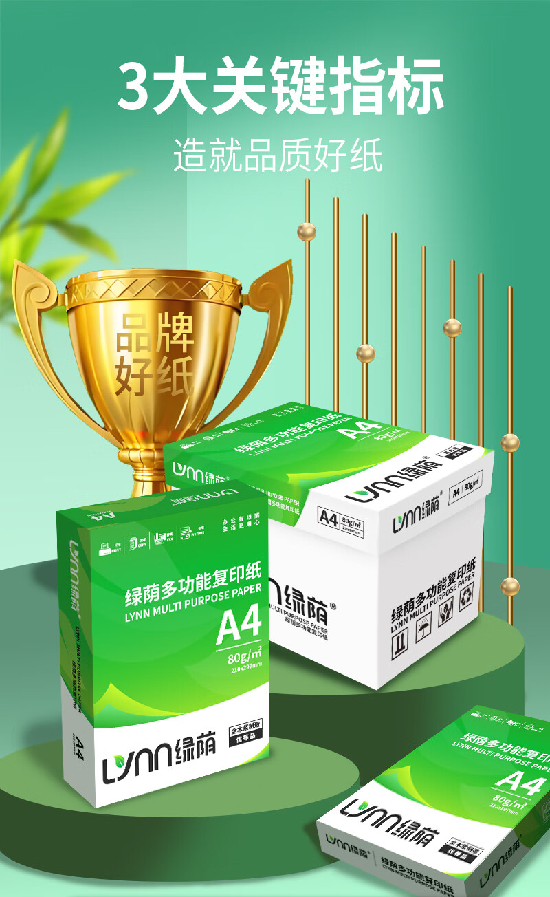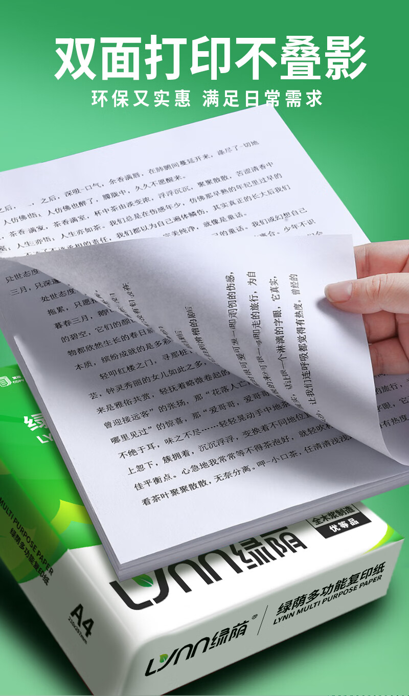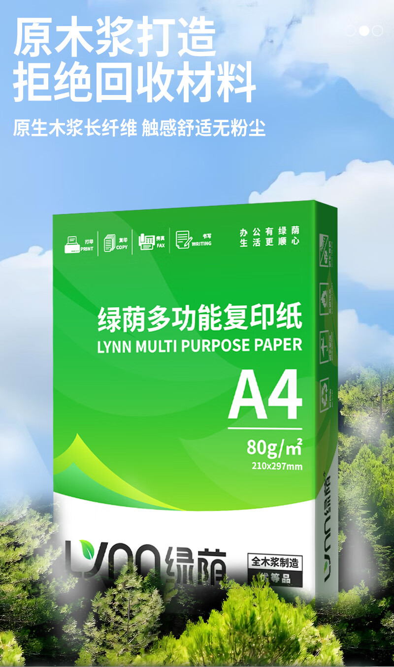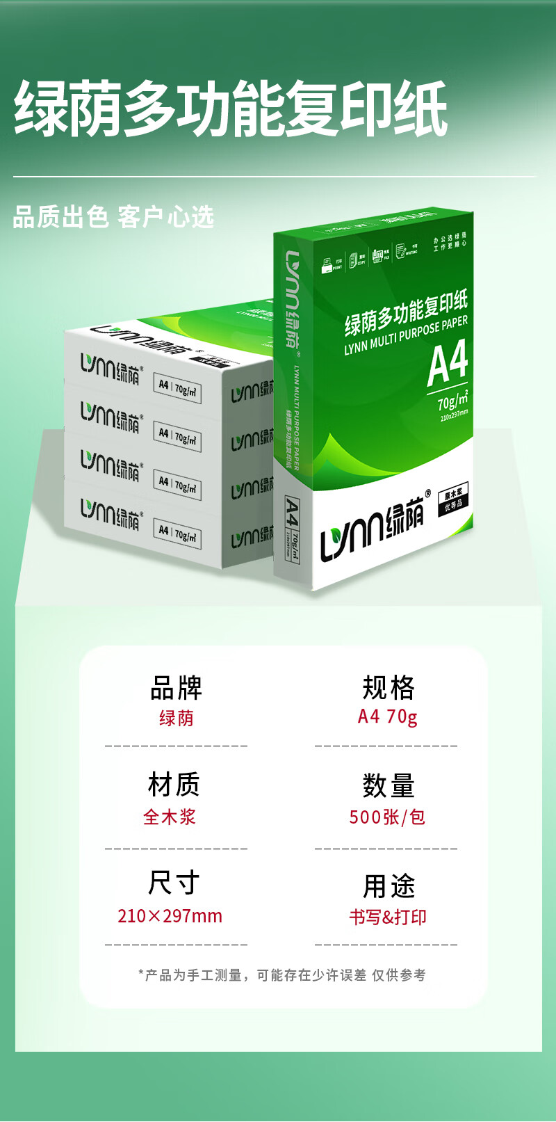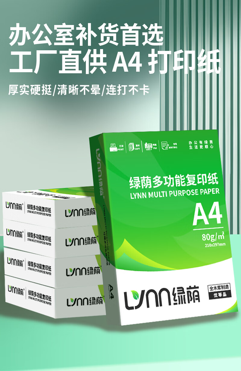 绿荫 a4打印纸70g 整箱a4纸复印纸 双面打印 顺滑不卡纸 80g加厚 办公用纸 高性价比 70g整箱5包共2500张【热销绿荫】