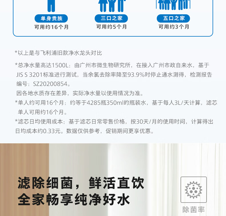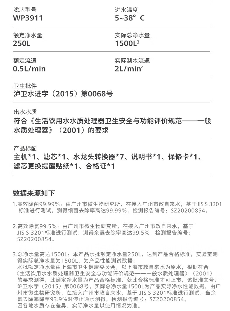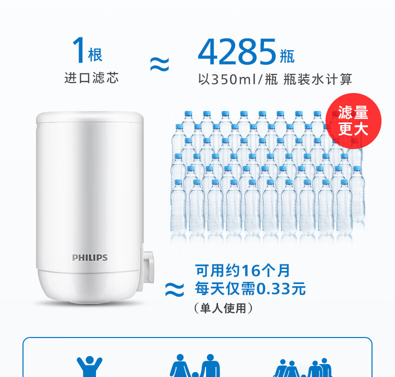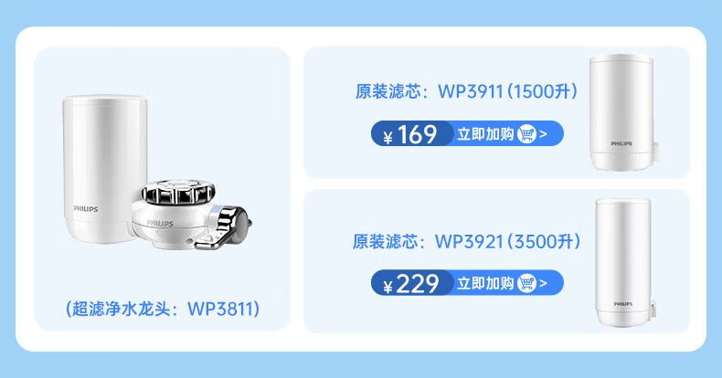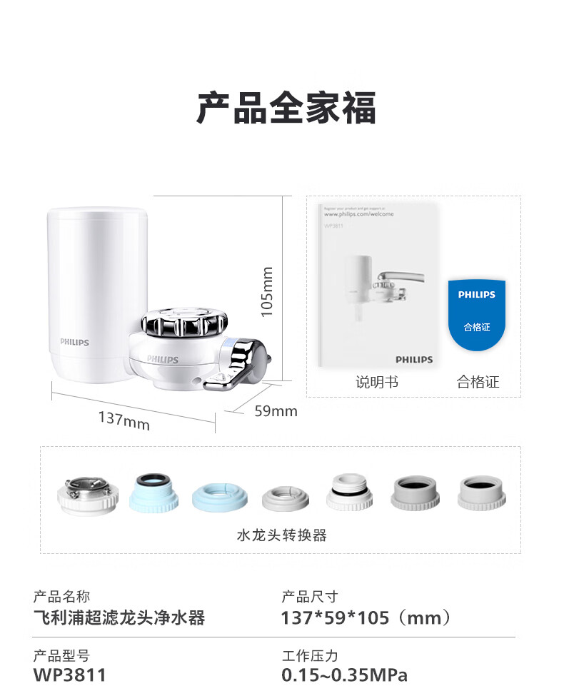 飞利浦(PHILIPS)水龙头净水器厨房自来水前置过滤器 超滤龙头滤水器 WP3811一机两芯套装