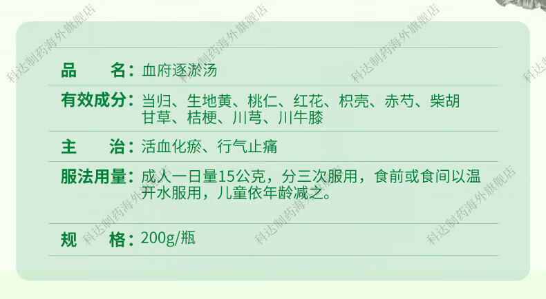 【科达制药 官旗正品】血府逐瘀汤颗粒200g 心绞痛心律不整高血脂症汉方中成药非仙丰顺天堂农本方日本 血府逐瘀汤