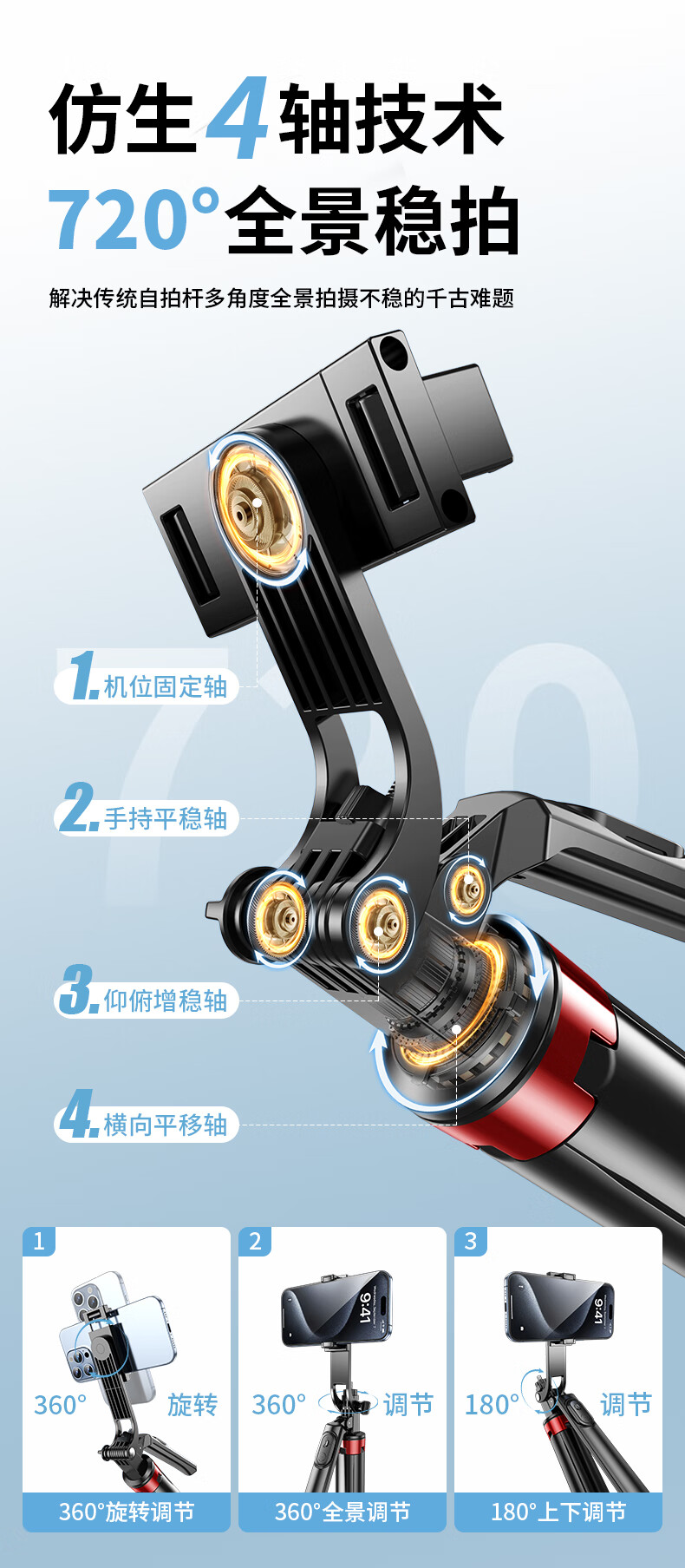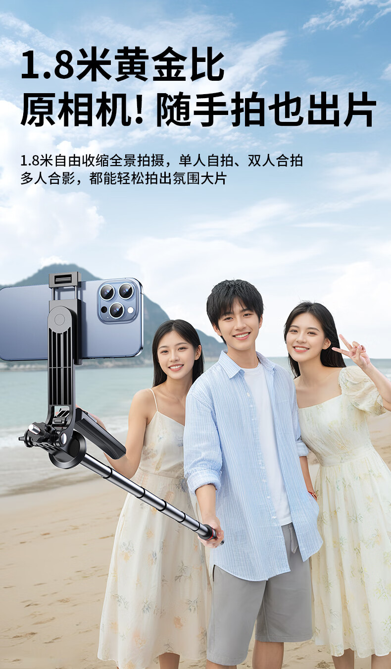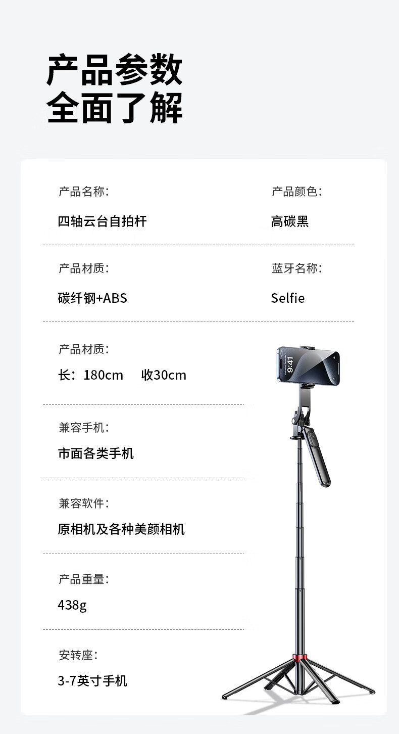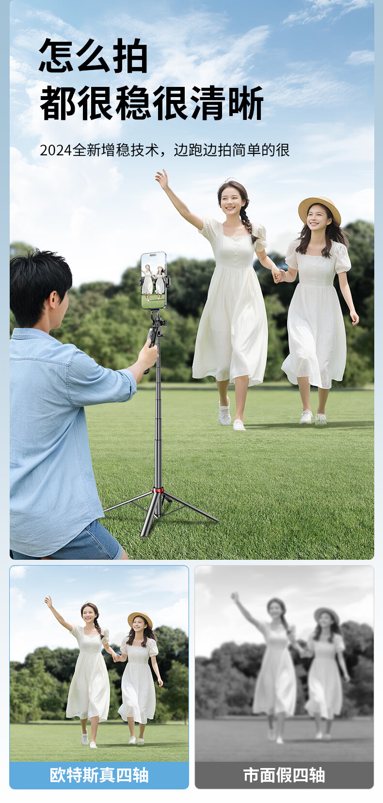 科润乐【1.85米四脚架】自拍杆三脚架手机支架落地防抖自拍神器360度旋转全自动多功能云台直播旅游视频