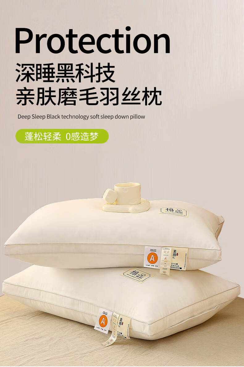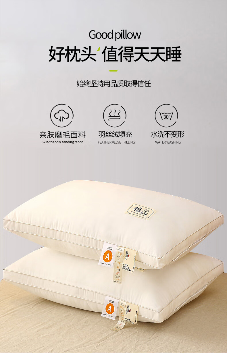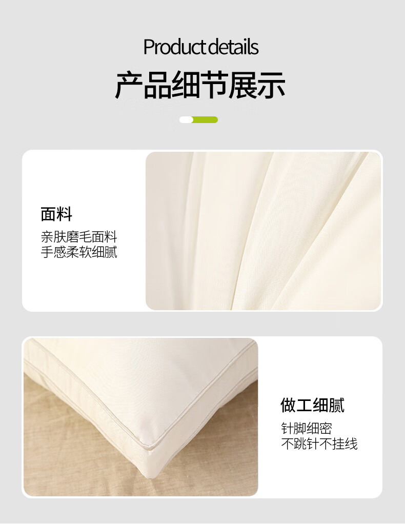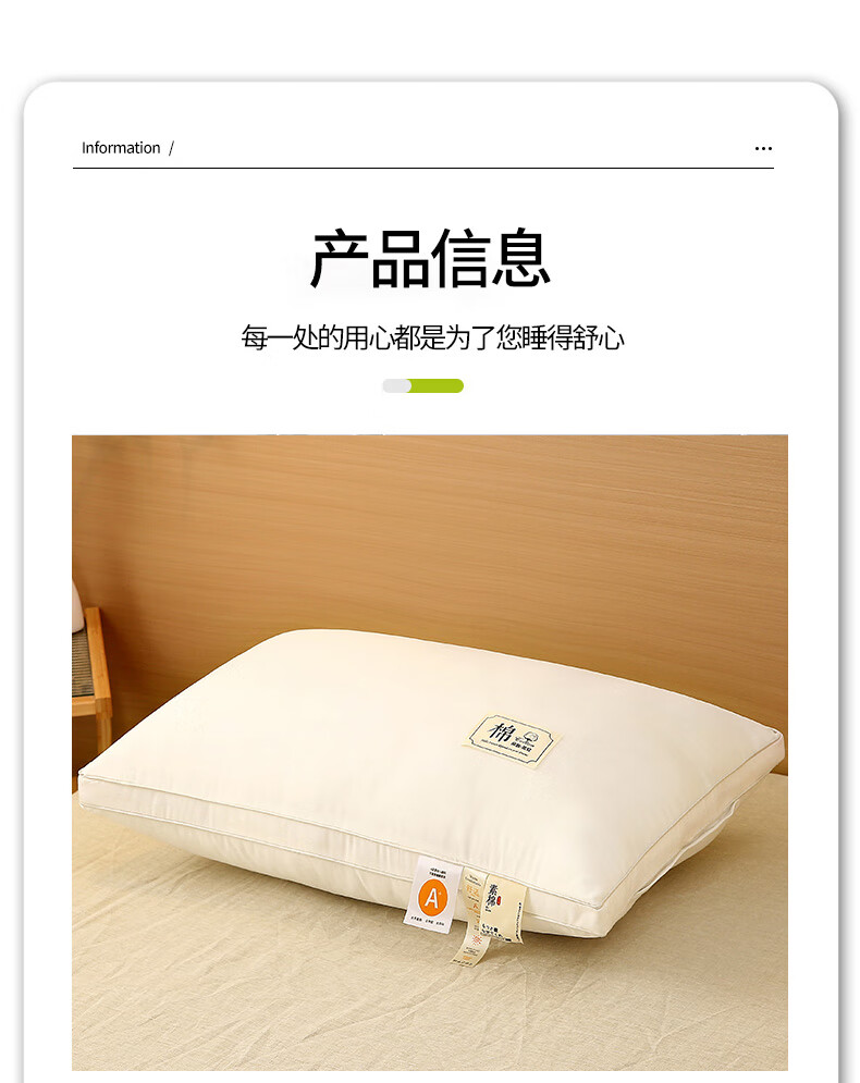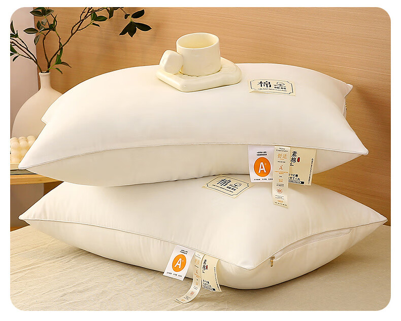 浪莎(LangSha)A类枕头枕芯原生态素棉枕原棉酒店枕学生护颈椎整头48*74cm一只装 原棉立体 48*74cm/对-高枕