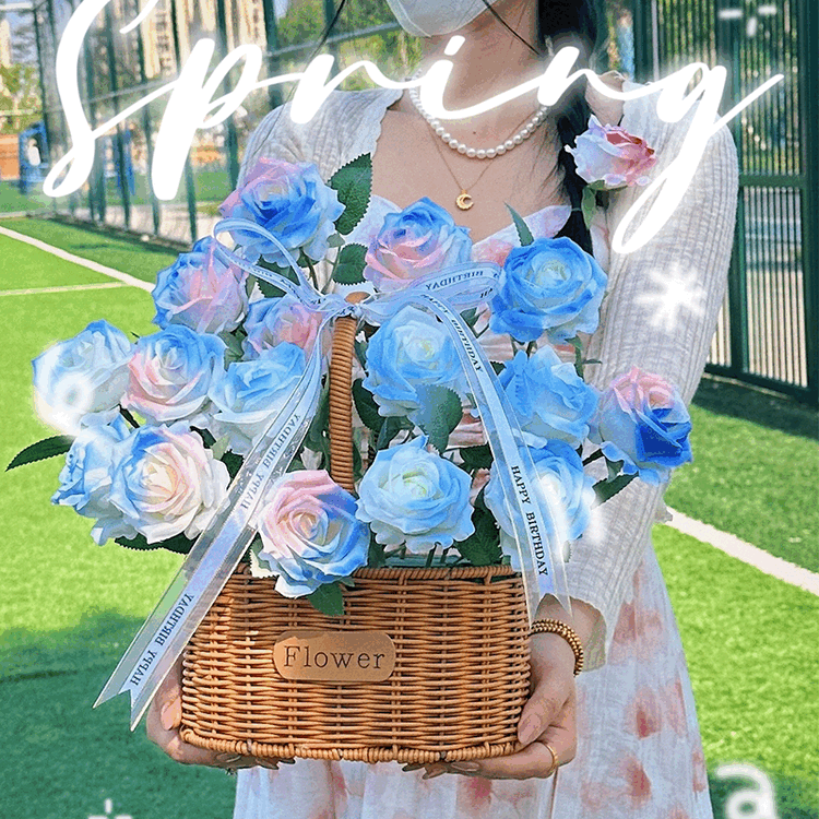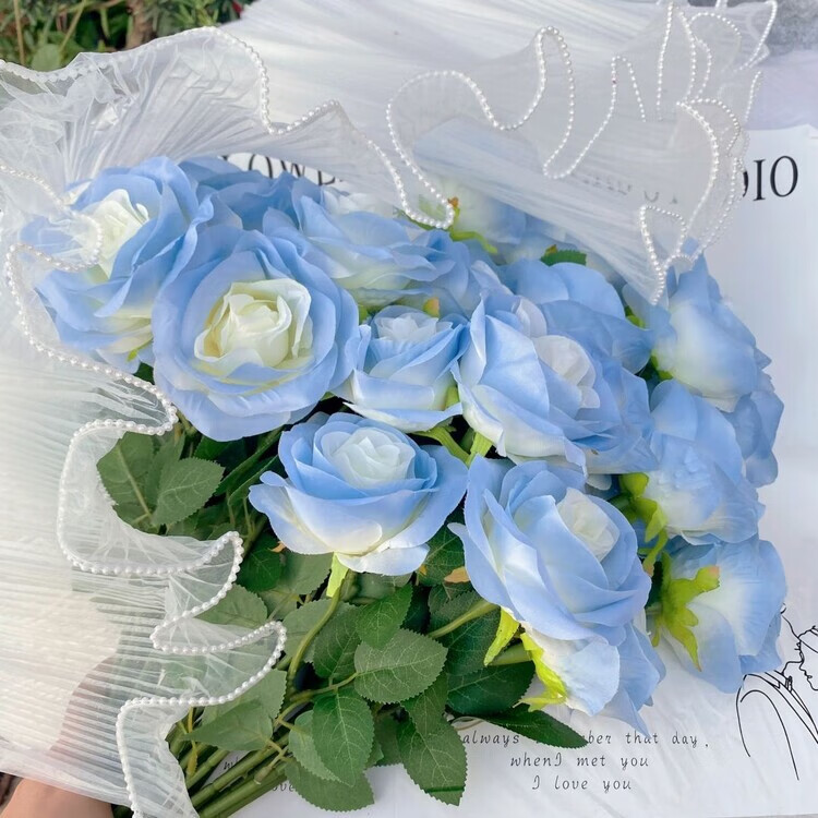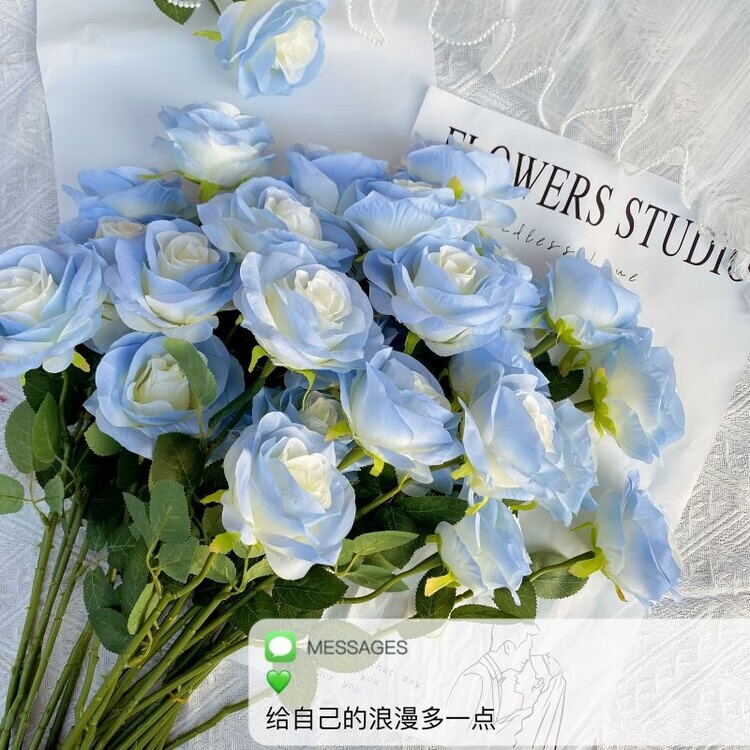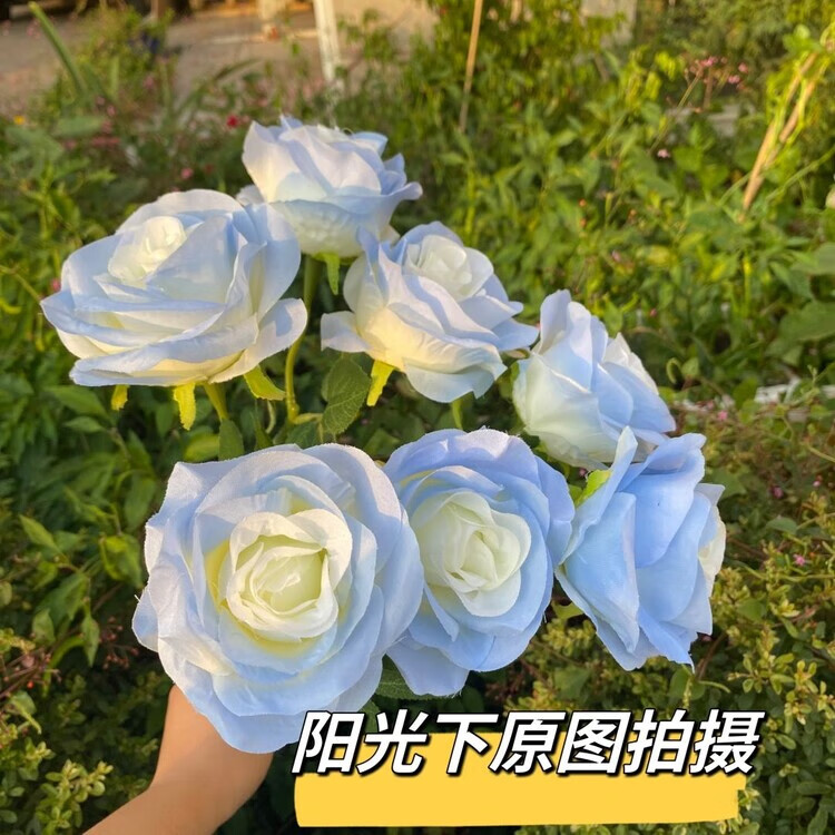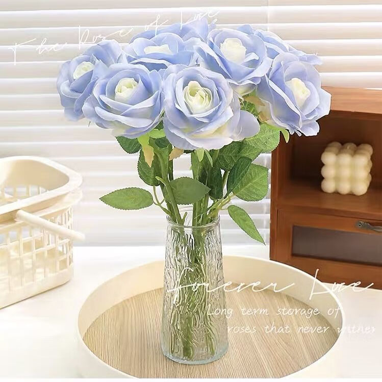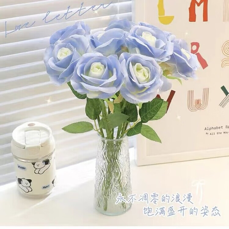 OYKTNins玫瑰花仿真花束碎冰蓝插花高颜值拍照diy礼物摆件客厅装饰高级 【密西根碎冰蓝】6支【事事顺心】