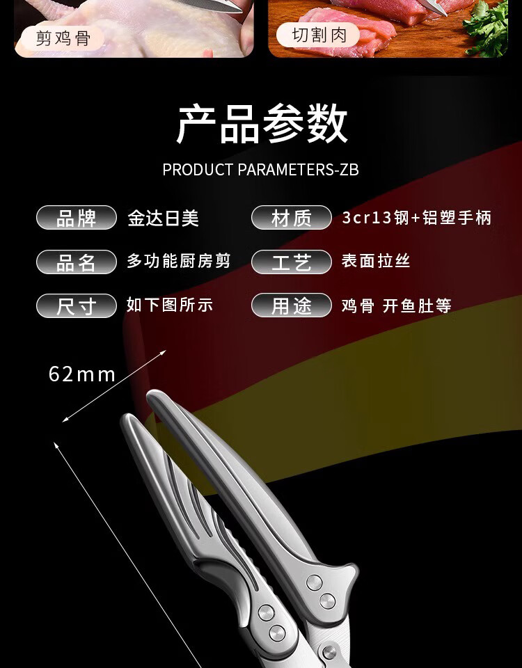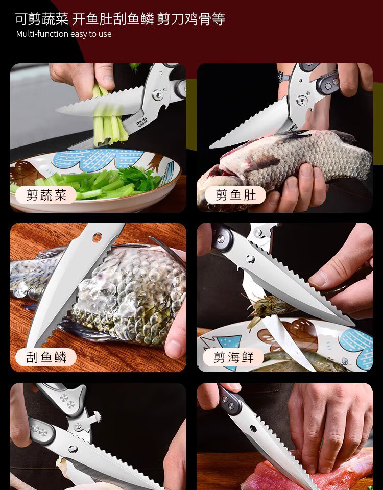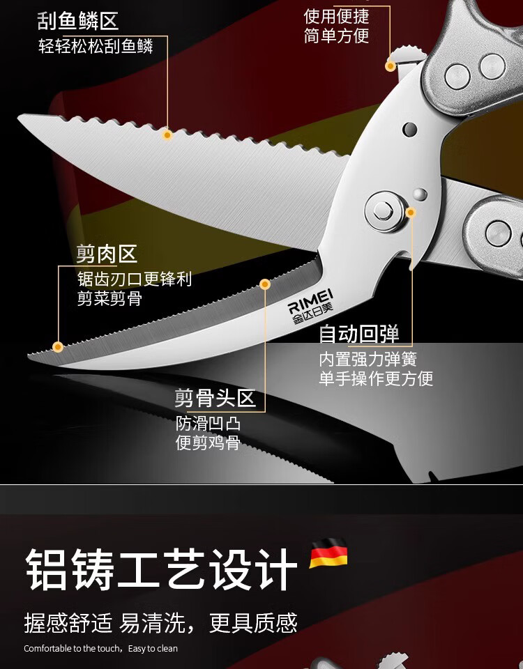 金达日美厨房剪刀不锈钢剪骨头专用强力鸡骨剪子家用剪刀剪鸡鸭骨头 全自动鸡骨剪【可拆款式】