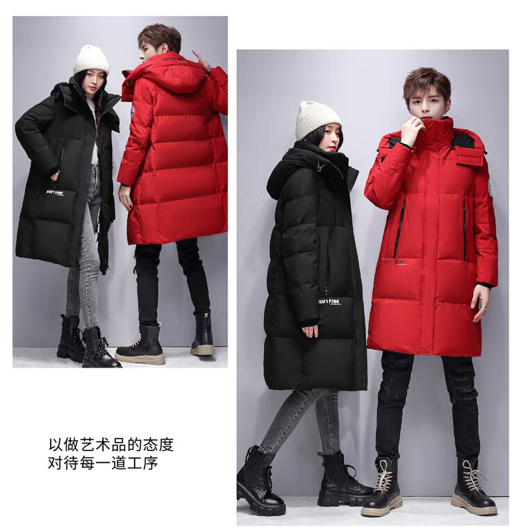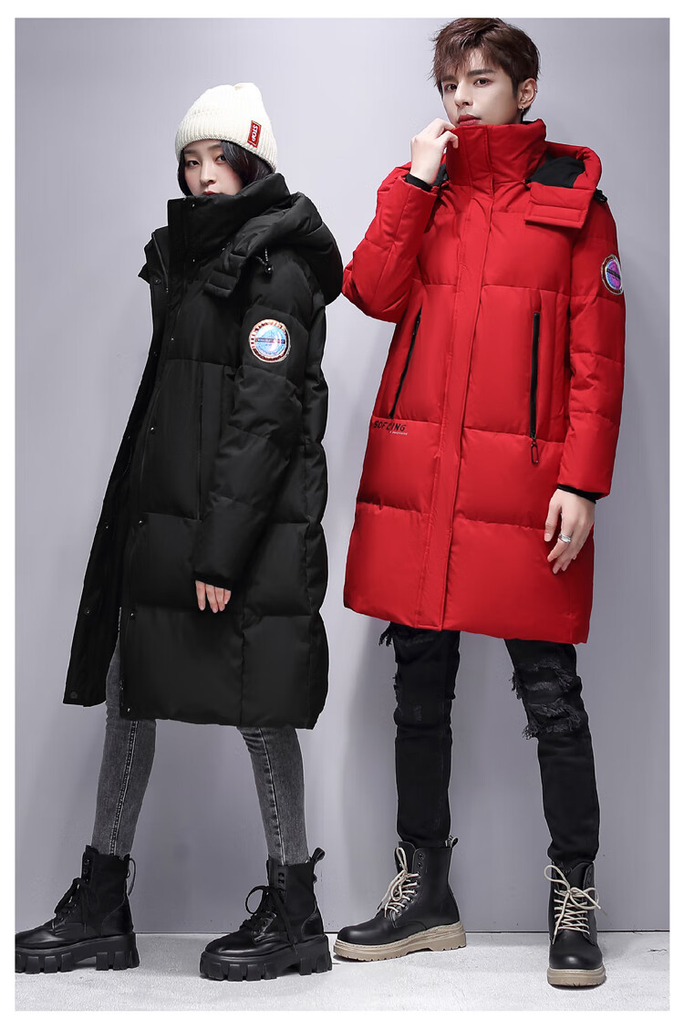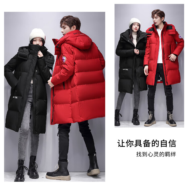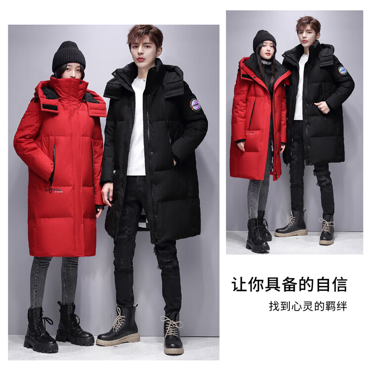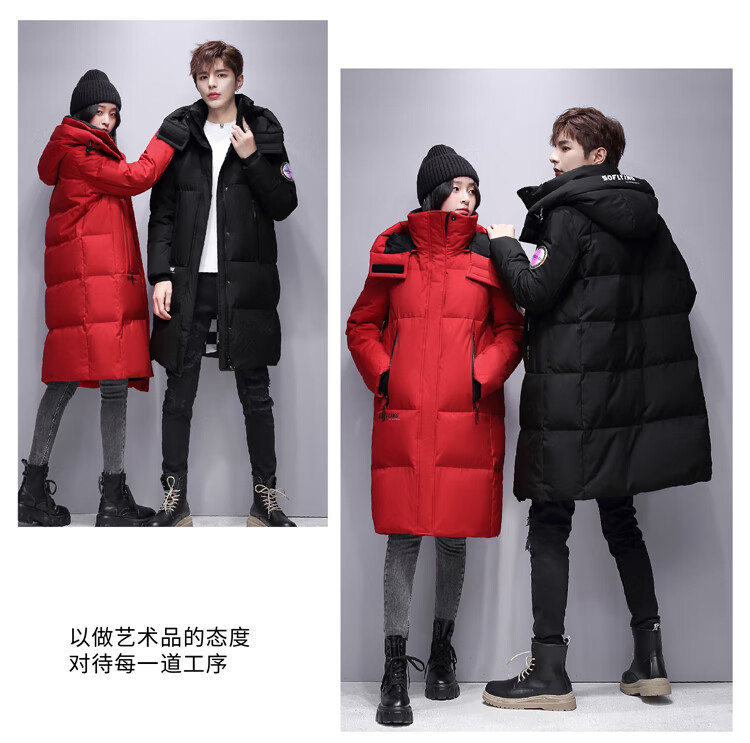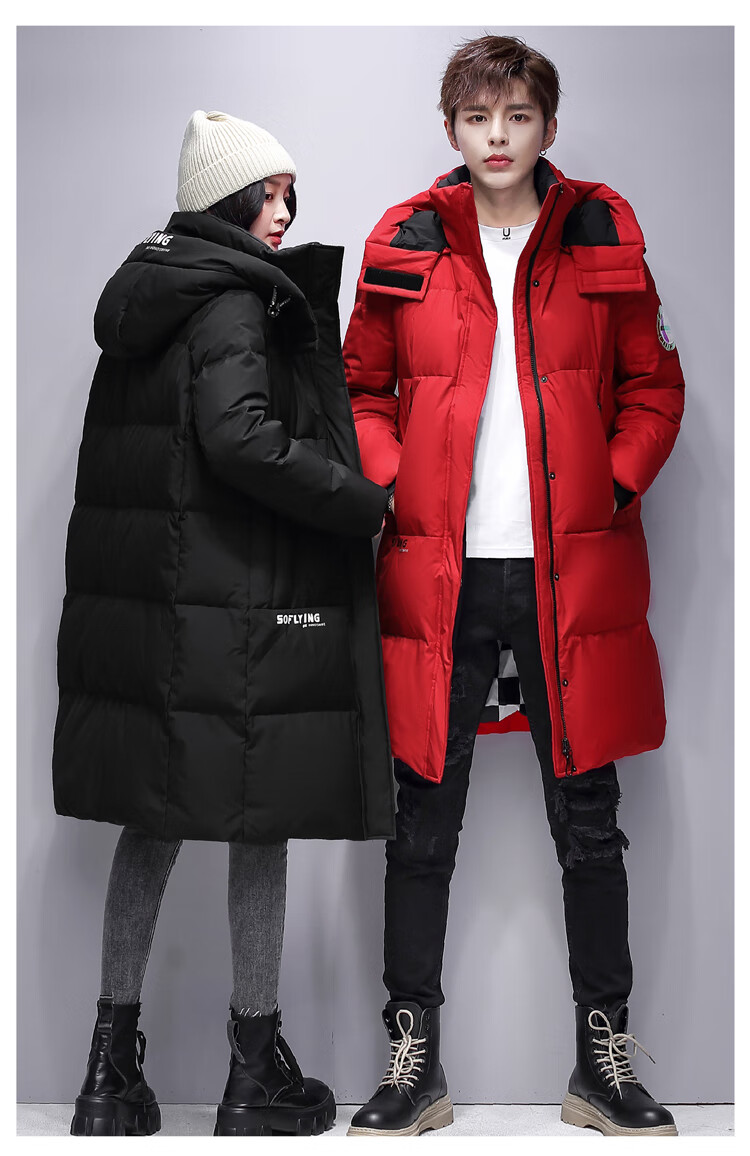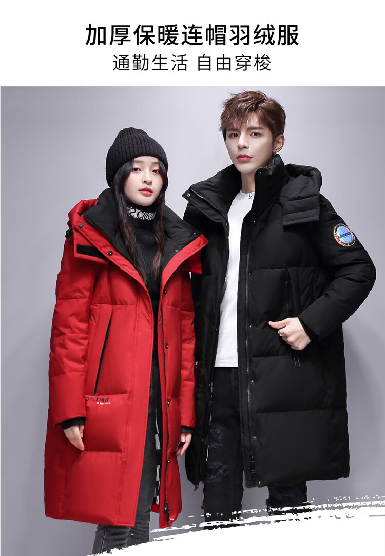 雪中飞长款羽绒服鹅绒抗寒保暖情侣款休闲时尚户外连帽外套30388 黑色 M (165/88A)
