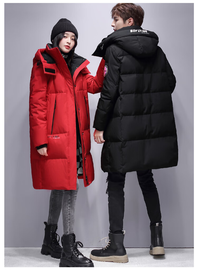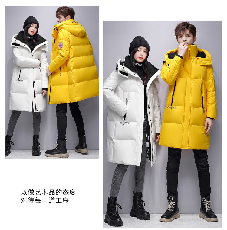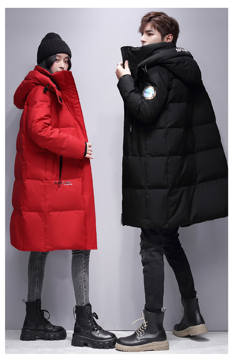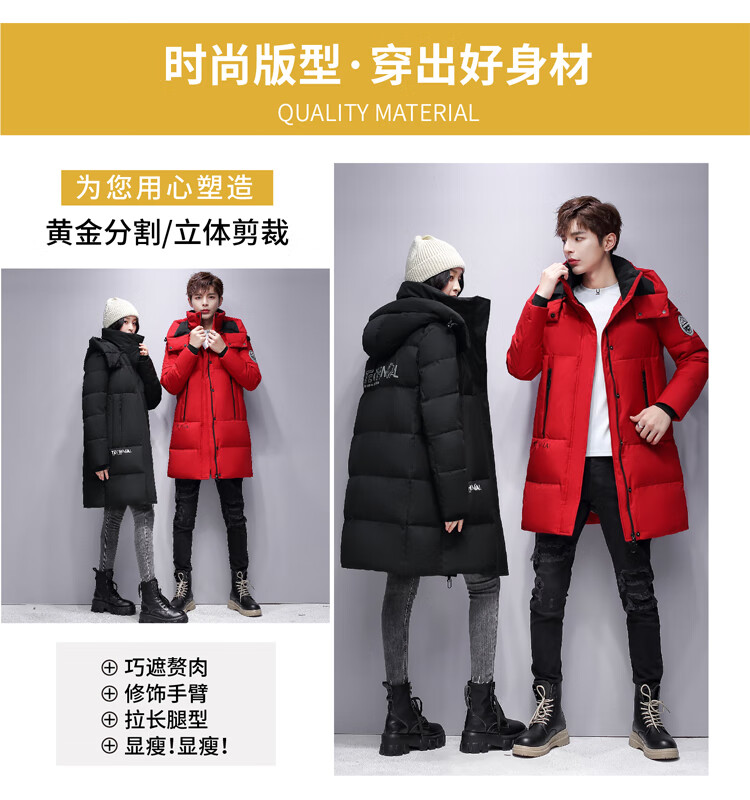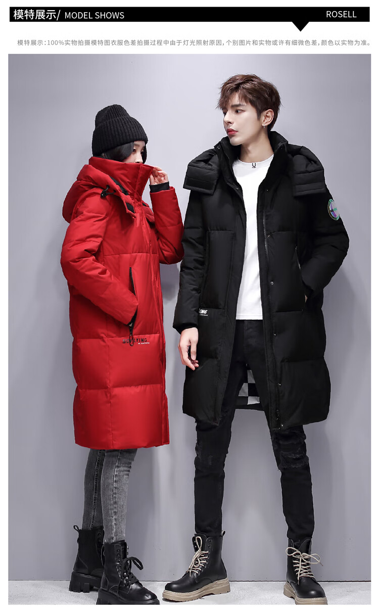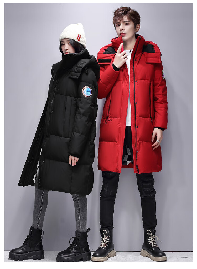 雪中飞长款羽绒服鹅绒抗寒保暖情侣款休闲时尚户外连帽外套30388 黑色 M (165/88A)