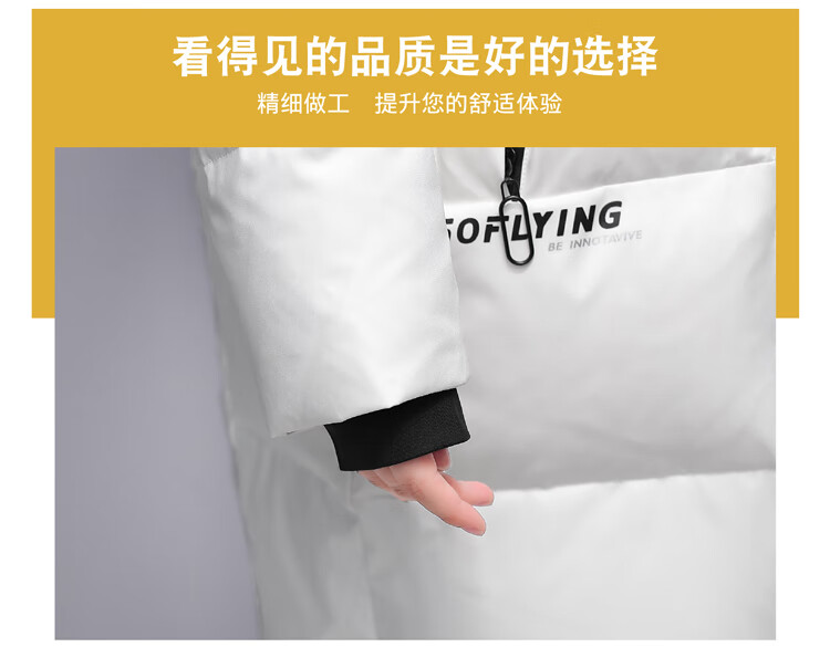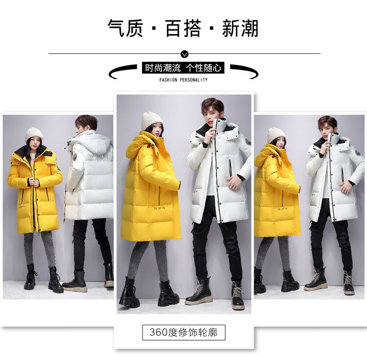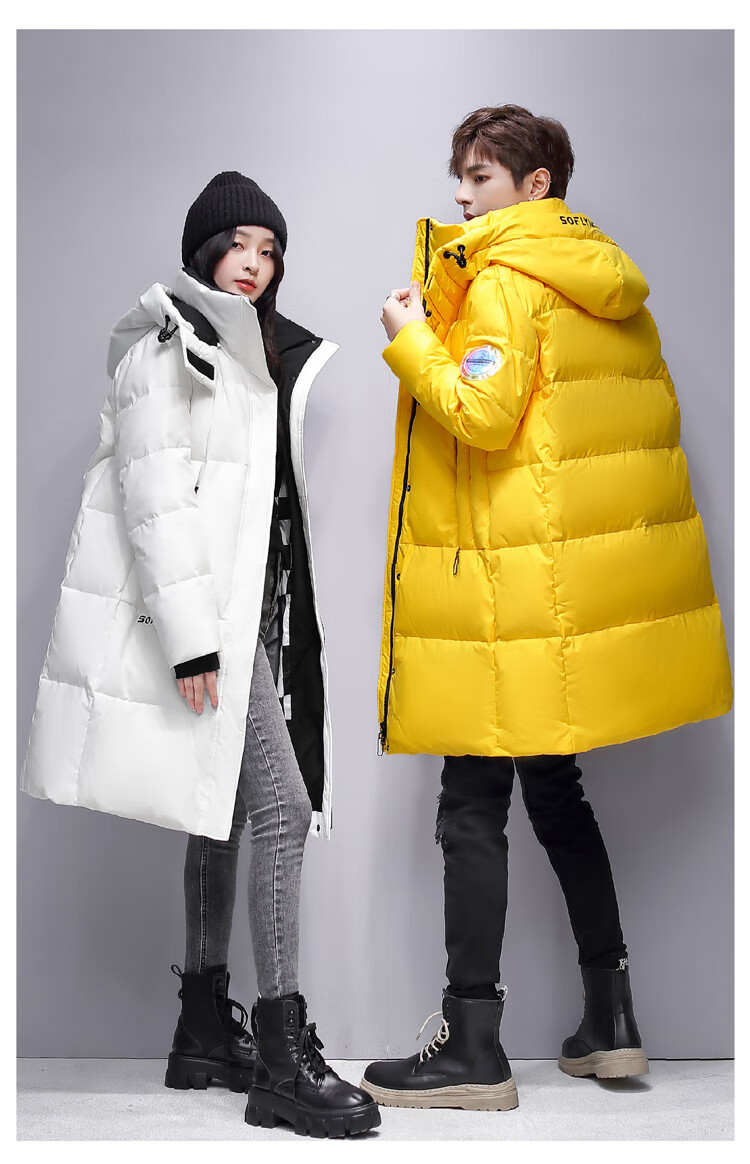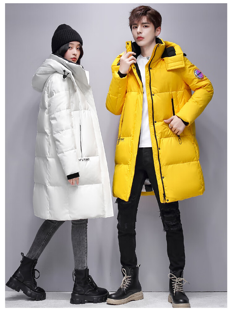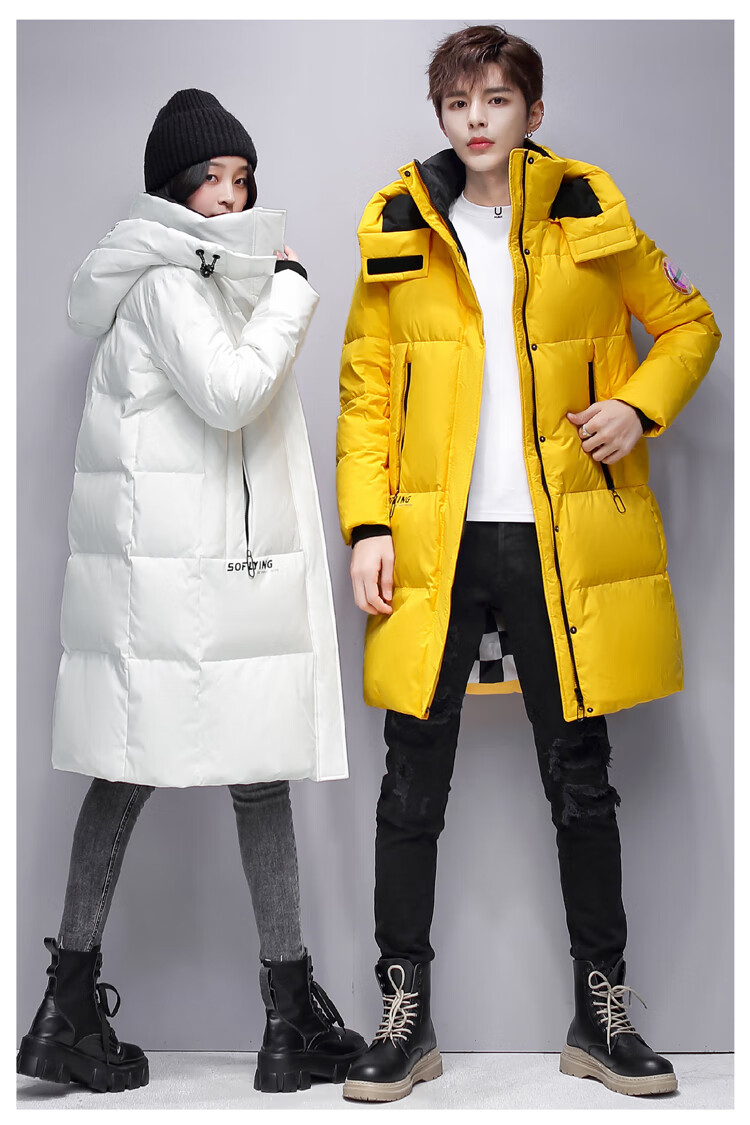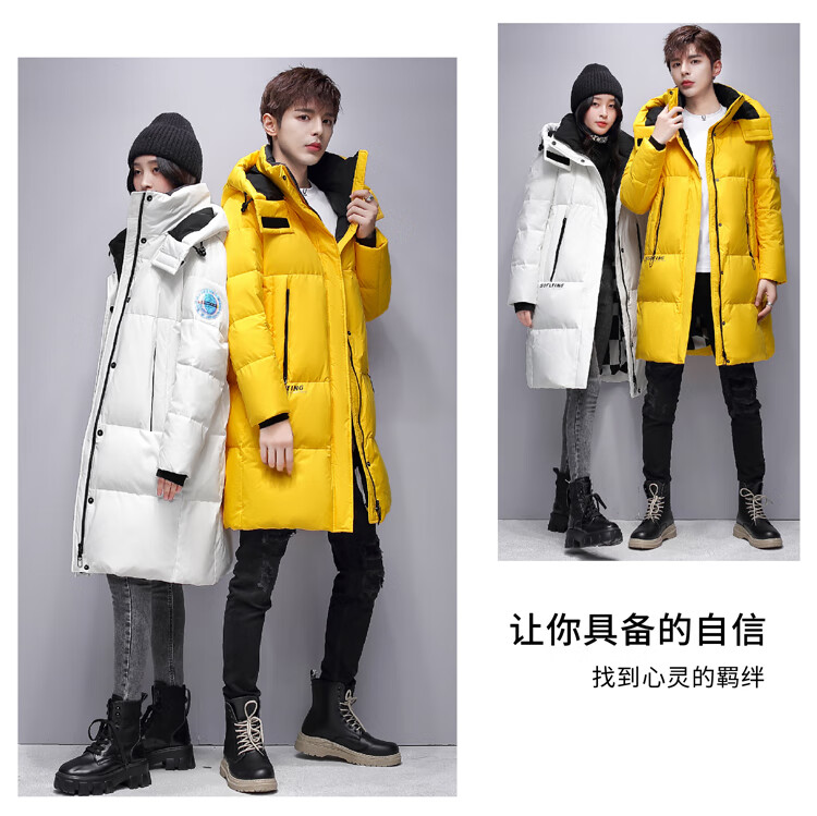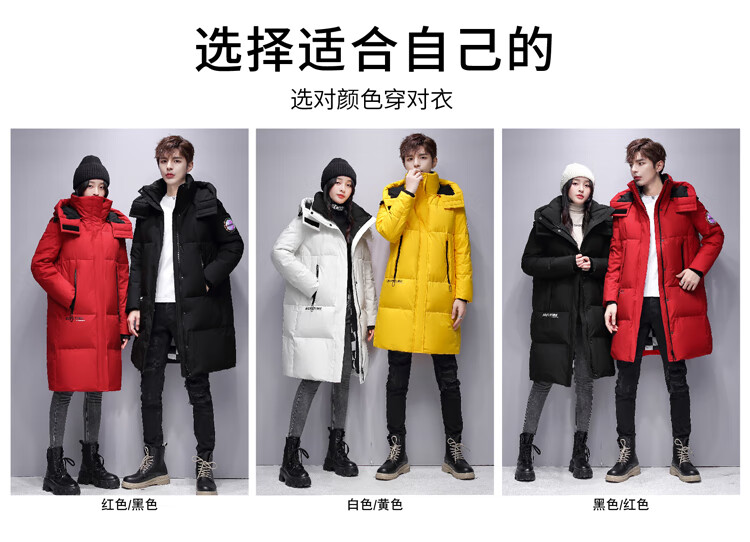 雪中飞长款羽绒服鹅绒抗寒保暖情侣款休闲时尚户外连帽外套30388 黑色 M (165/88A)