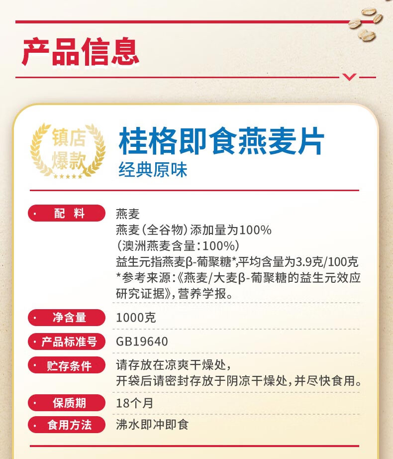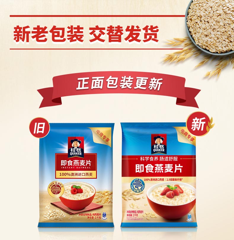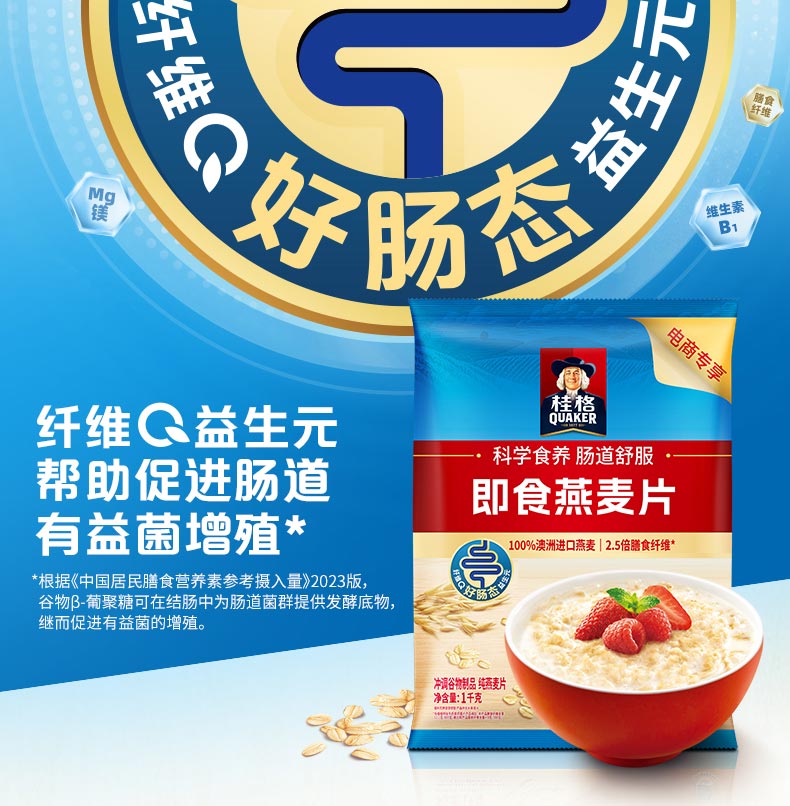 桂格【团购】桂格营养早餐1000g袋装谷物膳食纤维即食燕麦片 1000g即食袋子*2袋