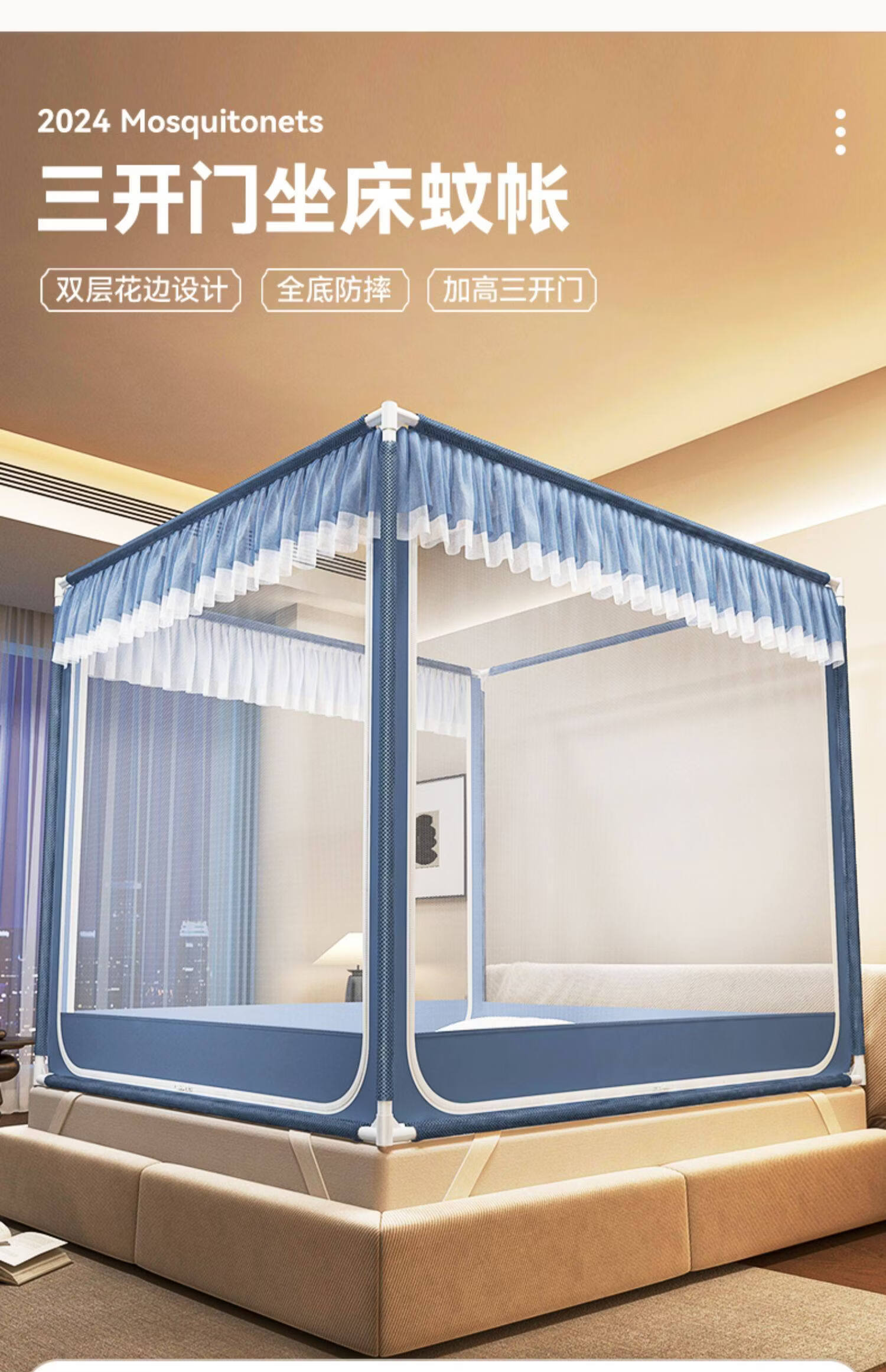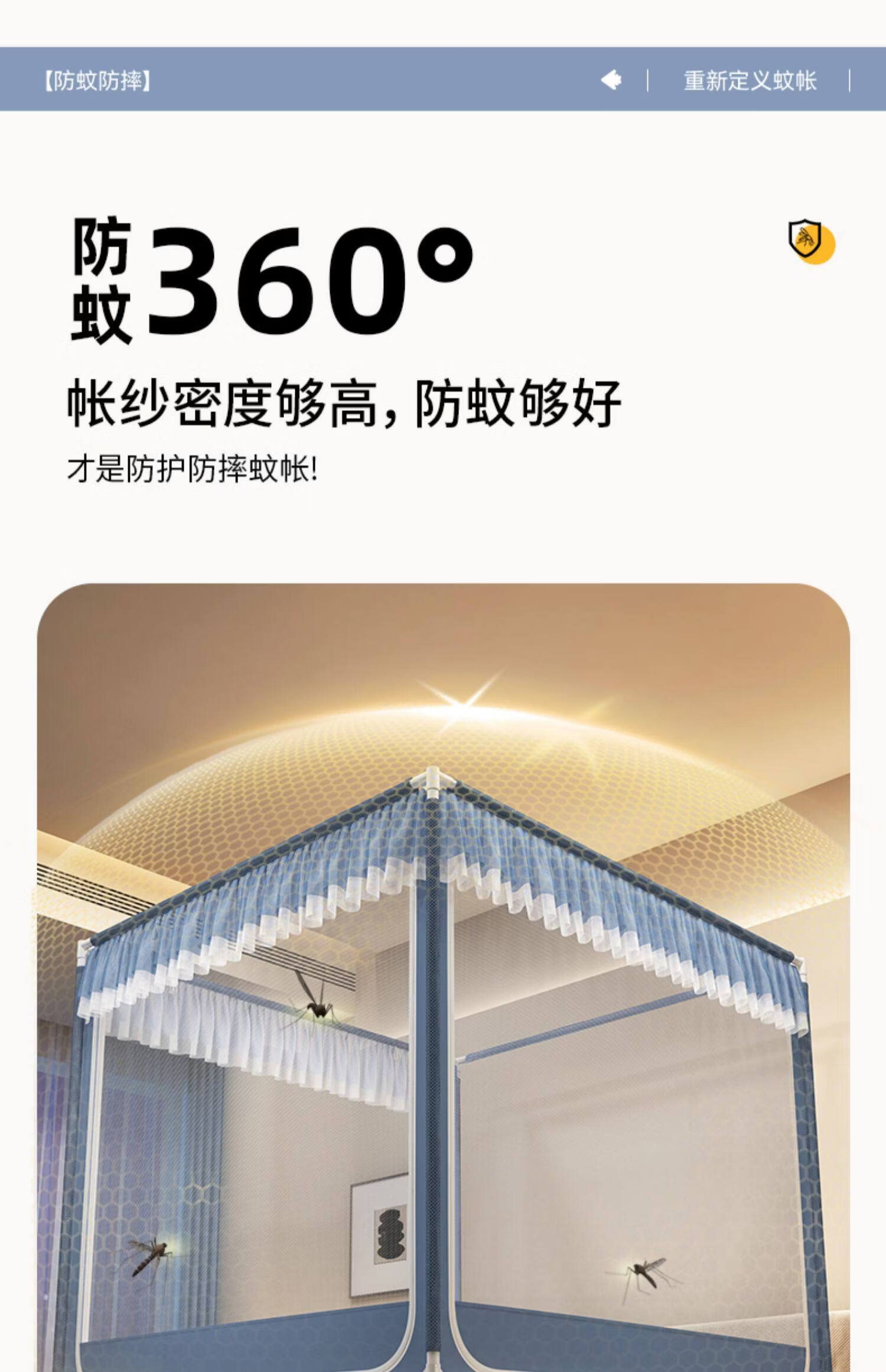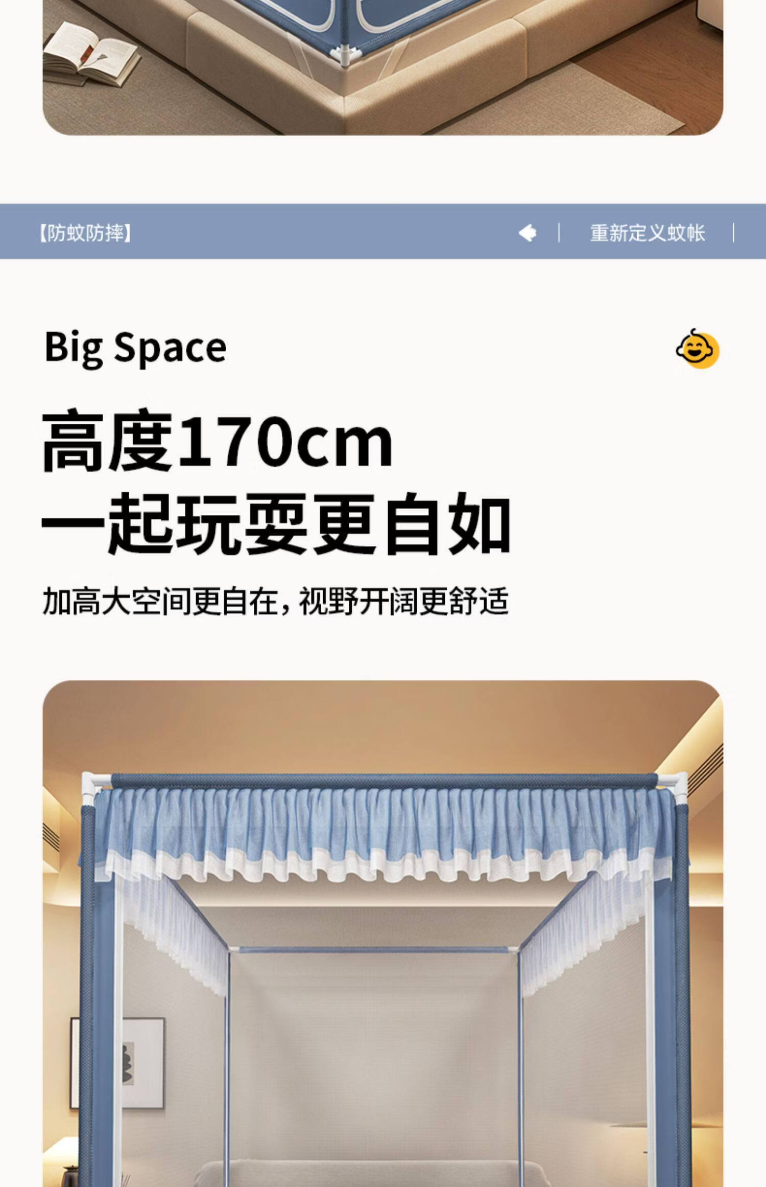 高睿防摔蚊帐2025新款安装抗菌婴儿防止掉床家用卧室全罩式儿童纹帐 元气灰【全底三开门】(A类母婴级抗菌帐纱+防蚊防摔) 适用1.5m床-宽150*长200*高170【碳素钢支架】