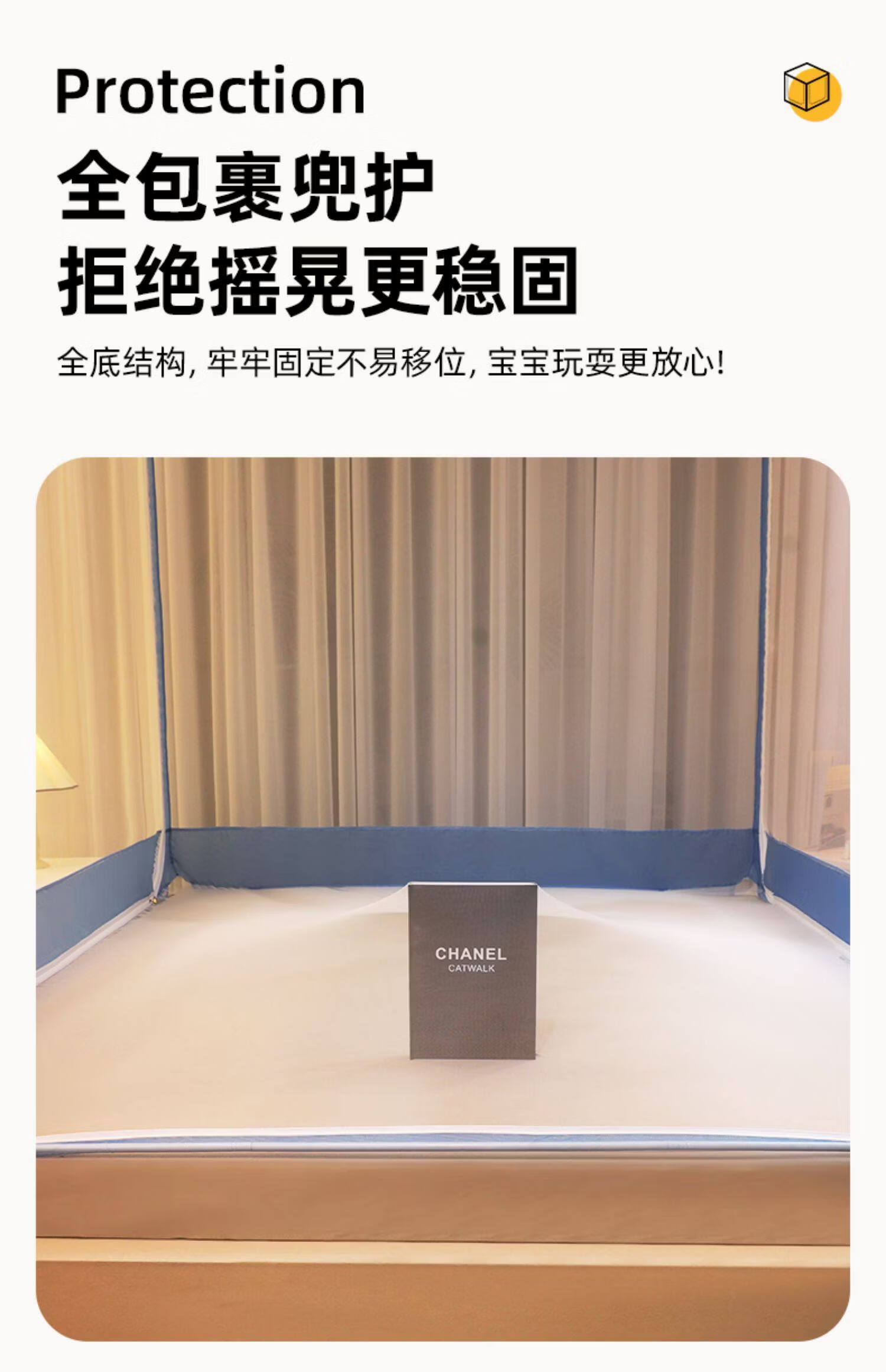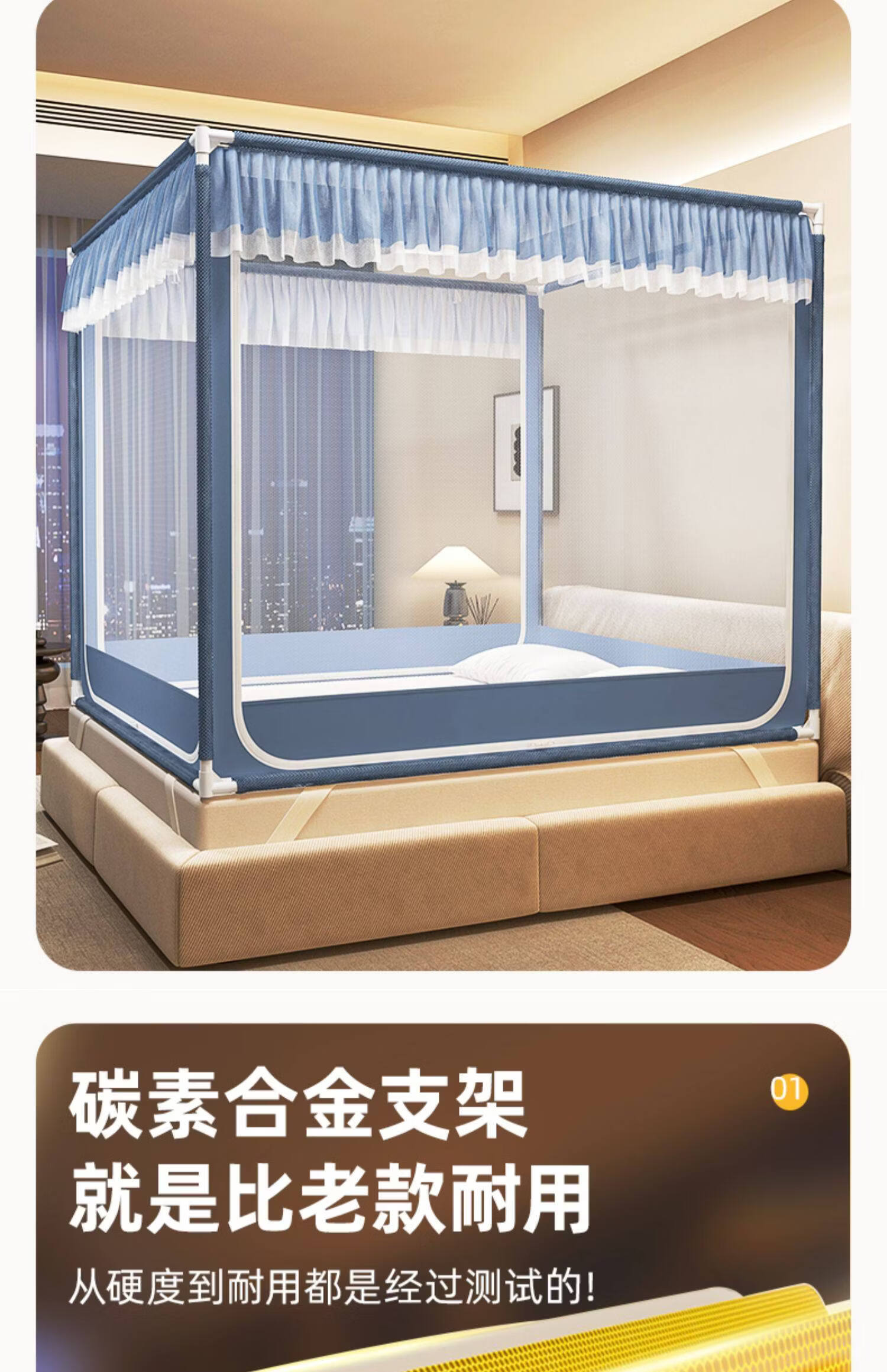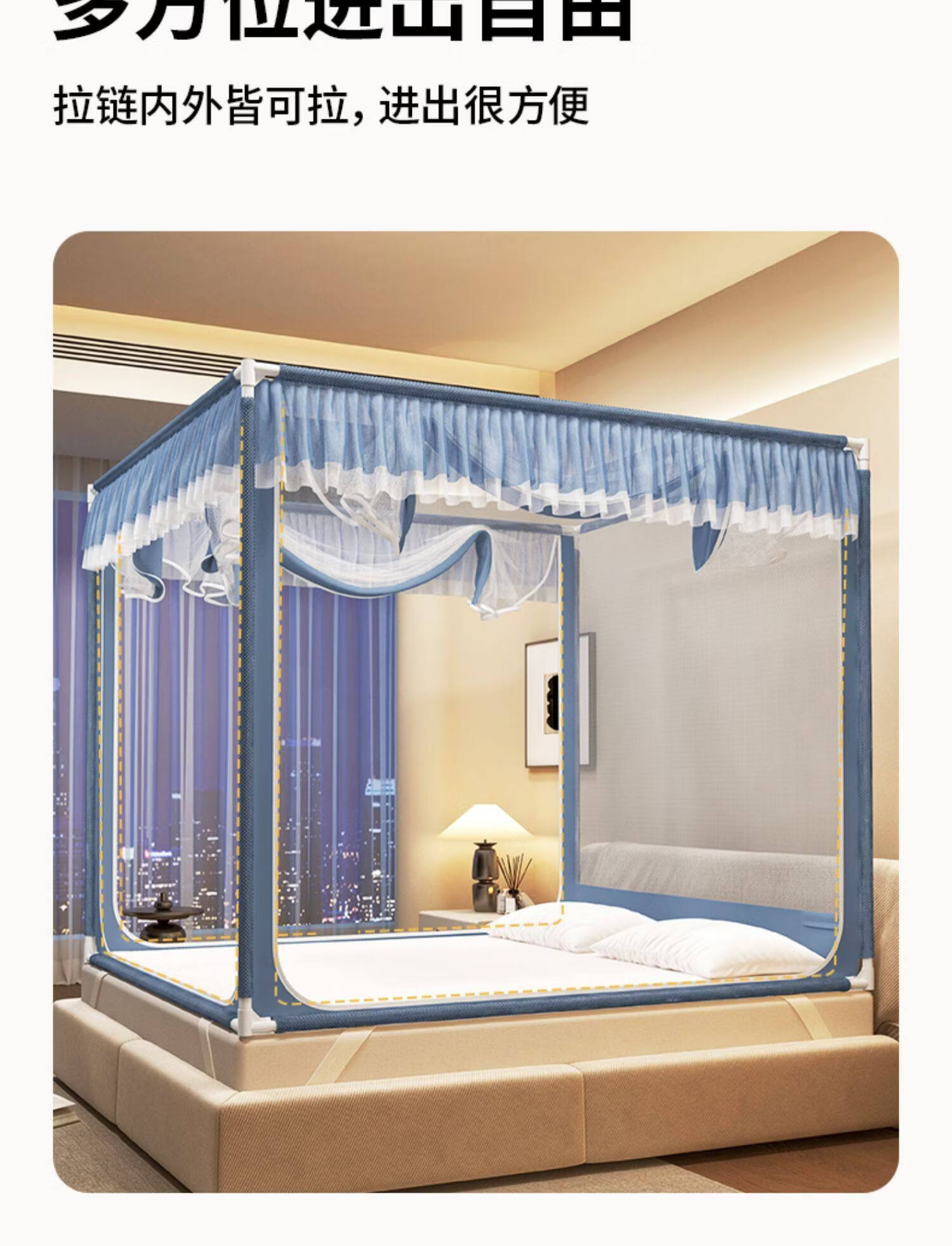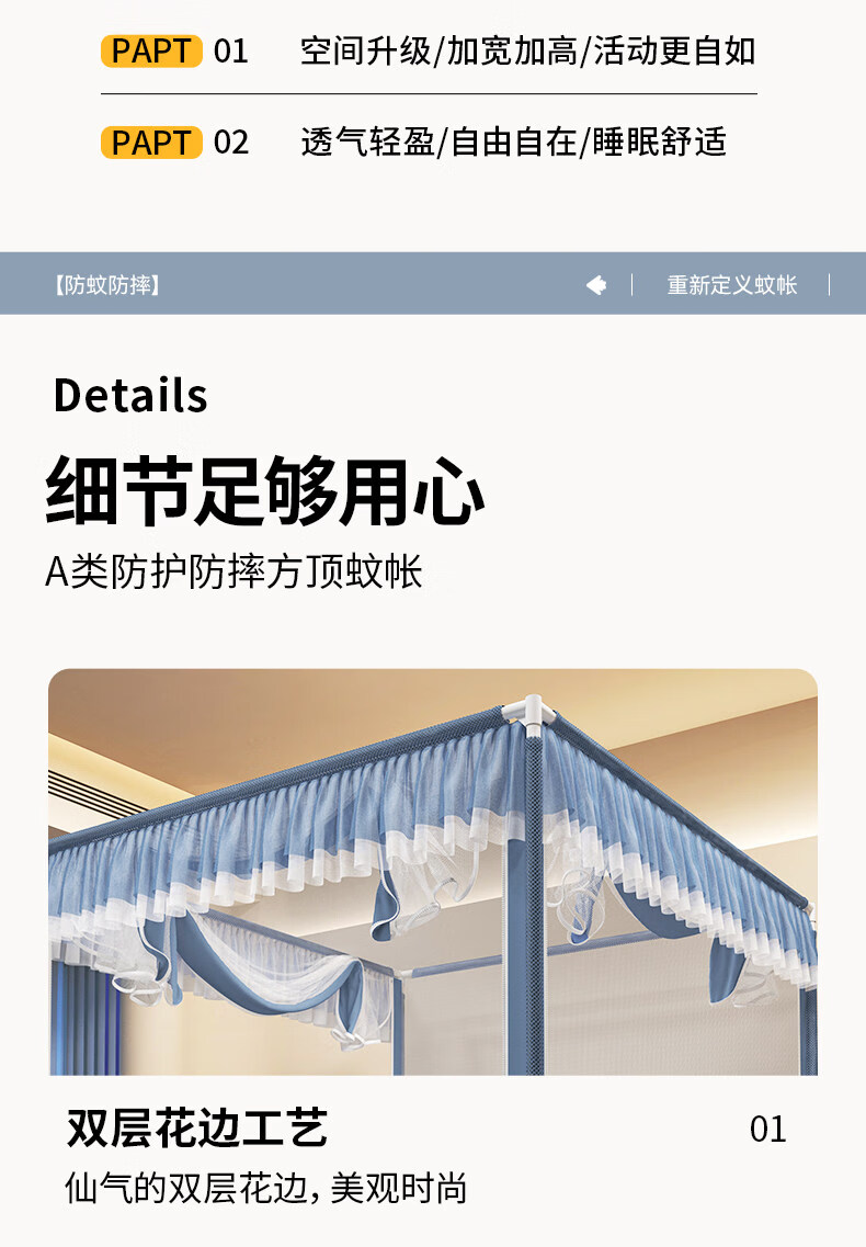 高睿防摔蚊帐2025新款安装抗菌婴儿防止掉床家用卧室全罩式儿童纹帐 元气灰【全底三开门】(A类母婴级抗菌帐纱+防蚊防摔) 适用1.5m床-宽150*长200*高170【碳素钢支架】