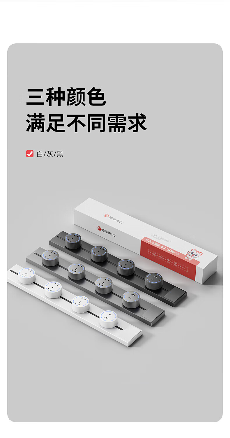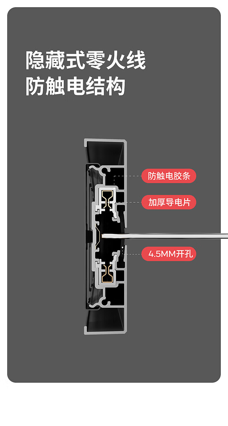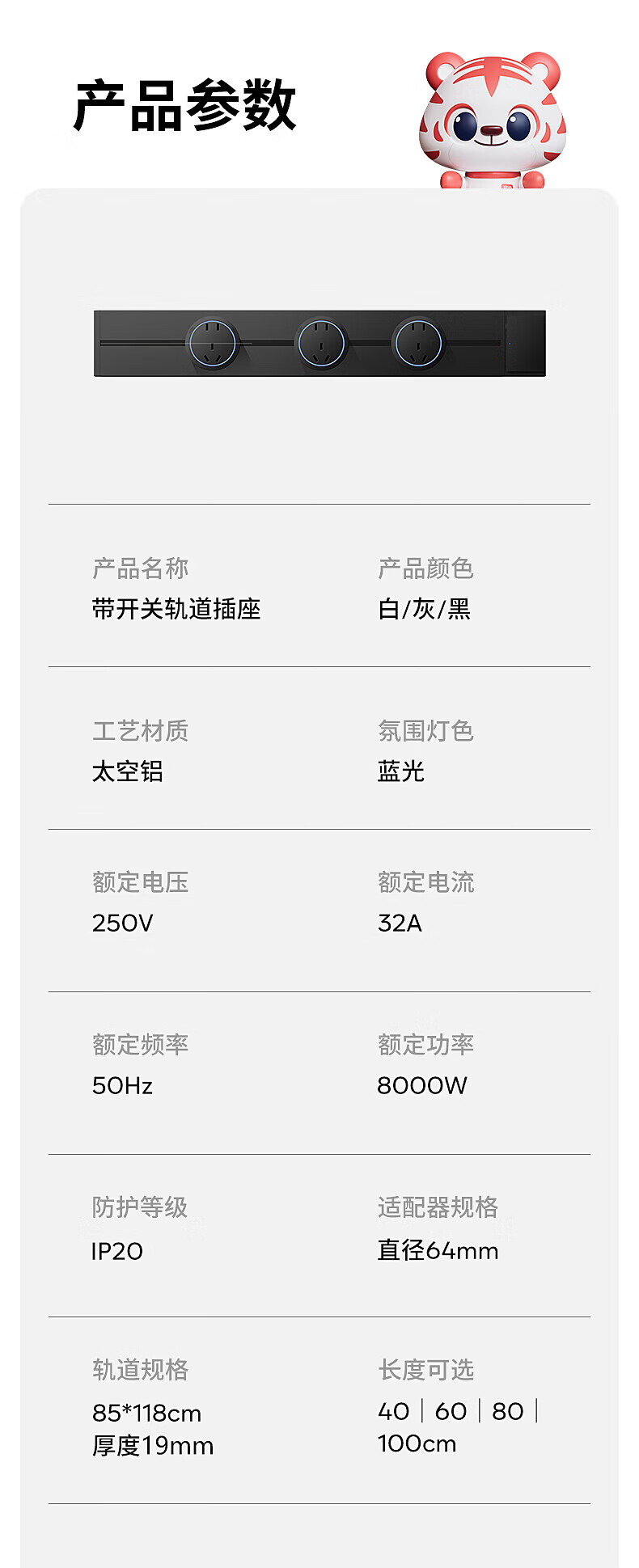 国际电工厨房轨道插座可移动插排壁挂式电力导轨插座氛围感应灯轨道插板 明装轨道(带灯带防尘条)40cm+3个五孔