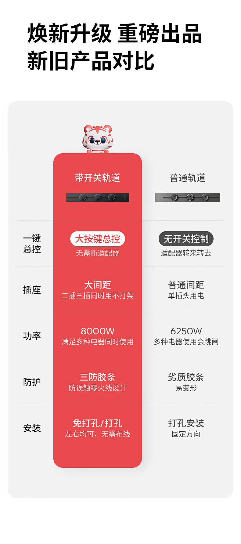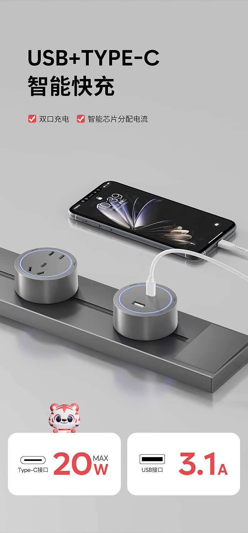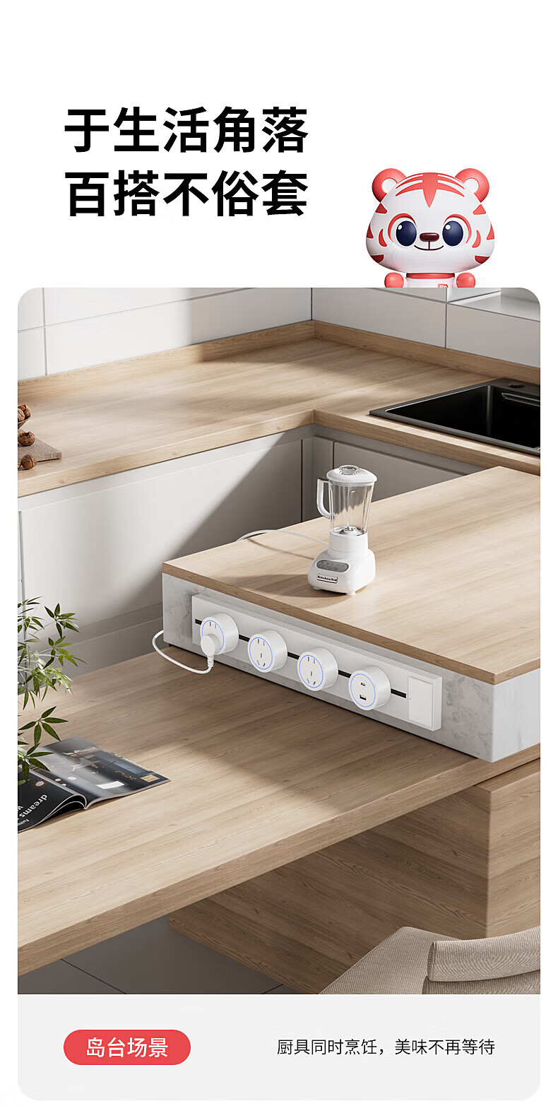 国际电工厨房轨道插座可移动插排壁挂式电力导轨插座氛围感应灯轨道插板 明装轨道(带灯带防尘条)40cm+3个五孔