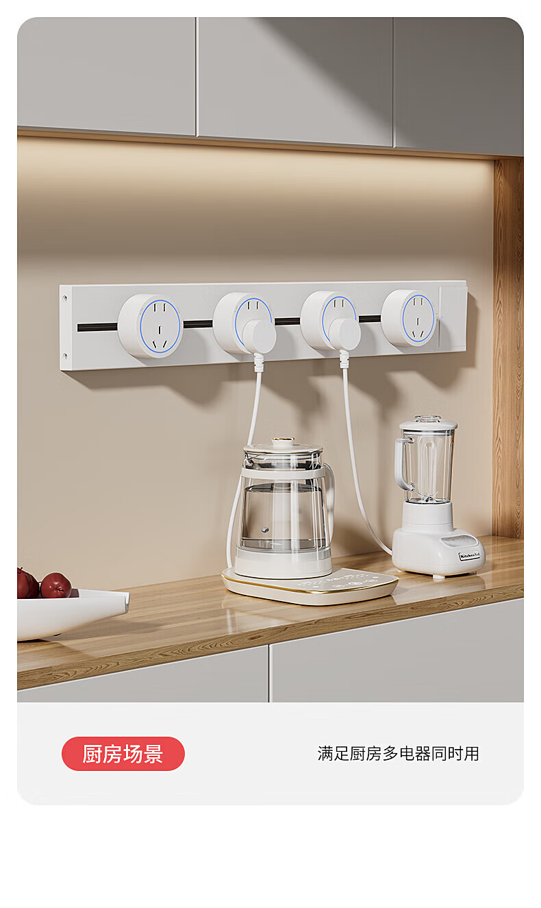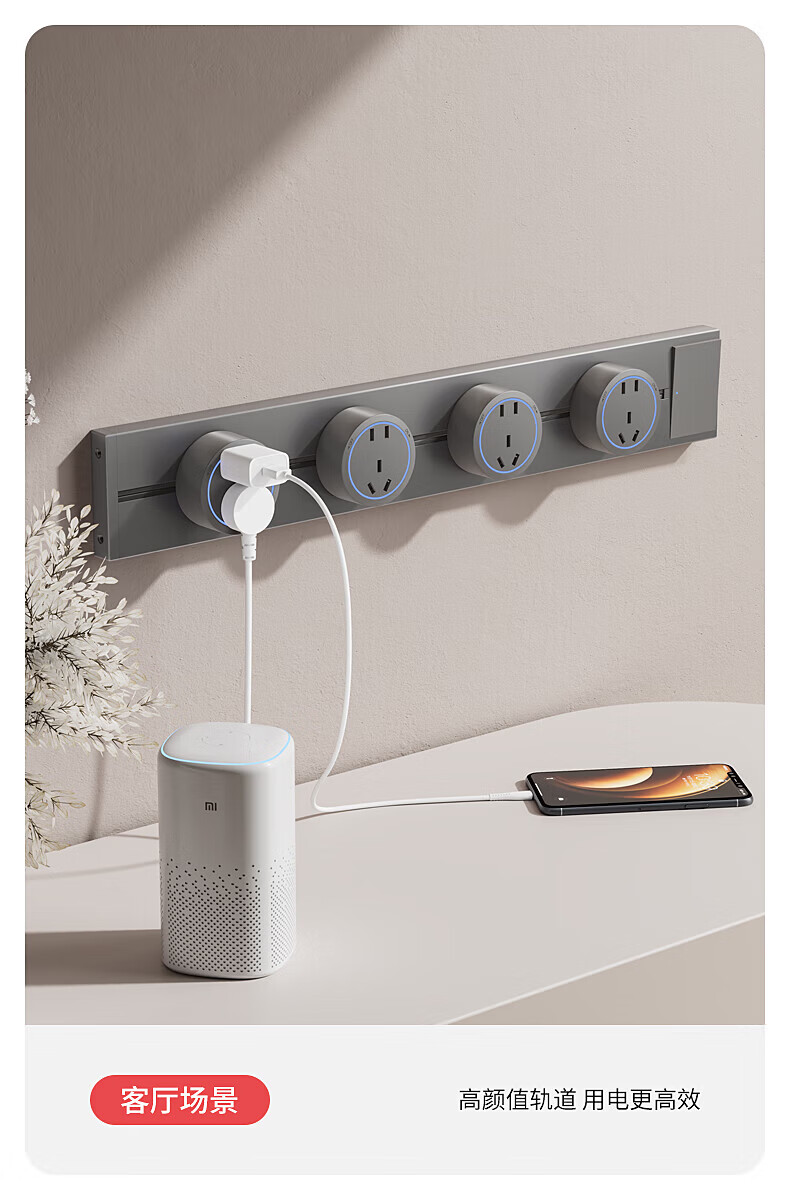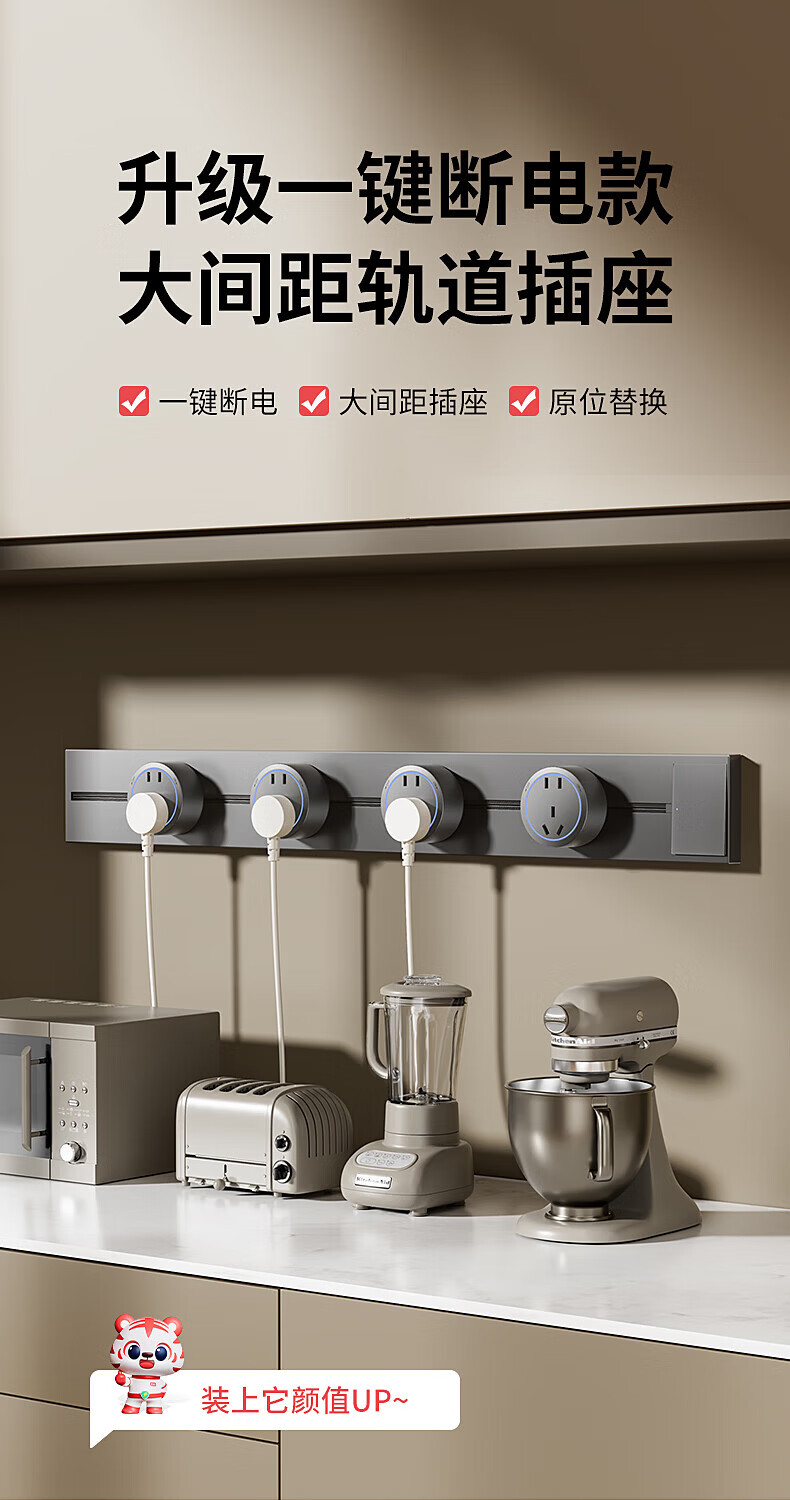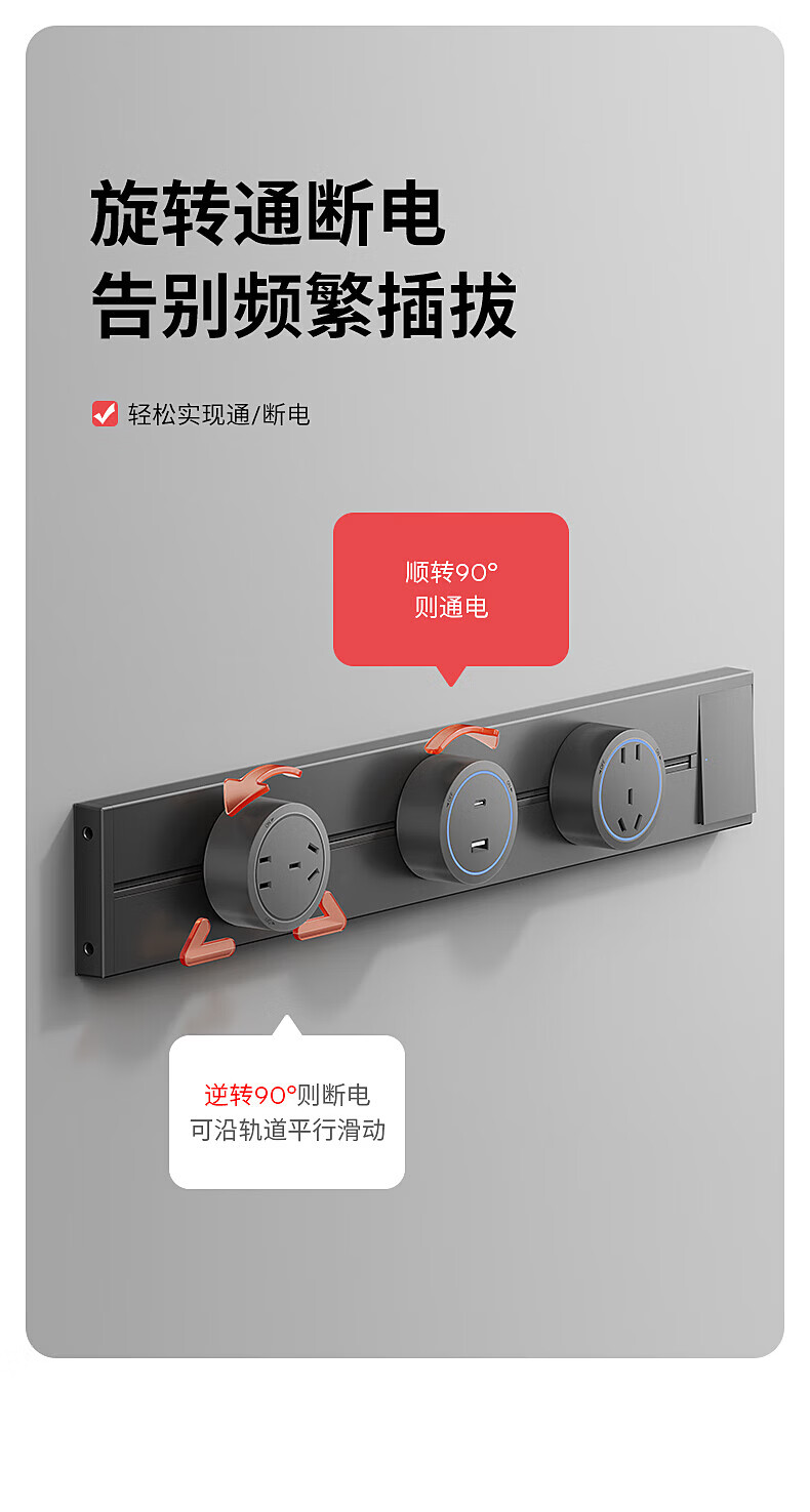 国际电工(FDD)明装轨道插座带开关一键断电大间距五孔可移动插排家用餐边柜插板 【总控开关】50厘米轨道+4个大五孔适配器