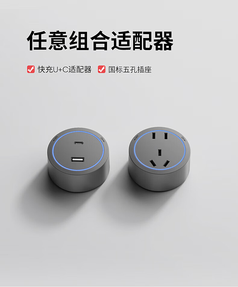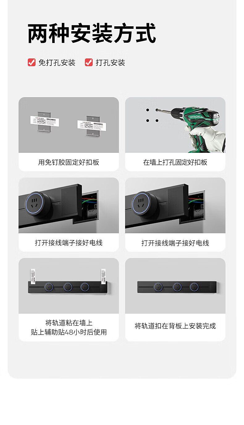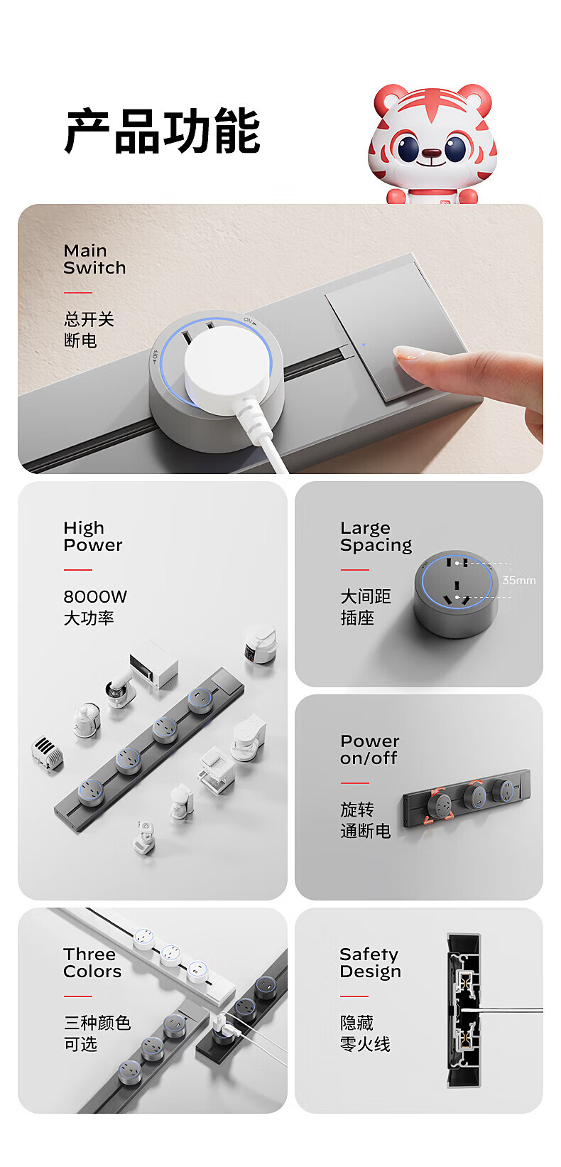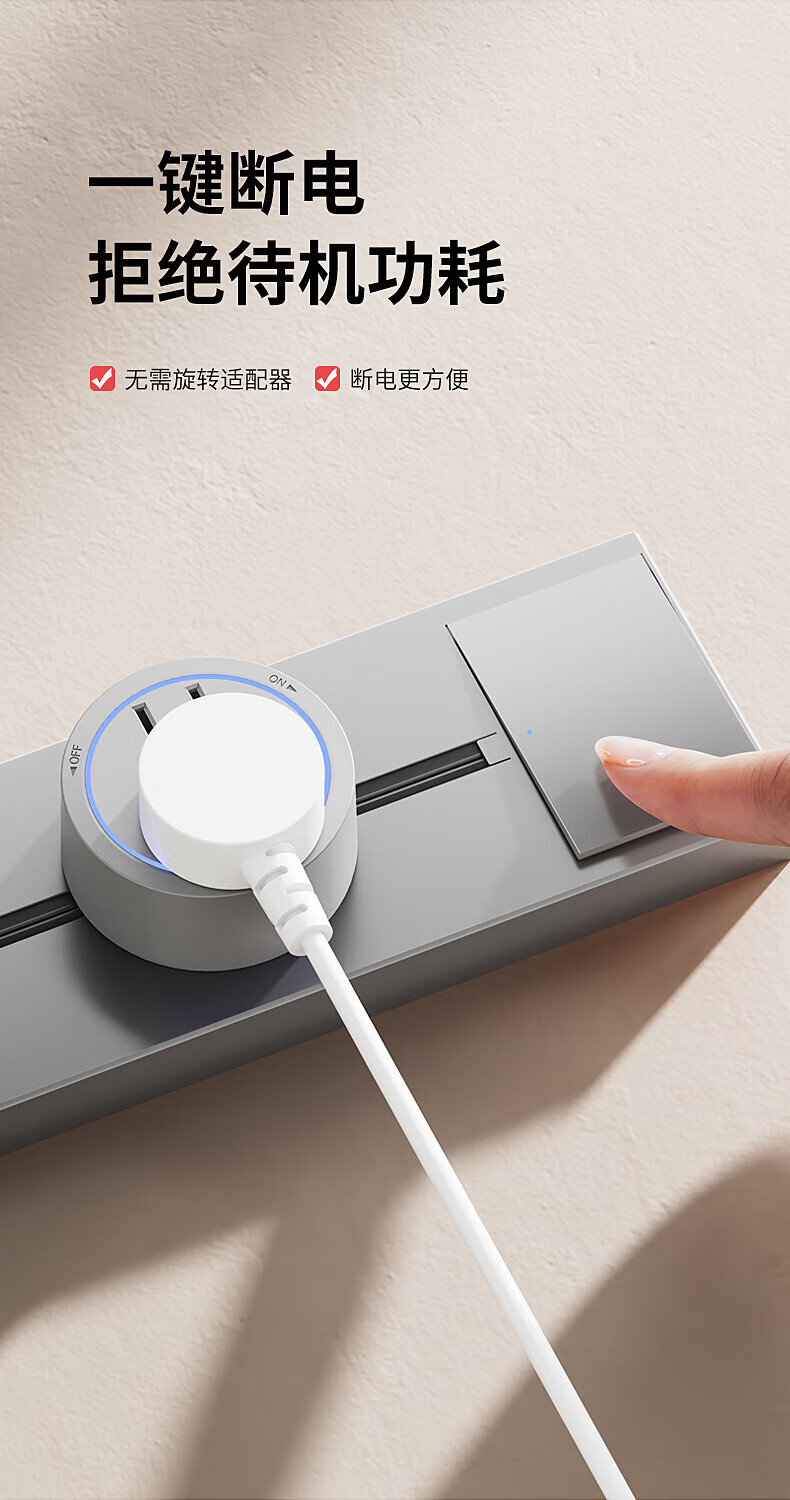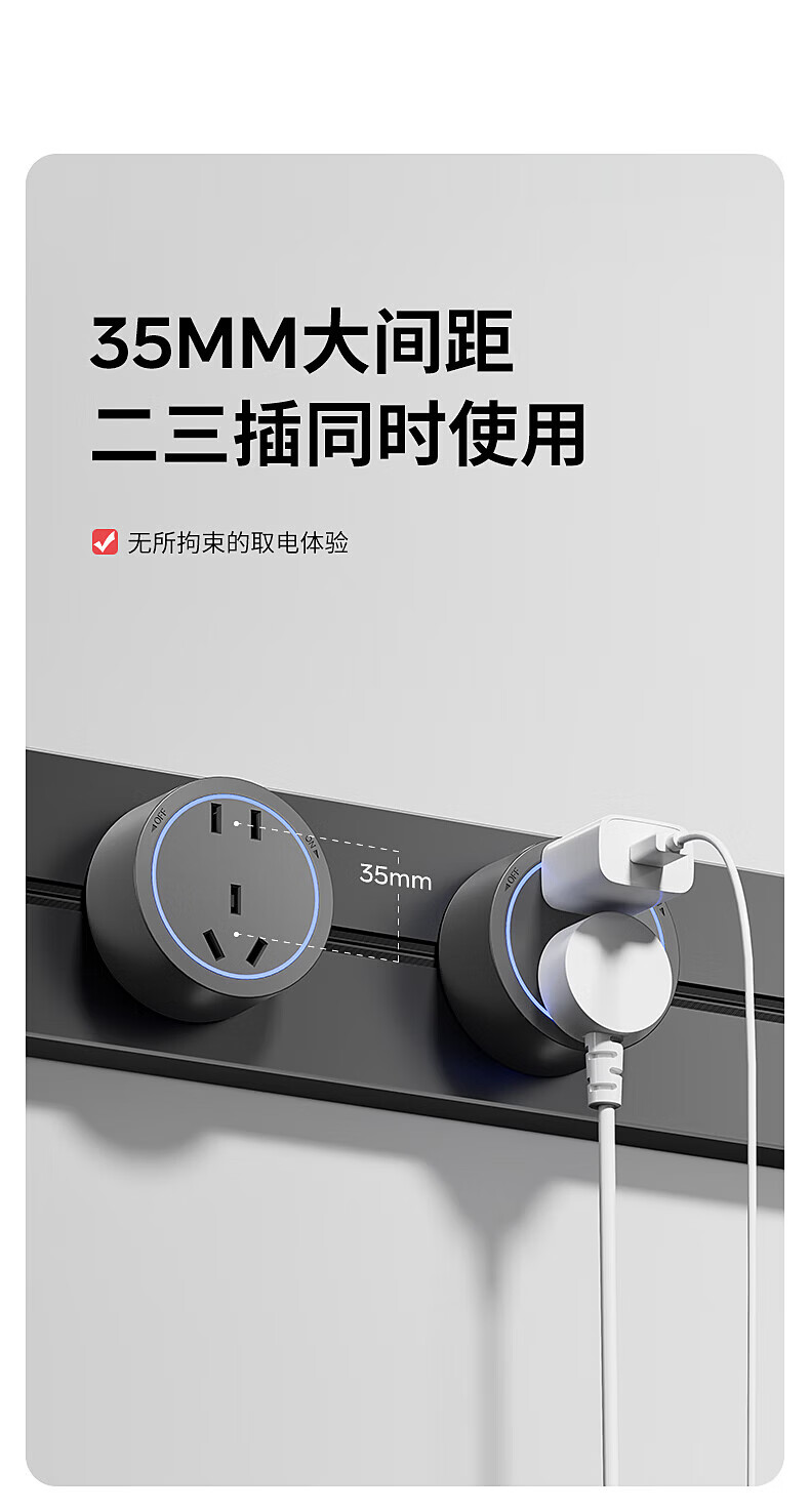 国际电工(FDD)明装轨道插座带开关一键断电大间距五孔可移动插排家用餐边柜插板 【总控开关】50厘米轨道+4个大五孔适配器