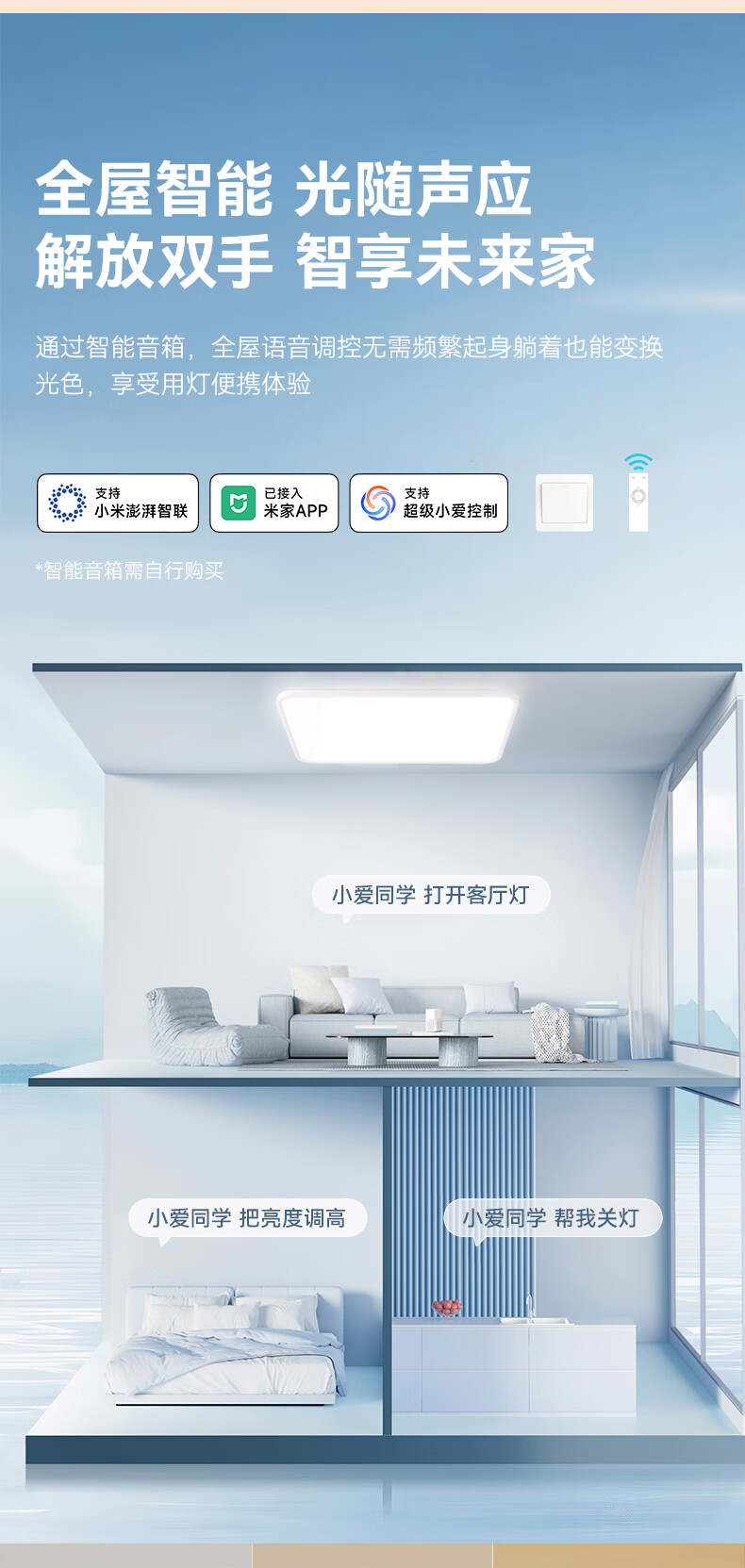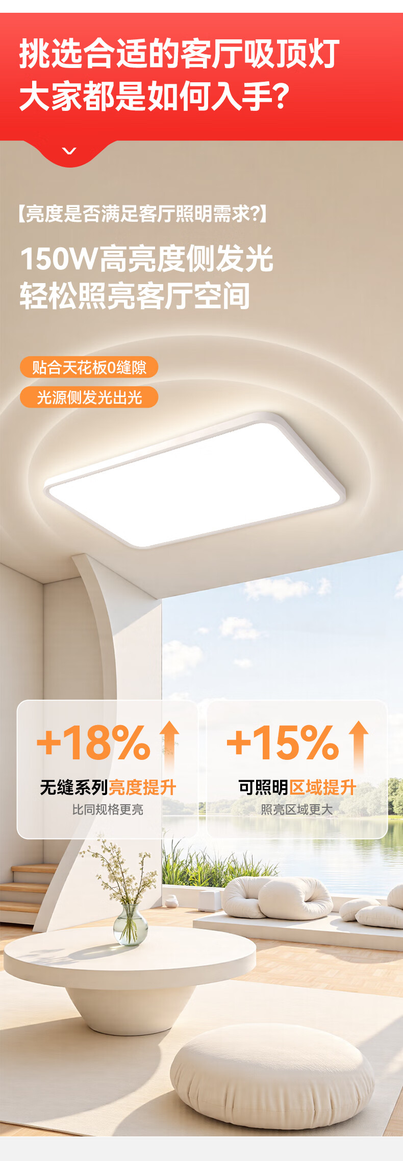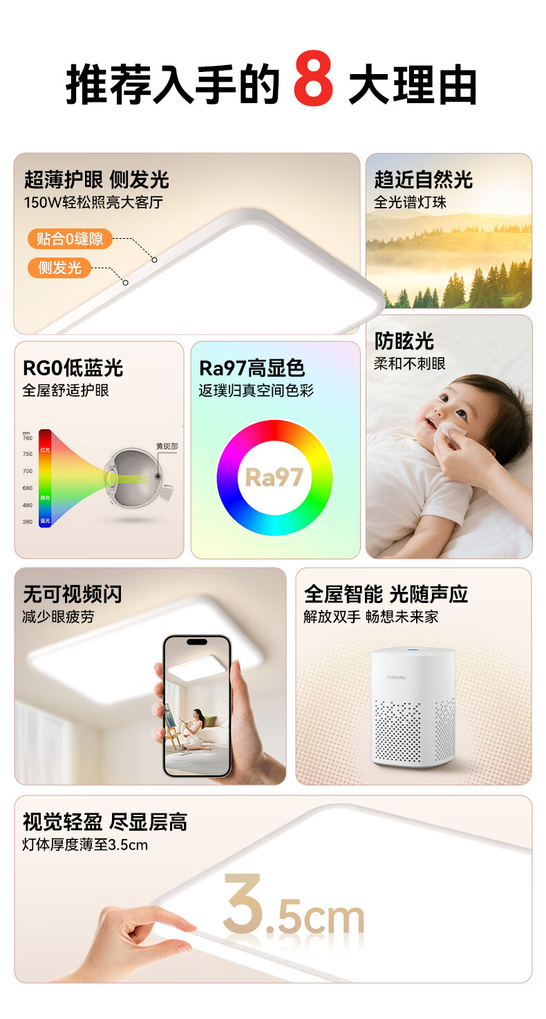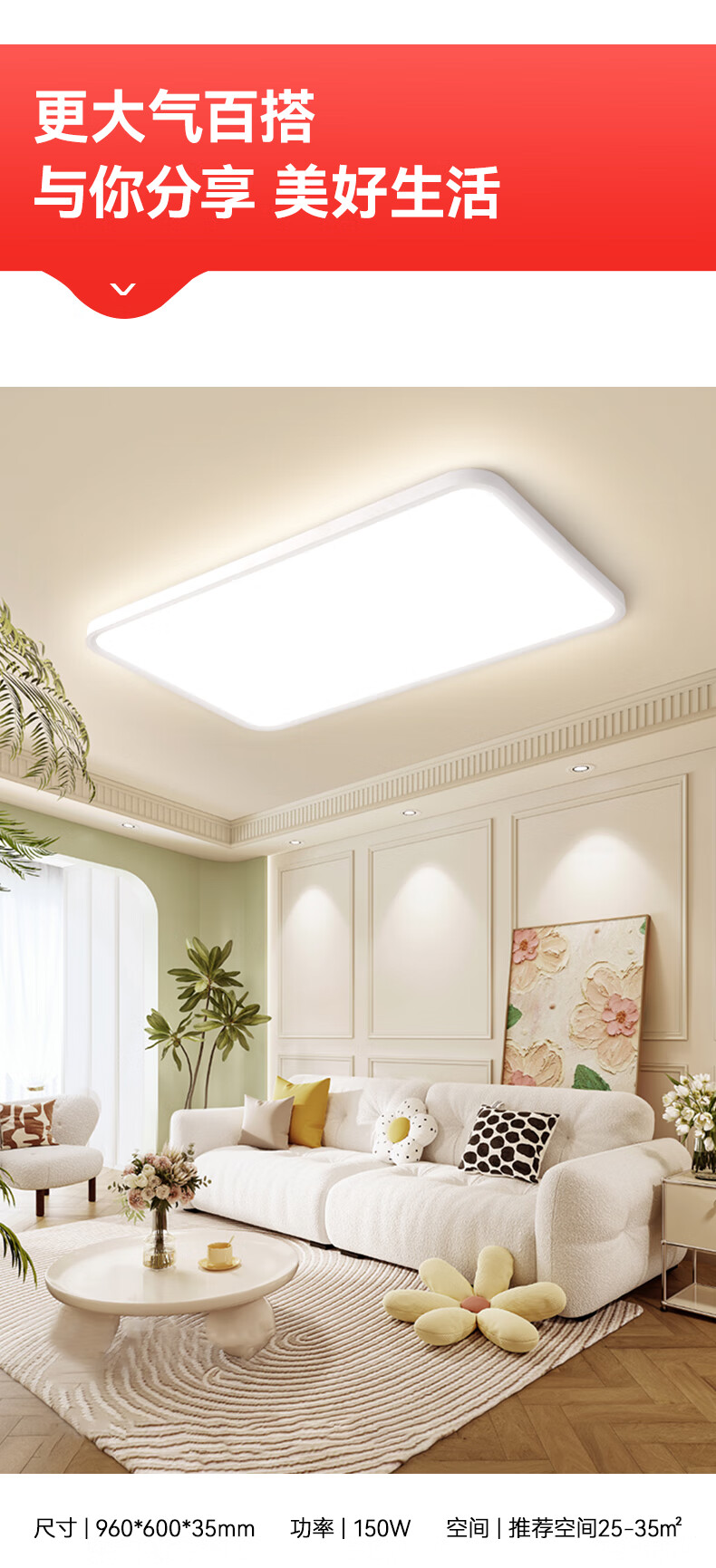 阳光照明 LED全光谱护眼2025新款客厅大灯 卧室吸顶灯 政府补贴灯具 【包安装】星合超薄丨150w客厅智控大灯丨全光谱