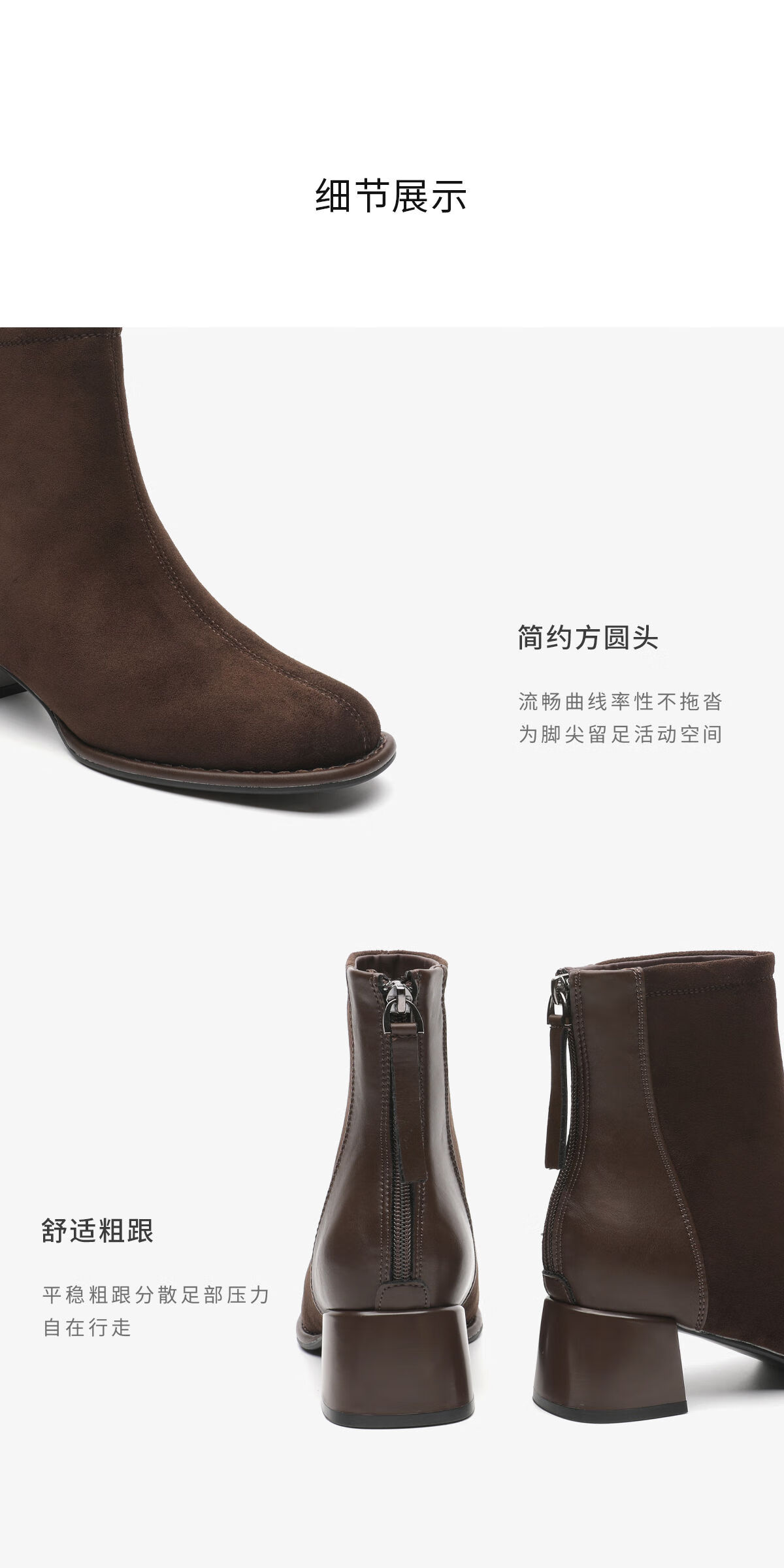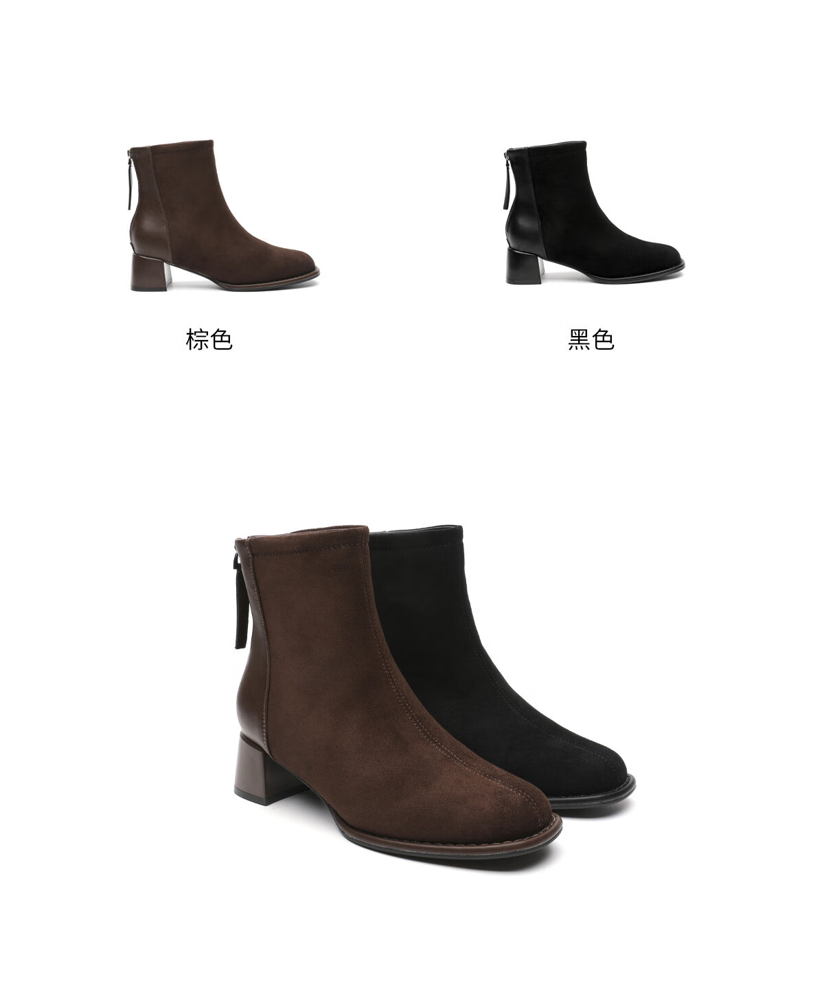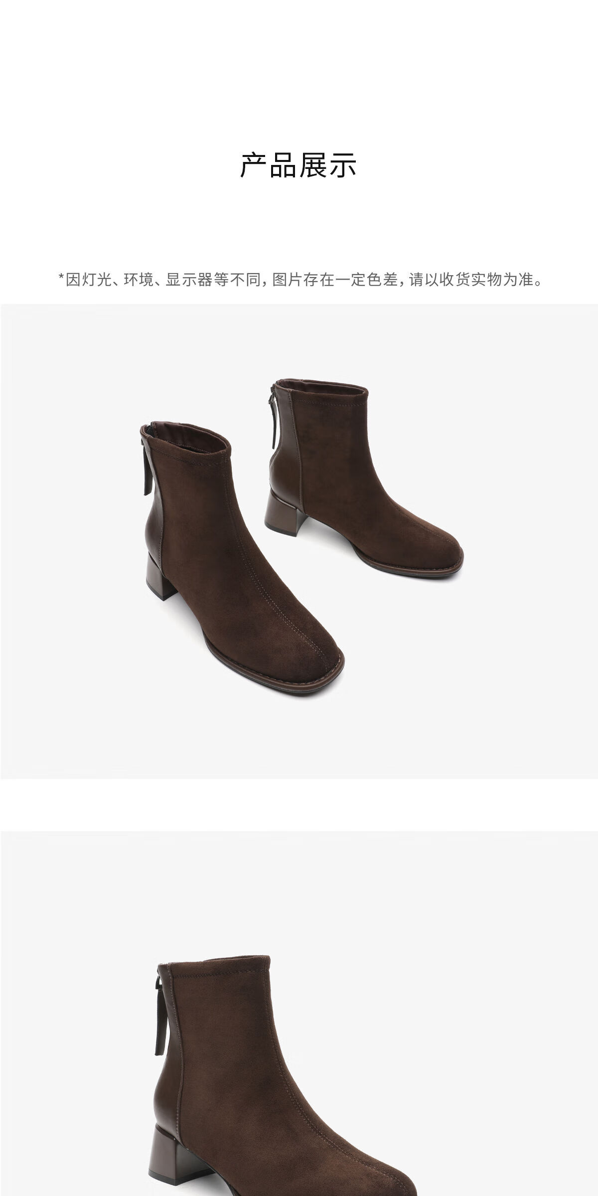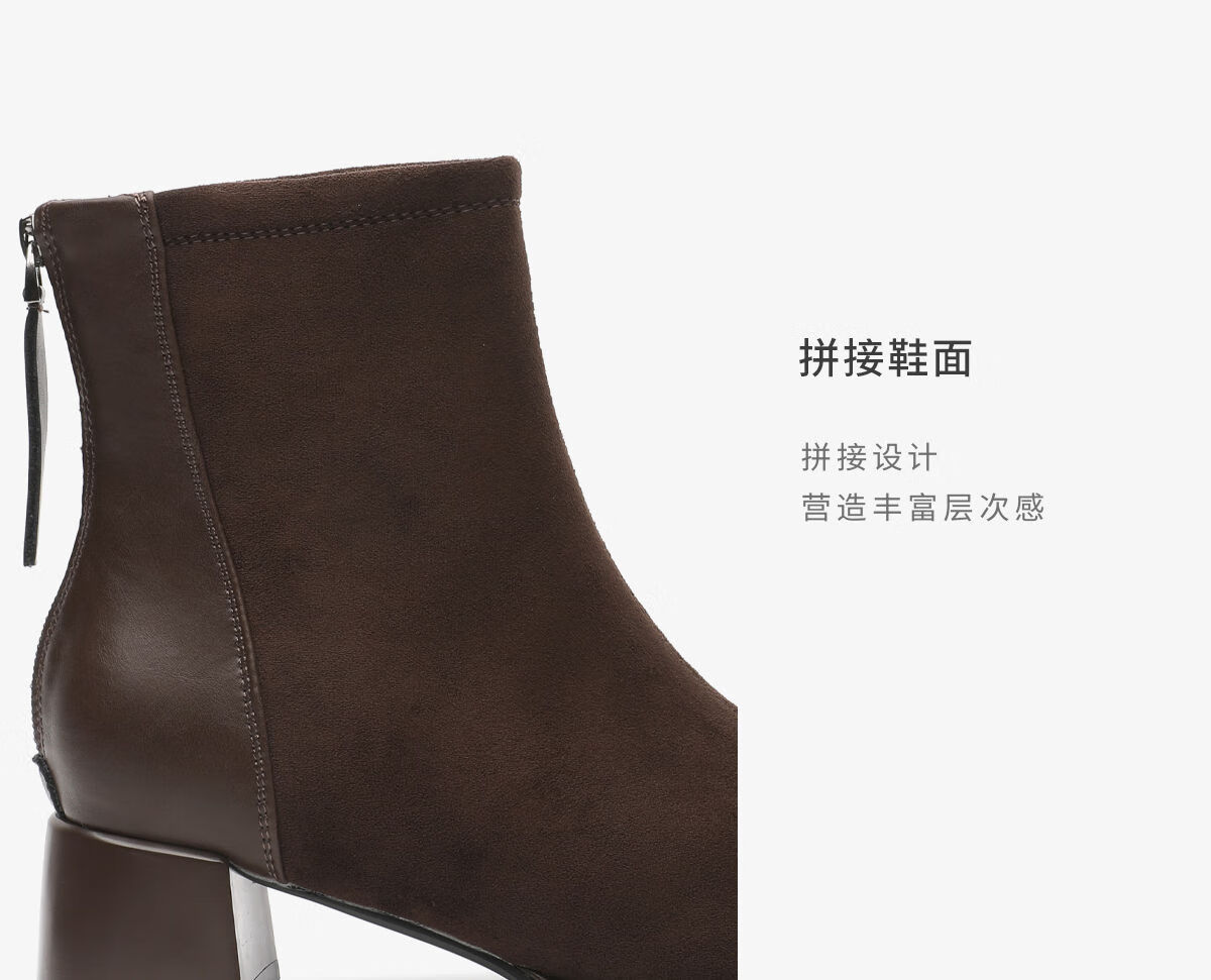 月芽儿绒面短靴女冬季加绒2025新款弹力瘦瘦靴马丁靴子 绒里棕色03T 39