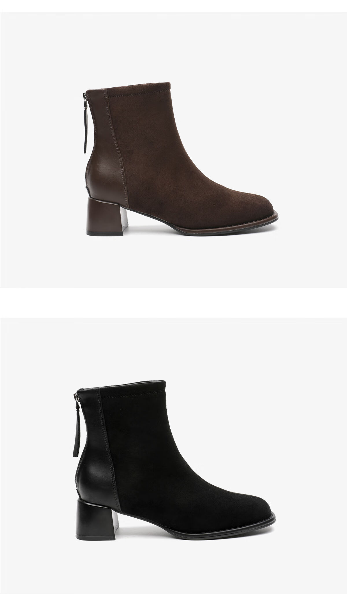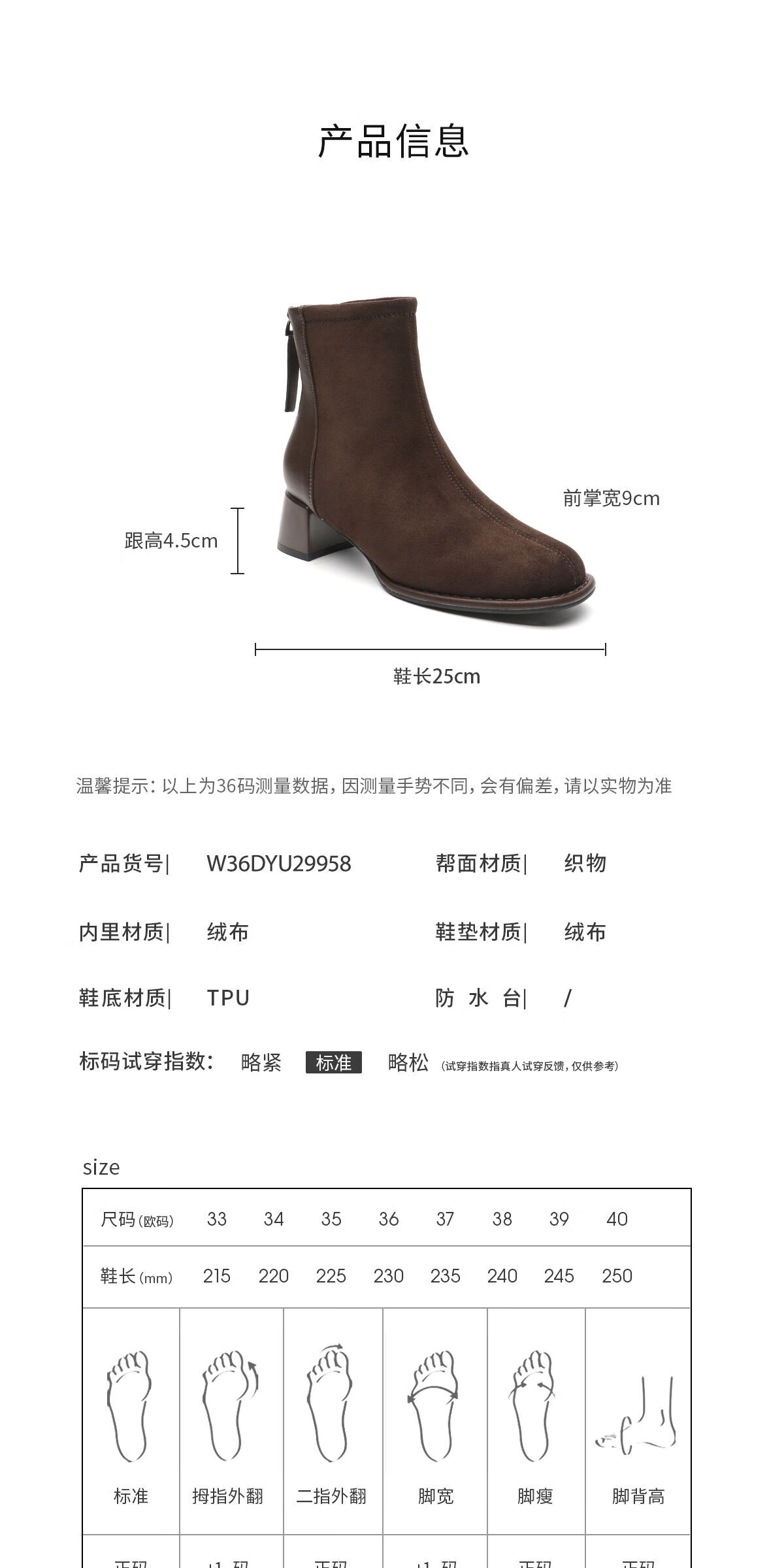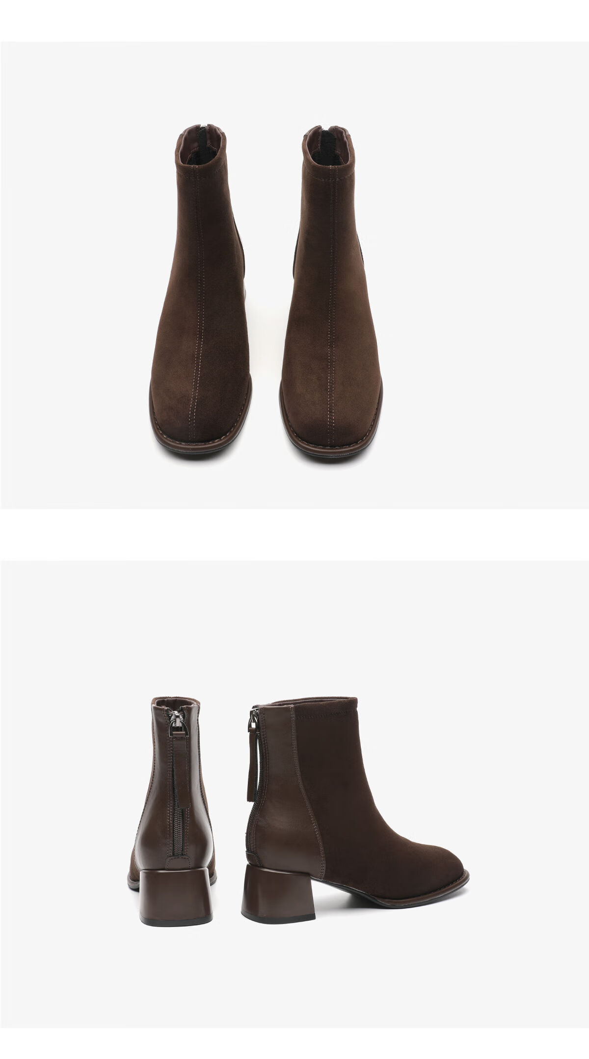 月芽儿绒面短靴女冬季加绒2025新款弹力瘦瘦靴马丁靴子 绒里棕色03T 39