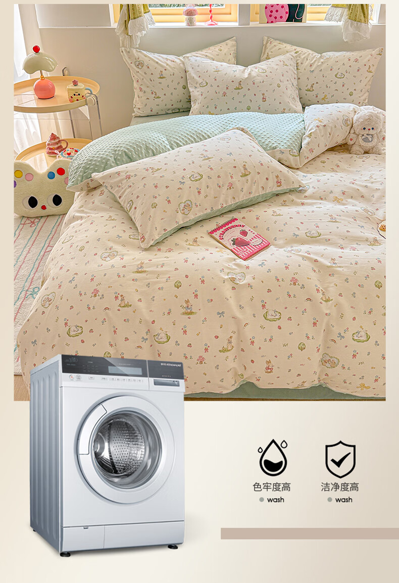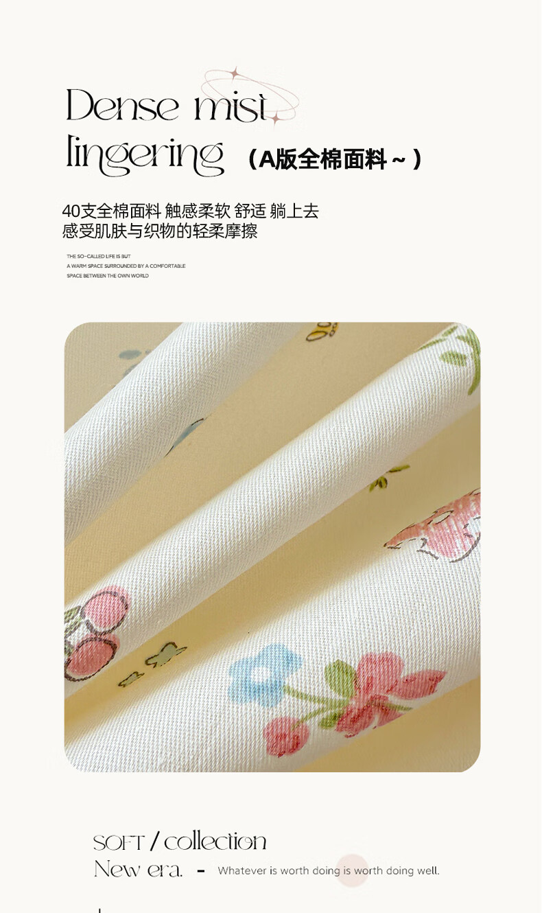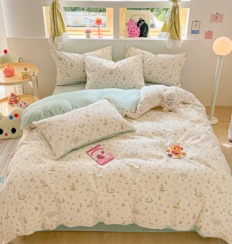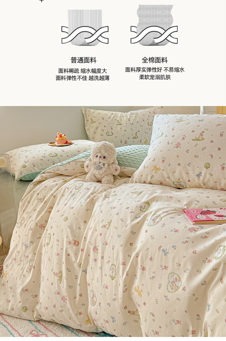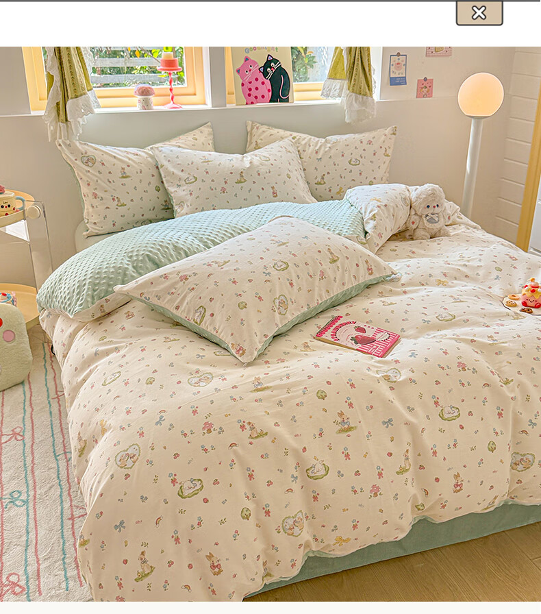 多兰诗(Duolanshi)春秋加厚磨毛四件套 ins四件套花卉田园风格床单被套四件套 蔷薇花 2.0米 床单款 被套200*230 四件套