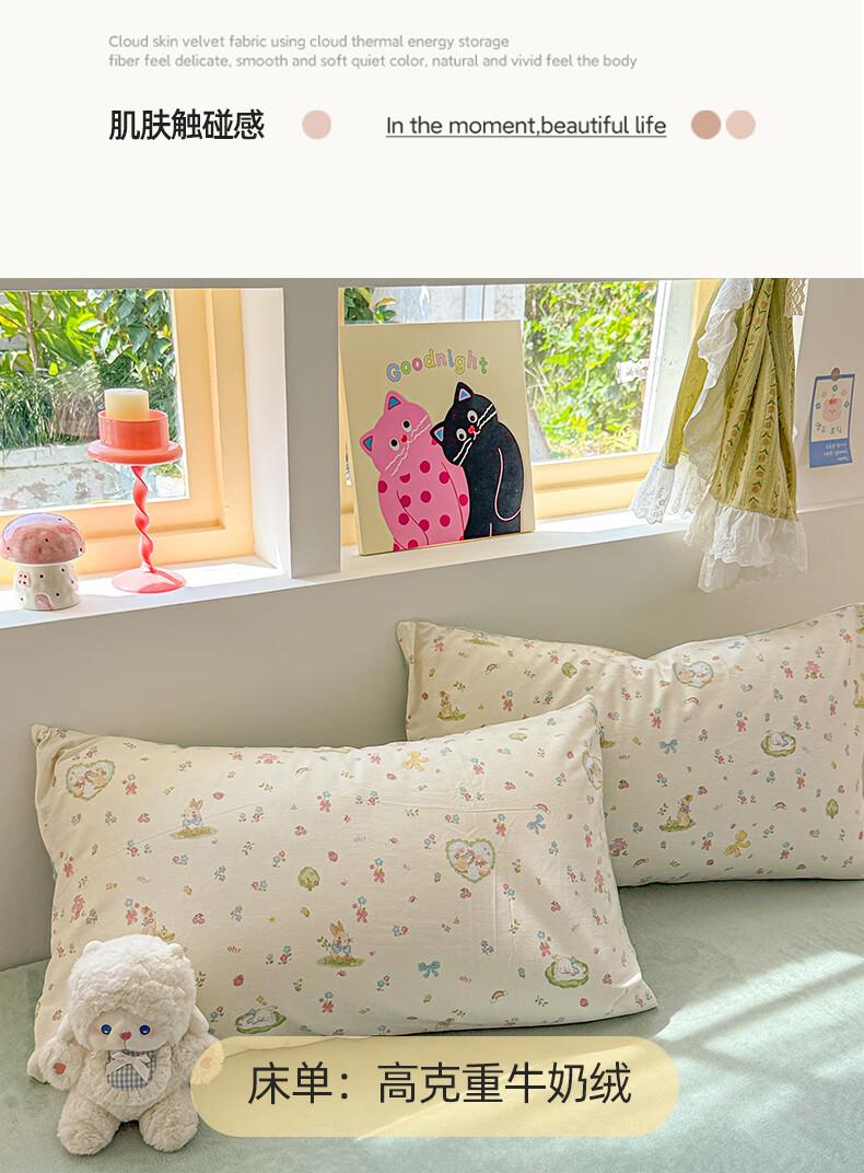 猫人(MiiOW)豆豆绒纯棉四件套双面被套秋冬加厚牛奶绒床单床笠宿舍床上三件套 豹纹-粉 【棉+绒双面设计】 2.0m 床单款 四件套-被套220*240cm