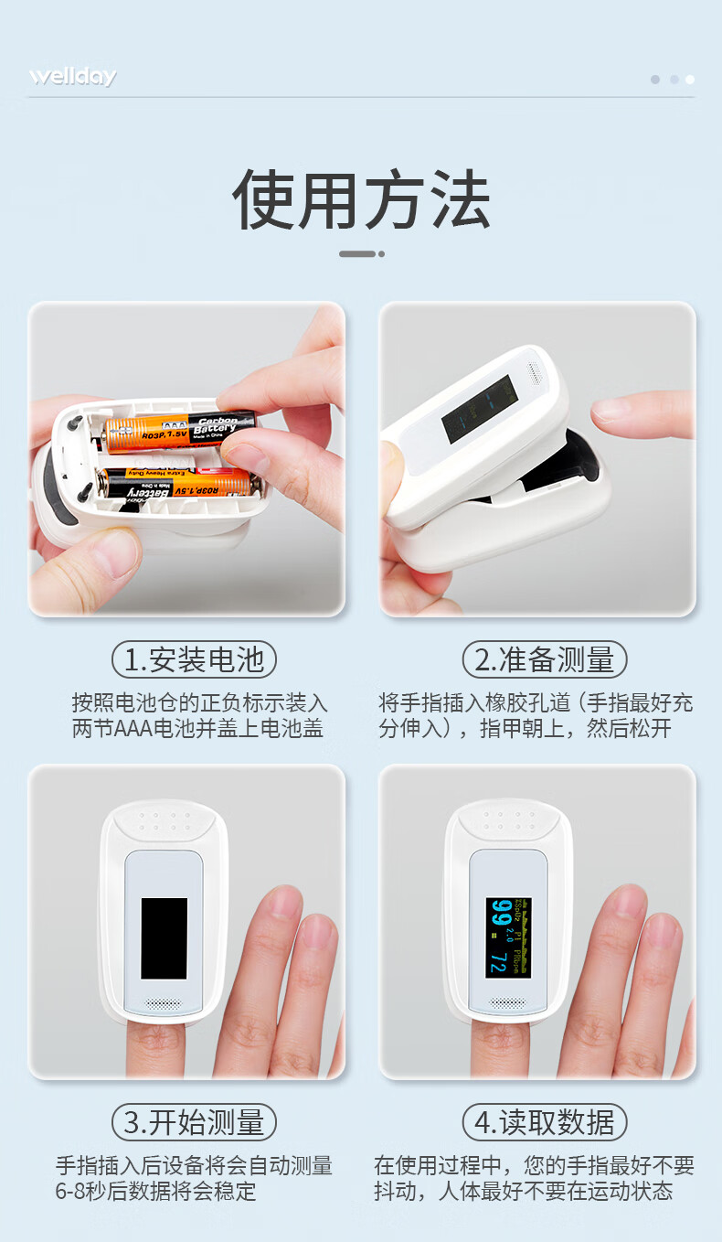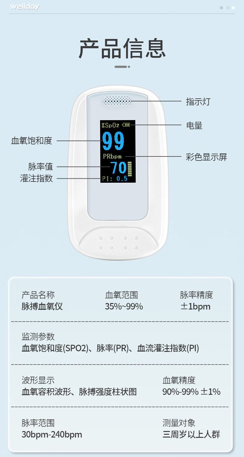 维德(WELLDAY)医用血氧仪指夹式血氧检测器液晶显示家用便携式脉氧监护指示仪器 指夹式血氧仪-A5