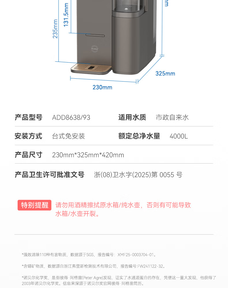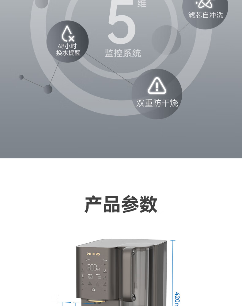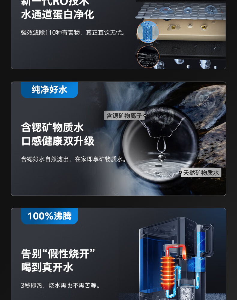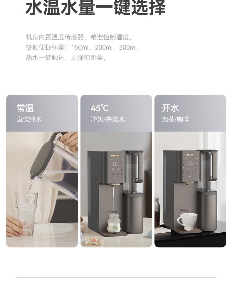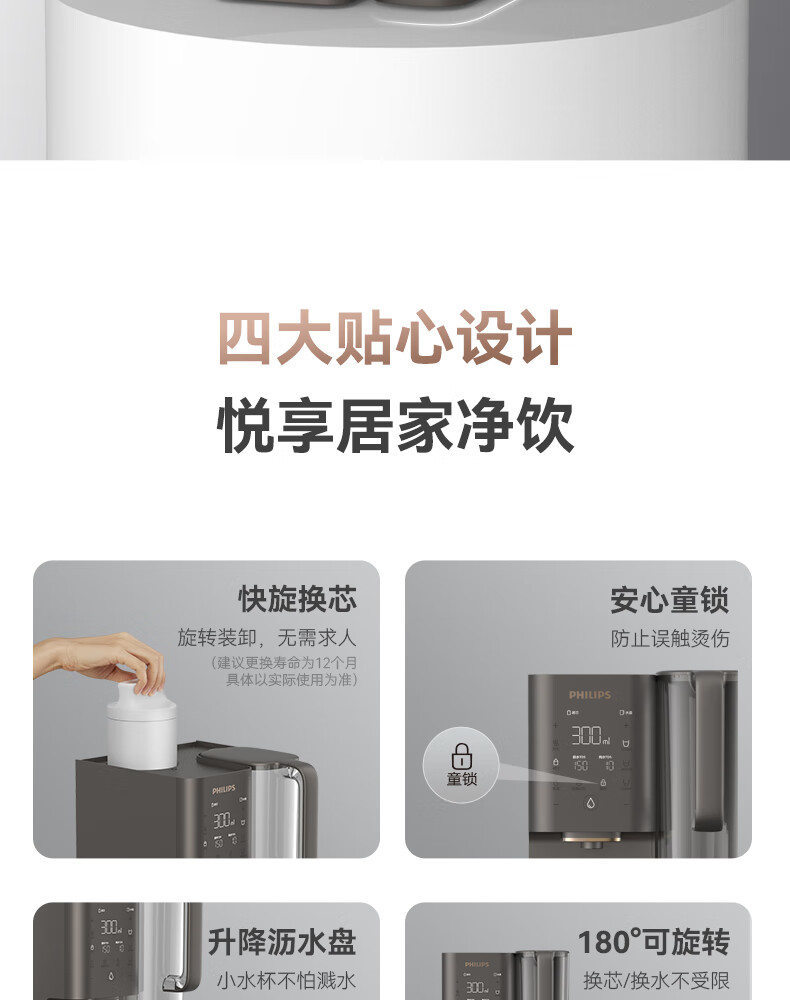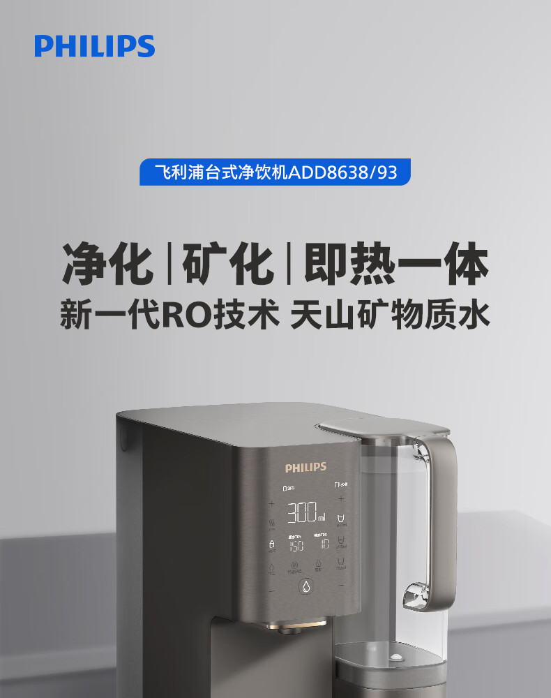 飞利浦(PHILIPS)净水器家用 净水器加热直饮一体机 家用即热式饮水机智能台式免安装净饮机 反渗透净水器ADD8638 ADD8638 富锶矿化水