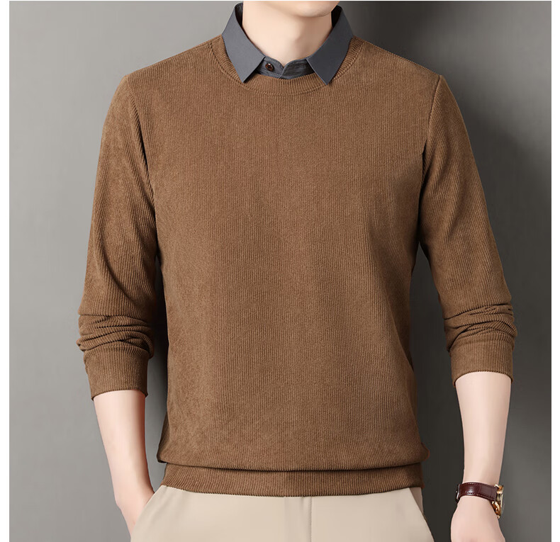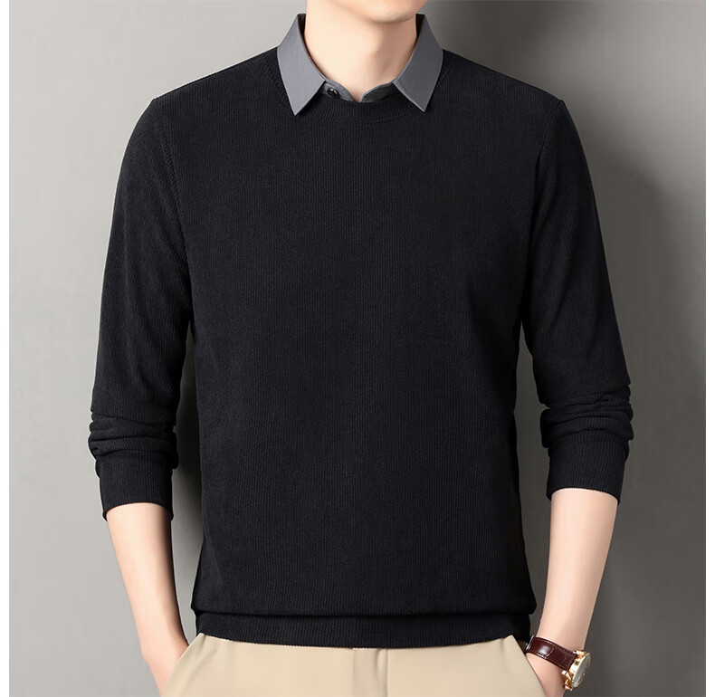 俞兆林(YUZHAOLIN)男士加绒卫衣秋冬季加厚保暖衬衫领打底衫中青年灯芯绒假两件体恤 黑色 M (建议100到120斤穿)