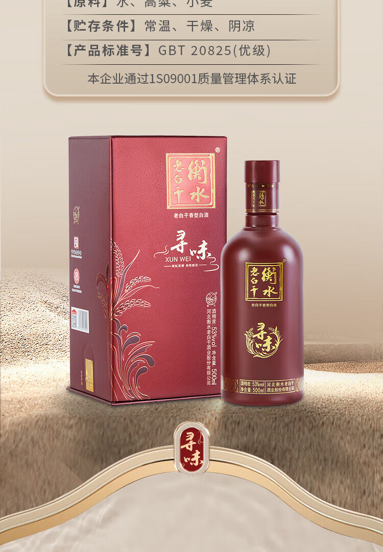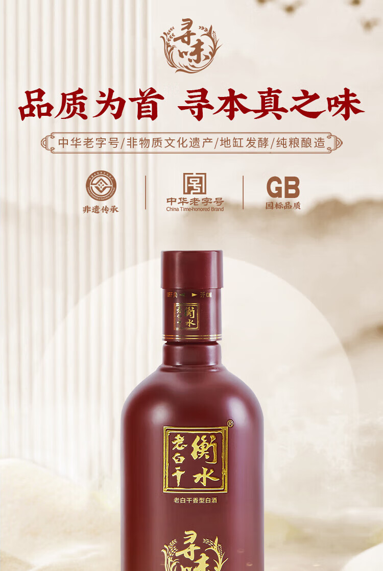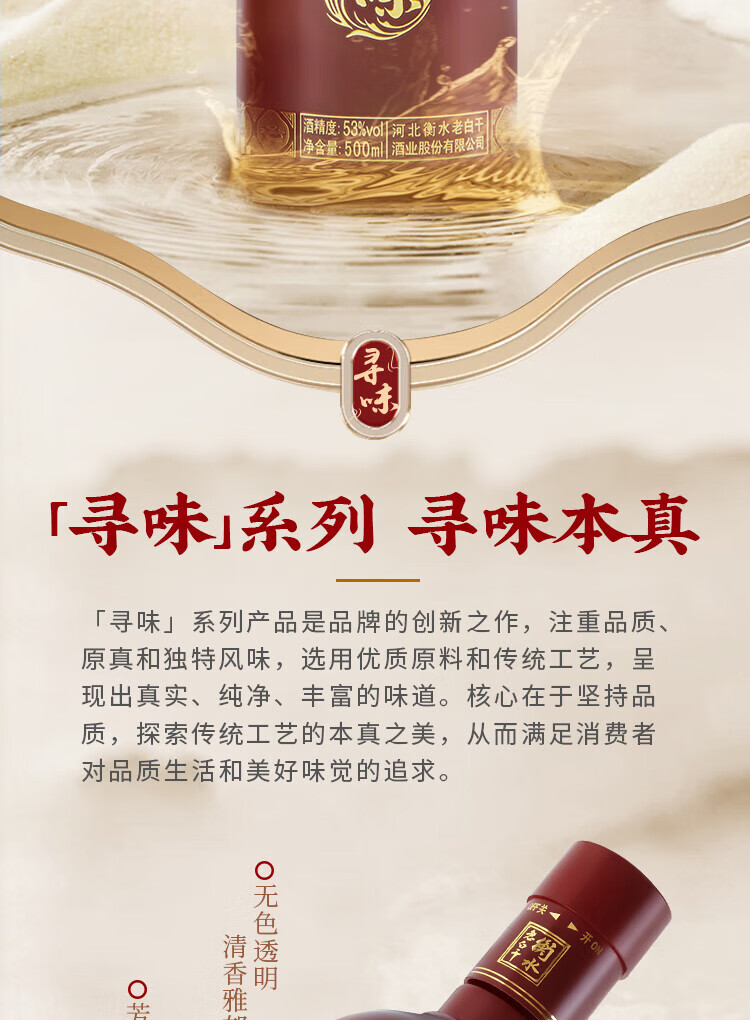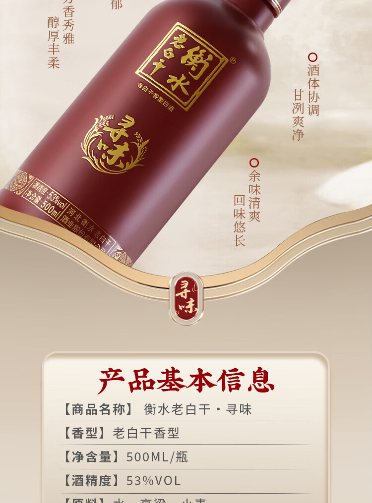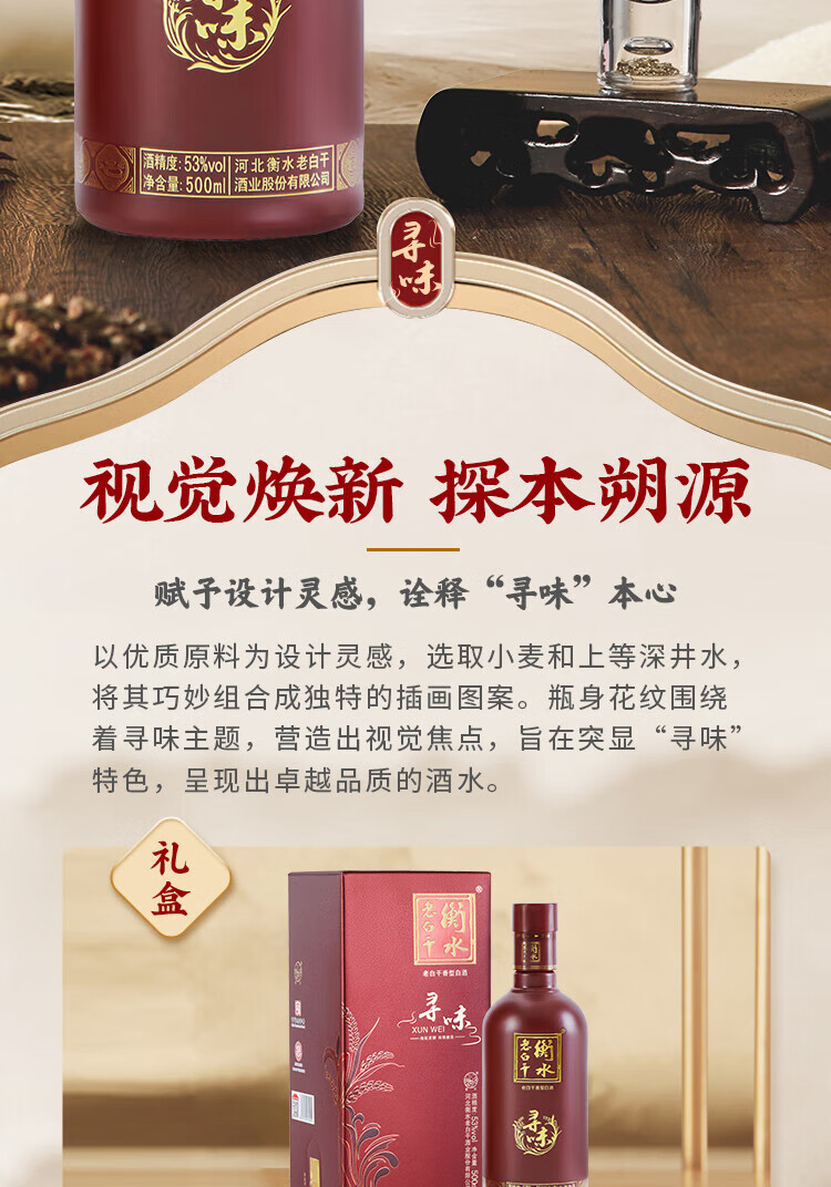 衡水老白干 寻味 53度 500mL 老白干香型白酒 手提礼盒 古法酿造 聚会自饮 53度 500mL 2瓶 双支装