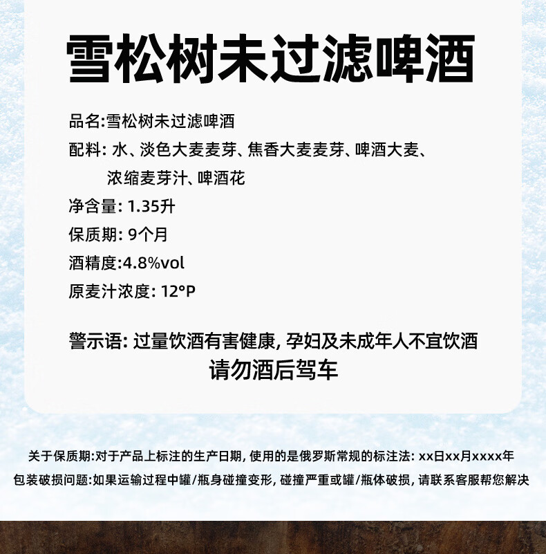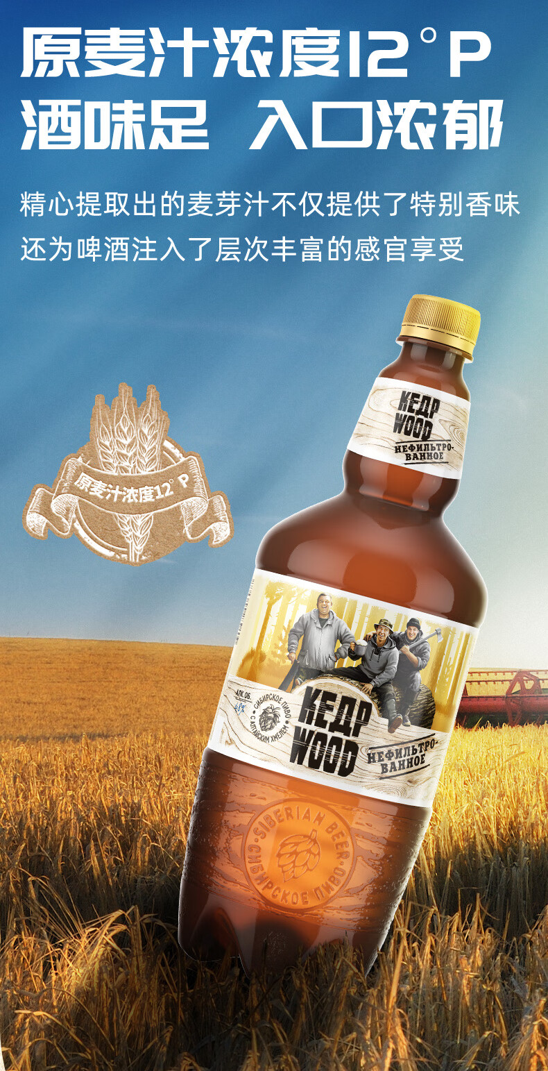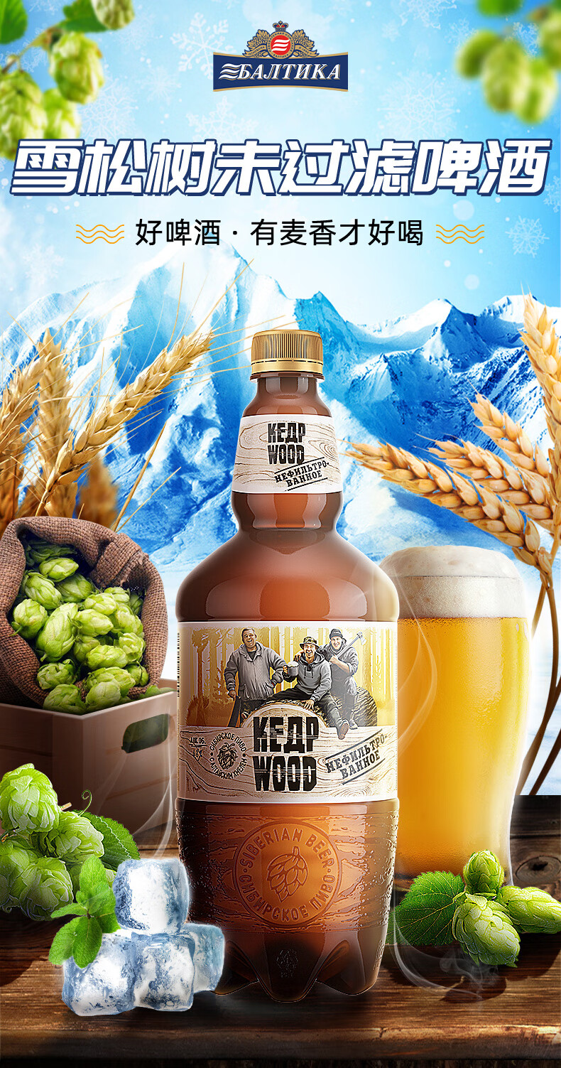 波罗的海俄罗斯进口原浆精酿啤酒整箱雪松树未过滤啤酒1.35L 雪松树未过滤啤酒 1.35L 6桶