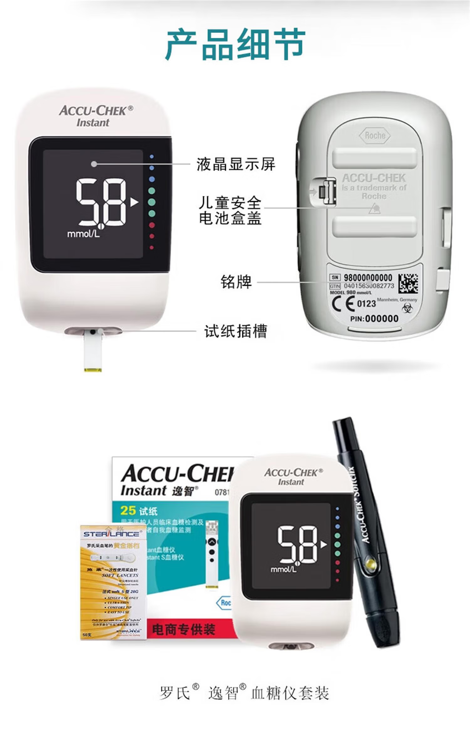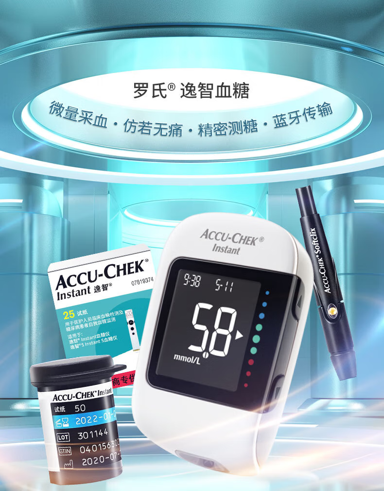 罗氏逸智血糖试纸Instant血糖仪家用自测免调码F型蓝牙精准测试仪试纸 【逸智】50试纸+针头棉片(26年11月)