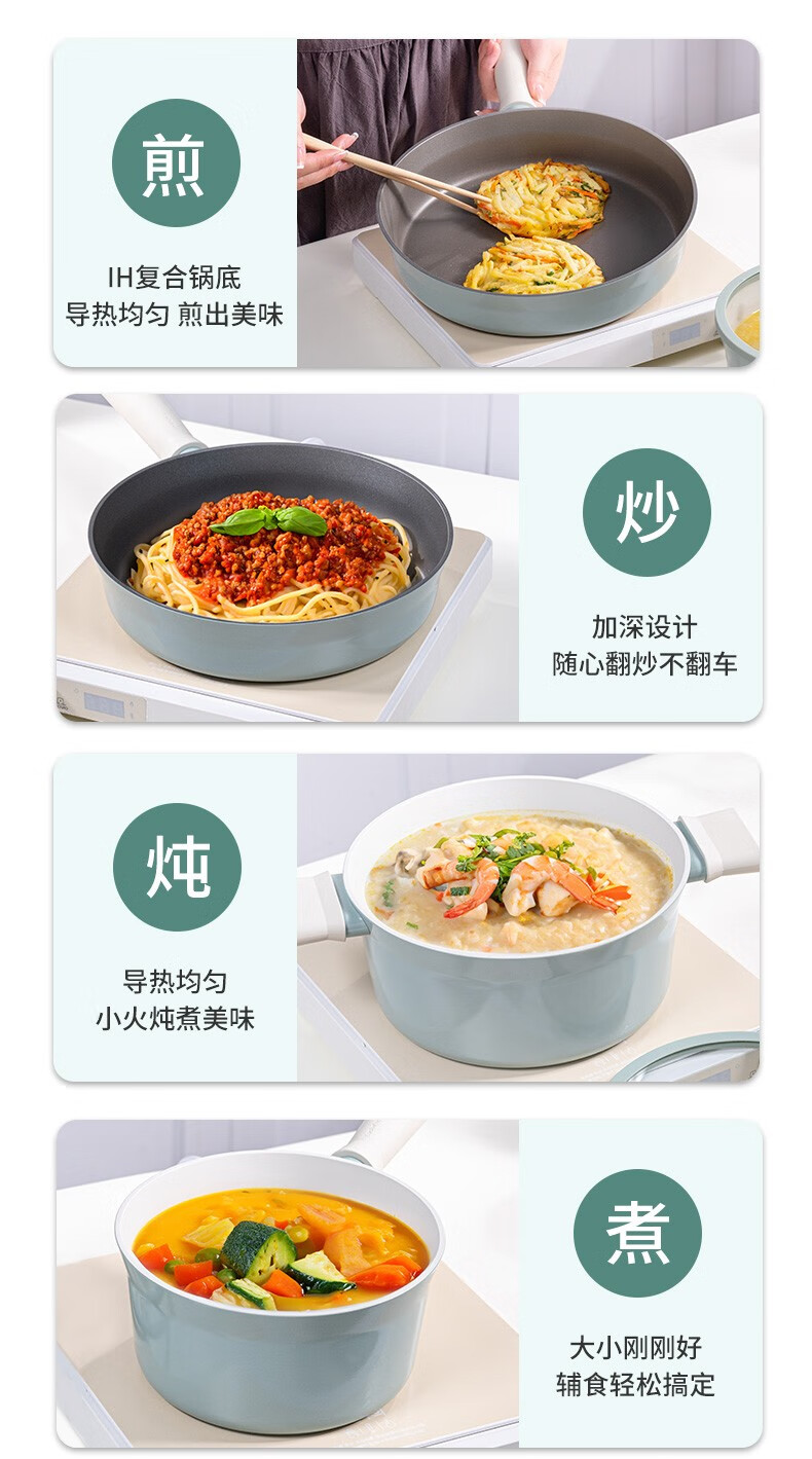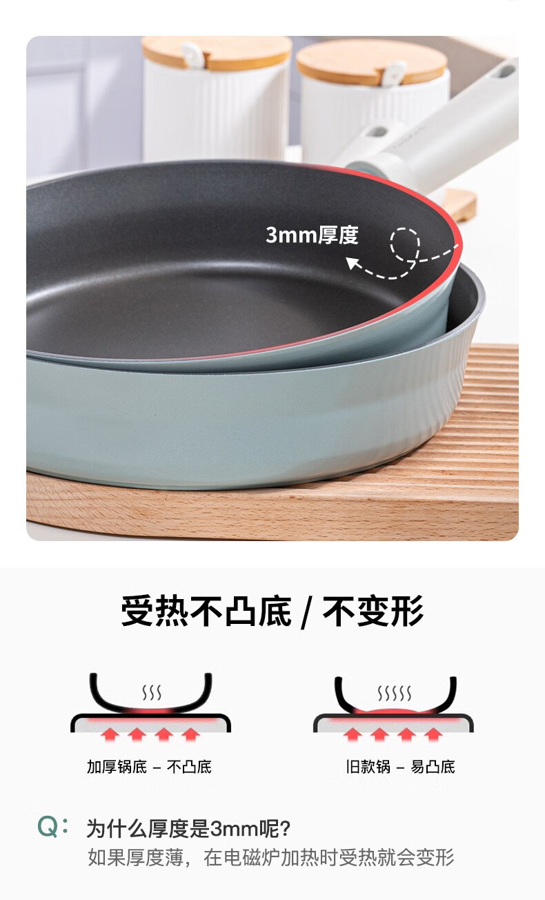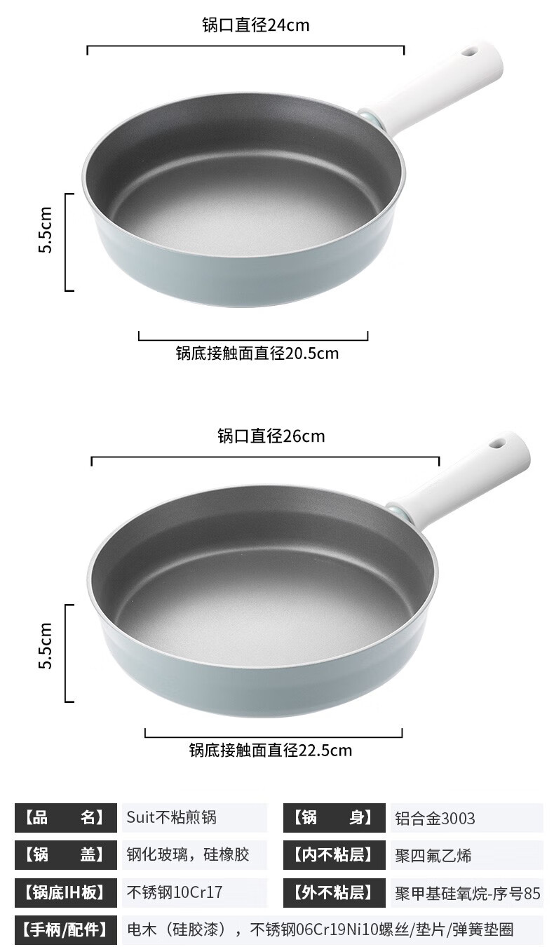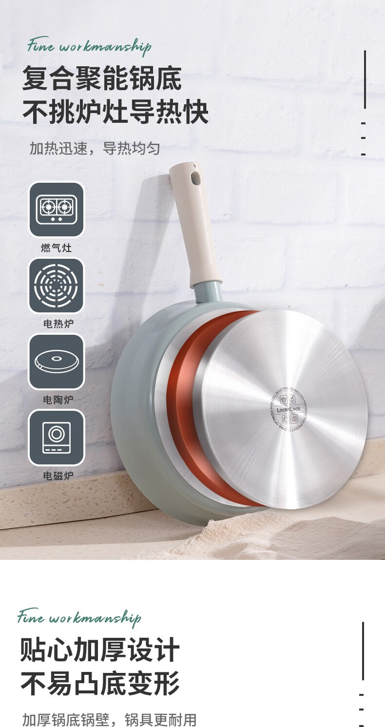 乐扣乐扣平底锅不粘家用多功能炒菜锅小煎锅煎蛋饼牛排电磁炉燃煤气通适用 24CM煎锅【带硅胶铲】