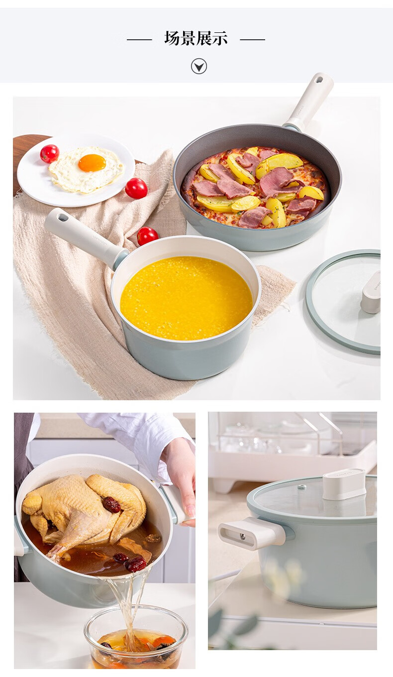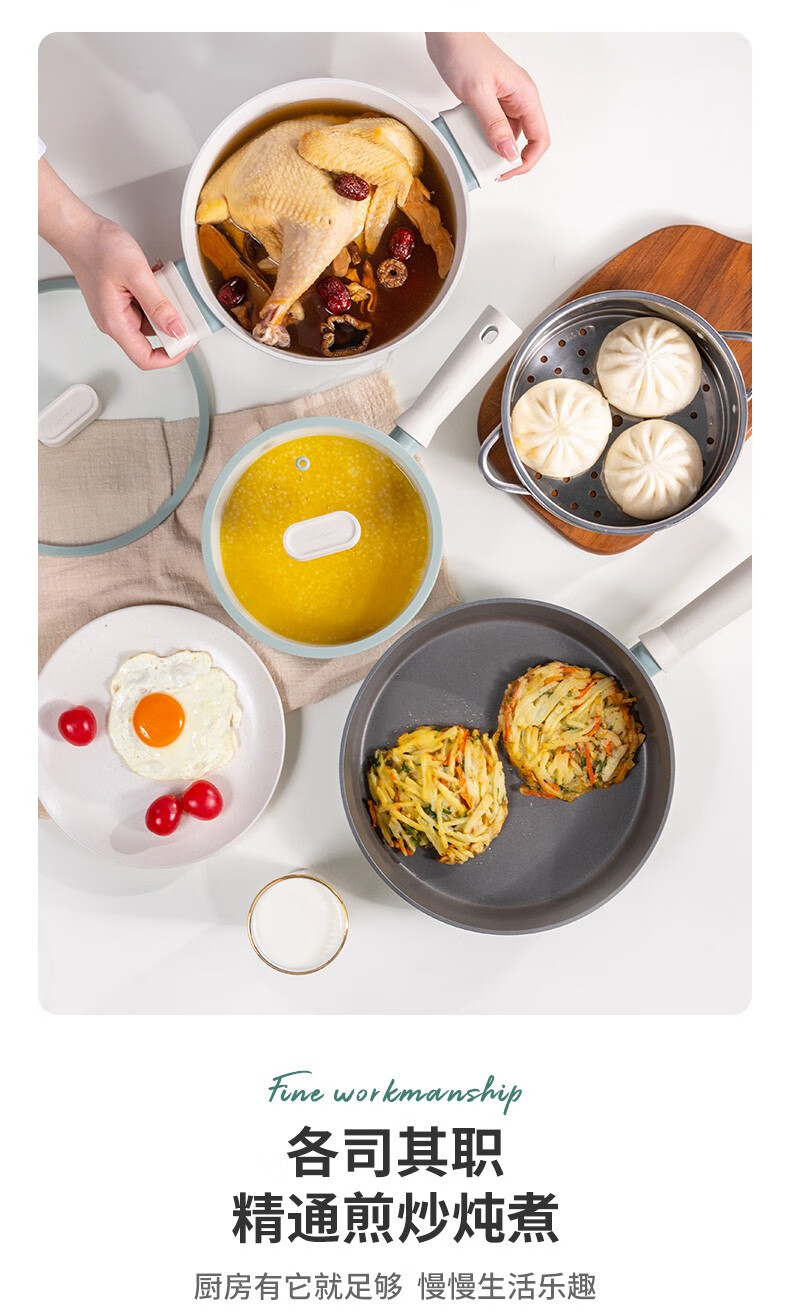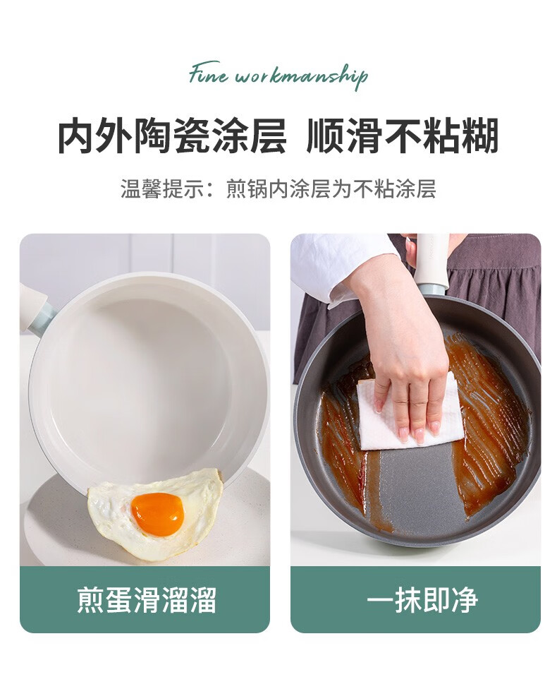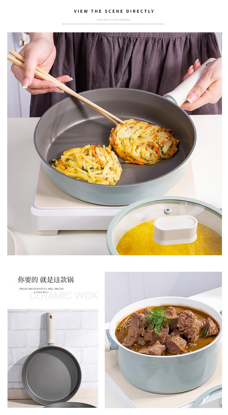 乐扣乐扣平底锅不粘家用多功能炒菜锅小煎锅煎蛋饼牛排电磁炉燃煤气通适用 24CM煎锅【带硅胶铲】