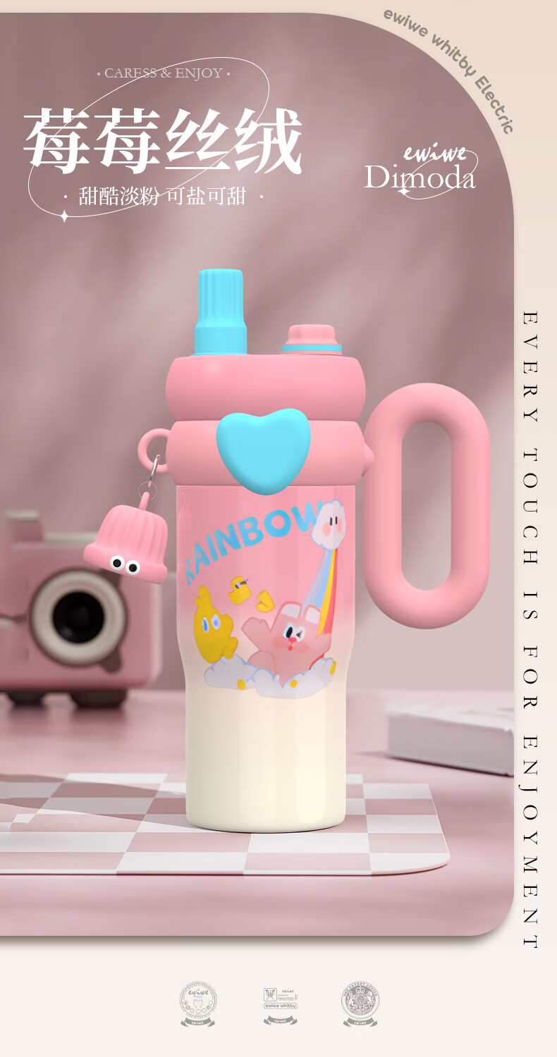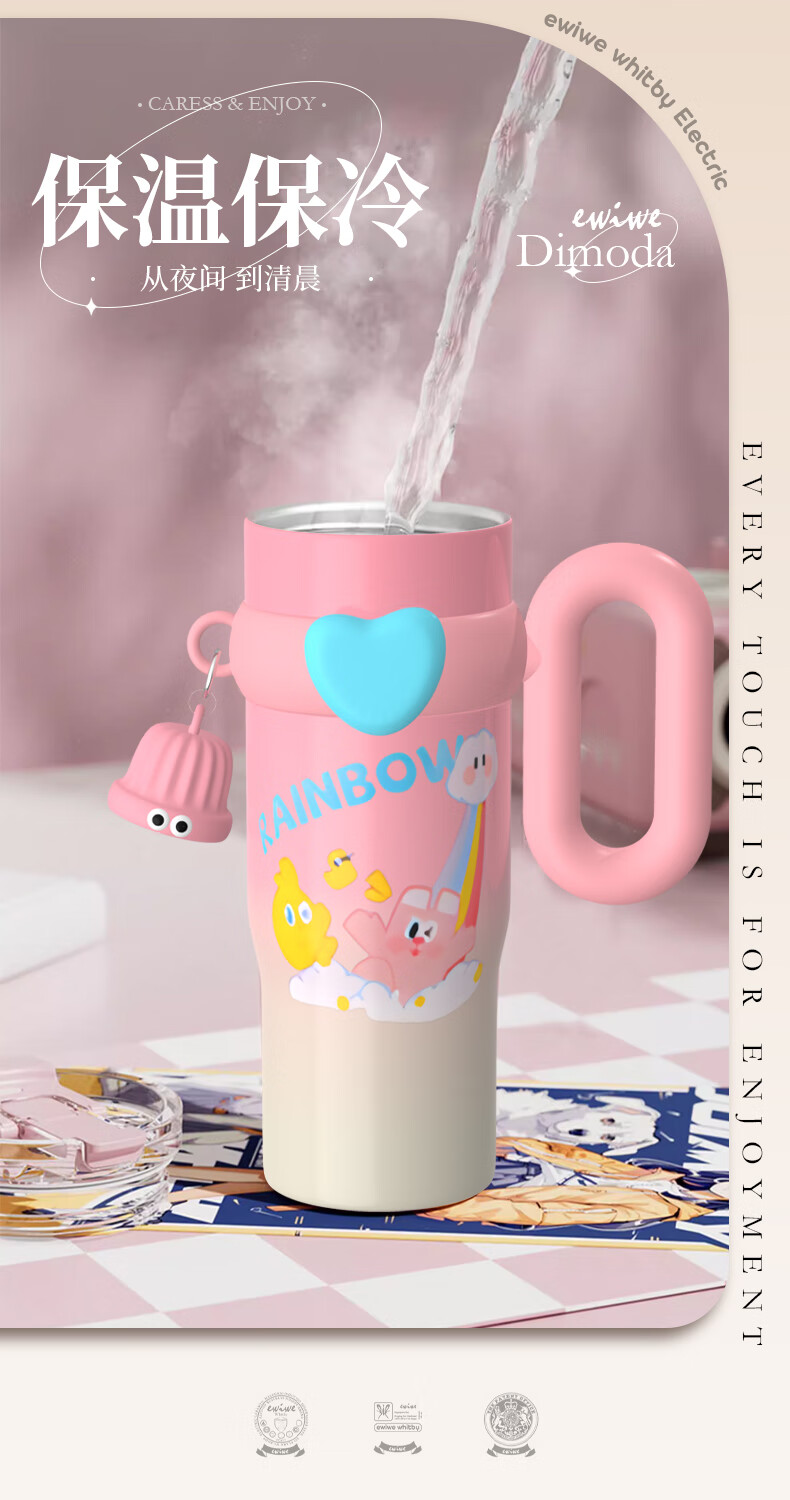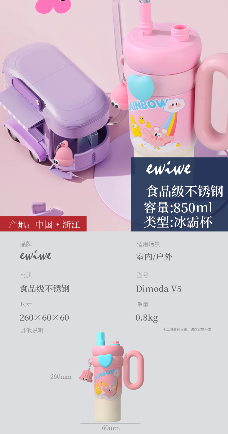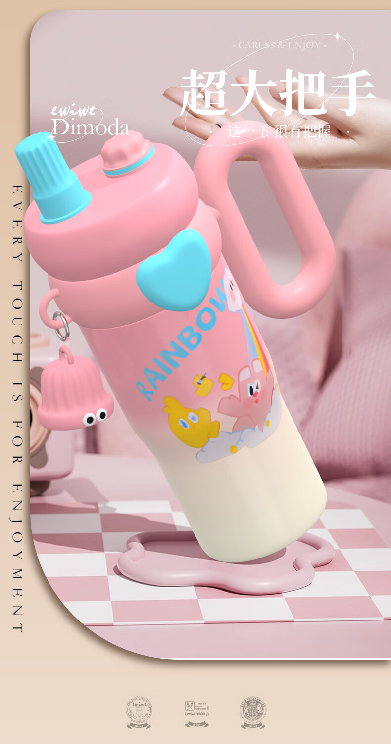 EWIWE甜甜圈巨无霸保温杯大容量水杯2025新款大号吸管冰霸杯男女杯子 粉色/甜甜圈手柄/约 850ml