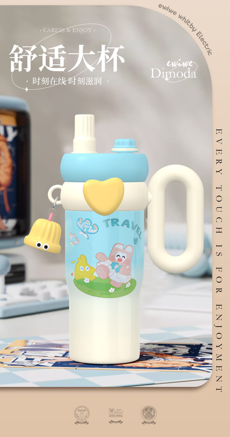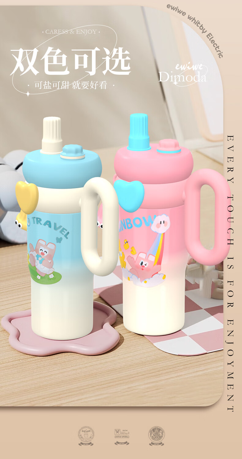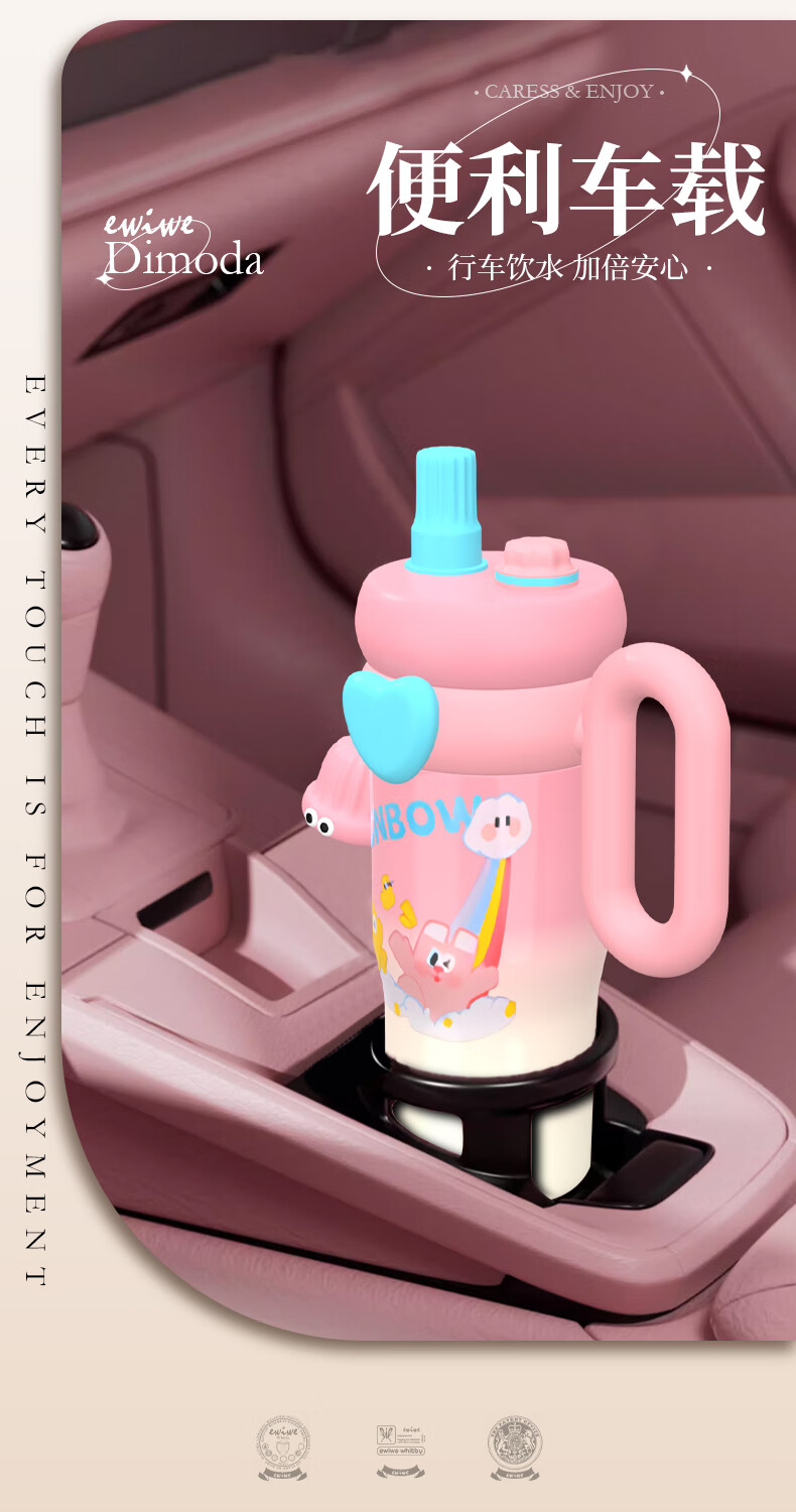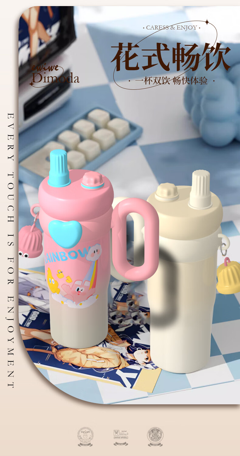 EWIWE甜甜圈巨无霸保温杯大容量水杯2025新款大号吸管冰霸杯男女杯子 粉色/甜甜圈手柄/约 850ml
